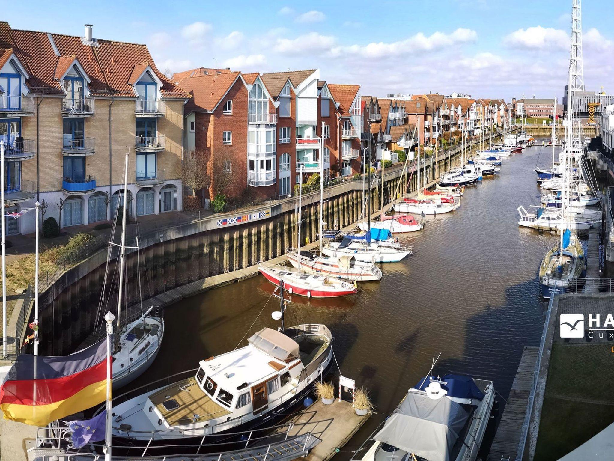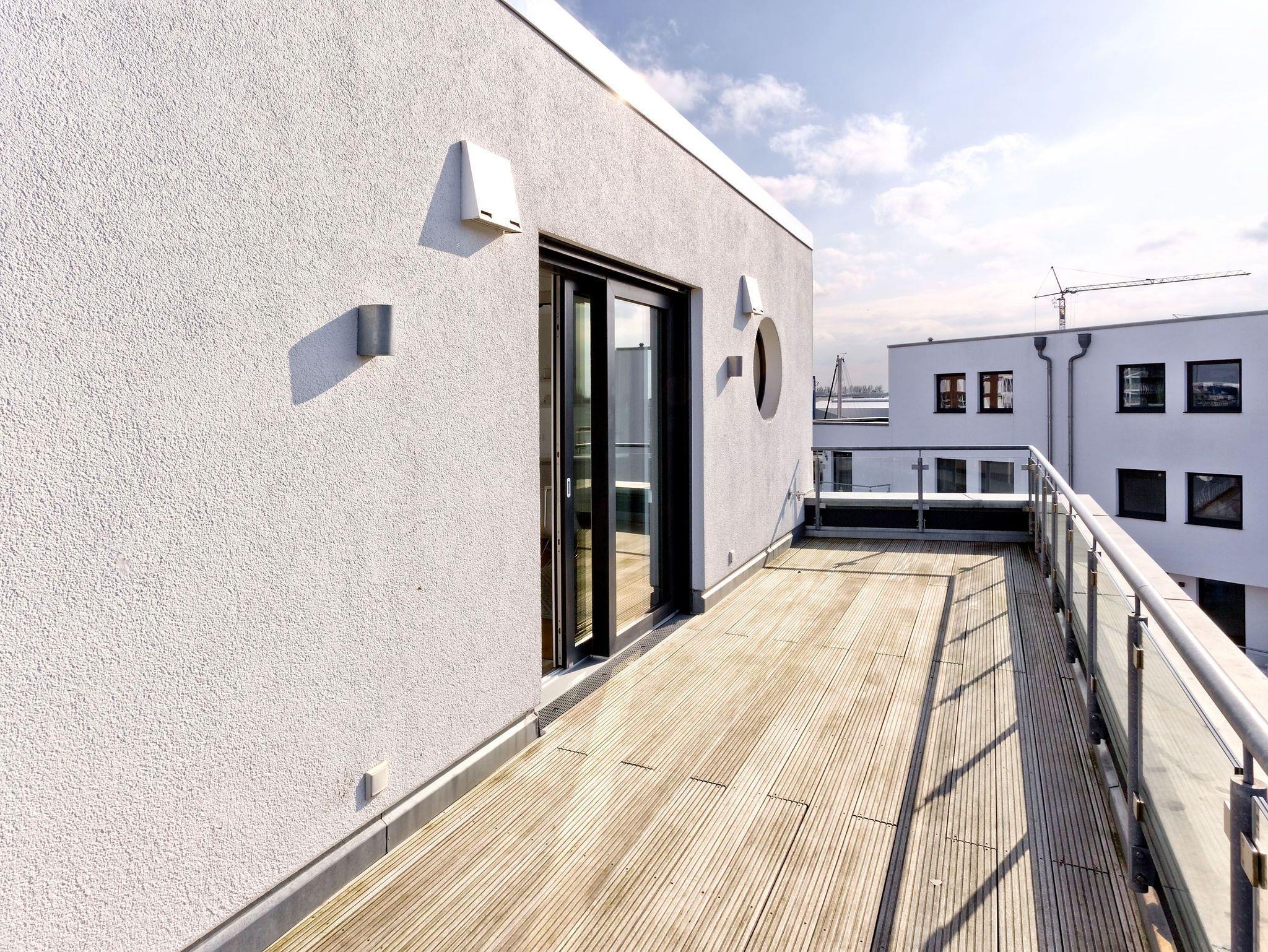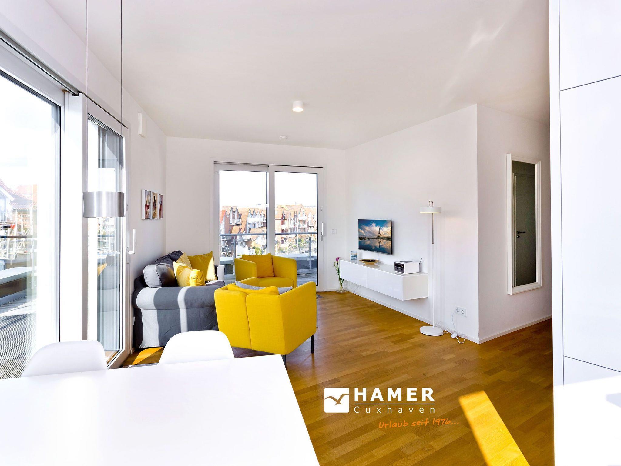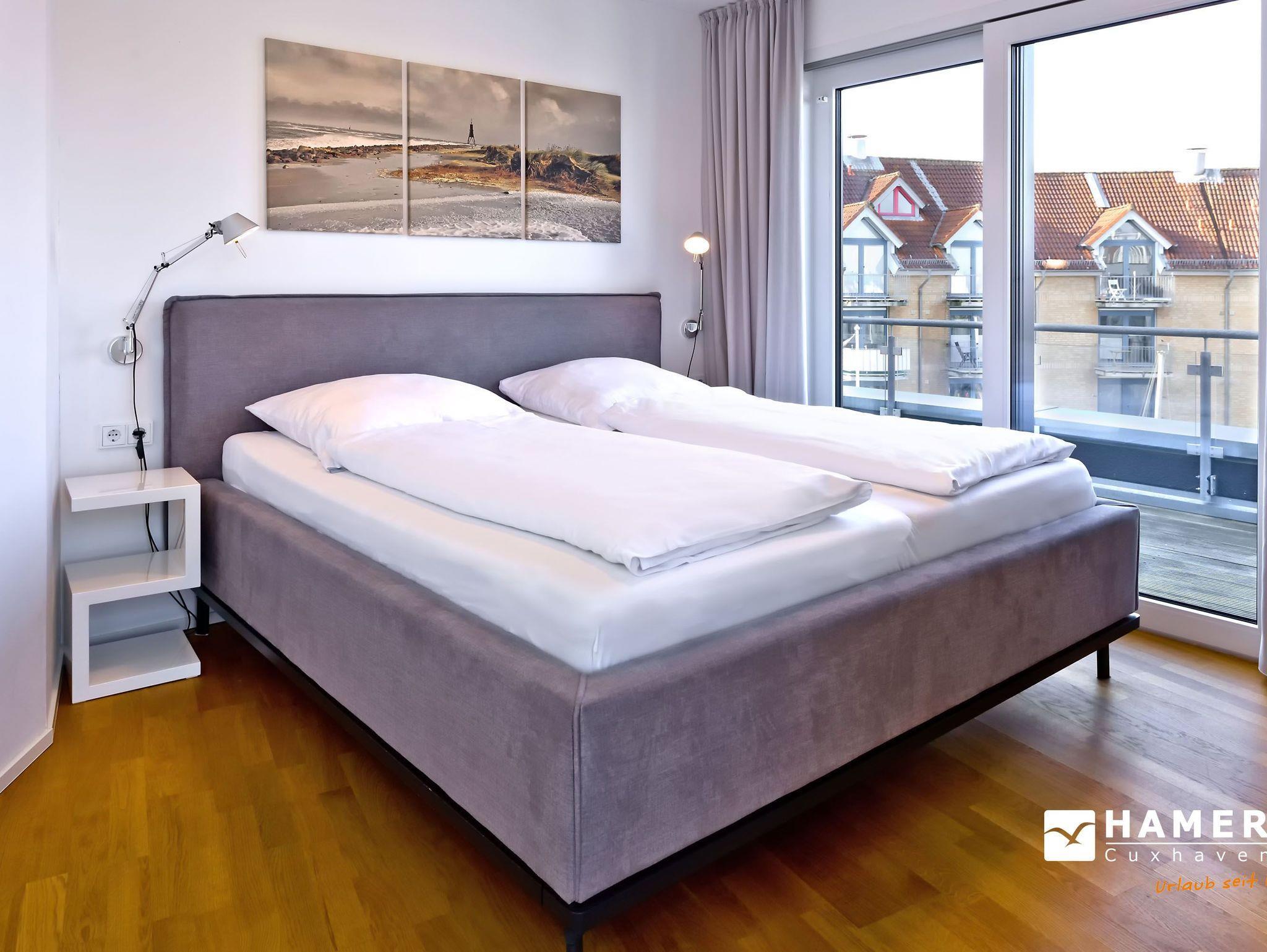 Modernes, barrierefreies Penthouse in Cuxhaven mit umlaufendem Balkon und kostenlosem WLAN für Workation.