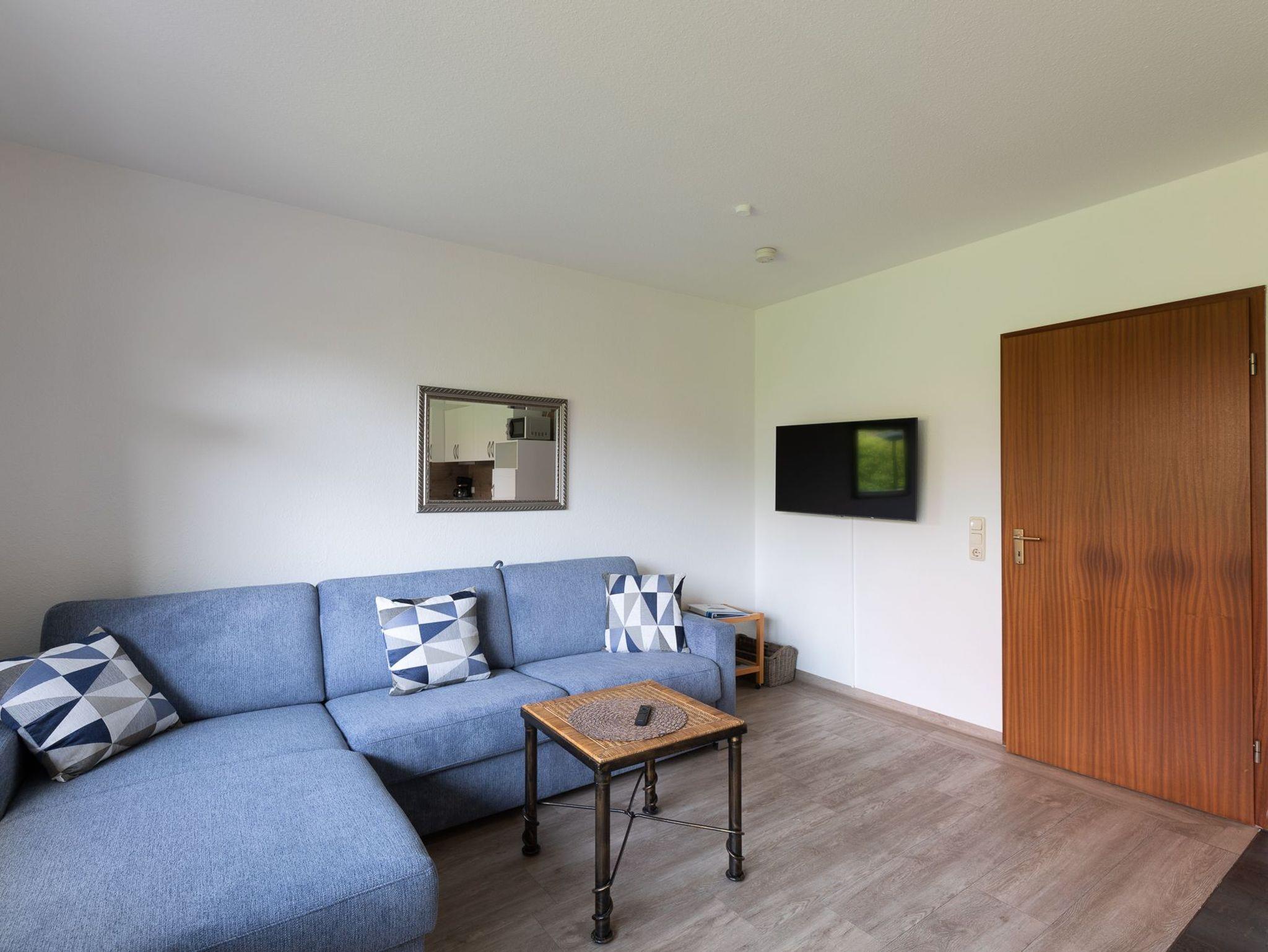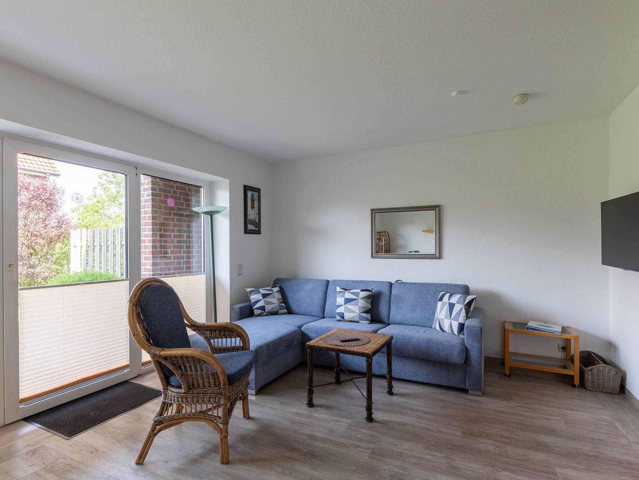 Die große 2-Raum-Wohnung im Haus Maike, befindet sich im Erdgeschoss. Mit ca.58 m² Wohnfläche, ist die Wohnung komplett für bis zu 4 Personen ausgestattet, im großzügigen Wohnzimmer befindet sich Einbauküche (Geschirrspüler, Ceranfeld, Backofen, Mikrowelle, Kühlschrank mit Gefrierfach, Toaster, Wasserkocher und Kaffeemaschine), ein Essplatz für 4 Personen, ein gemütliches Sofa (kann als Schlafsofa für 2 Personen genutzt werden), Flatscreen TV,[nbsp] und Zugang zur herrlichen Süd-West Terrasse, ein Schlafzimmer mit einem Doppelbett und Kleiderschrank, ein Bad mit WC und Dusche