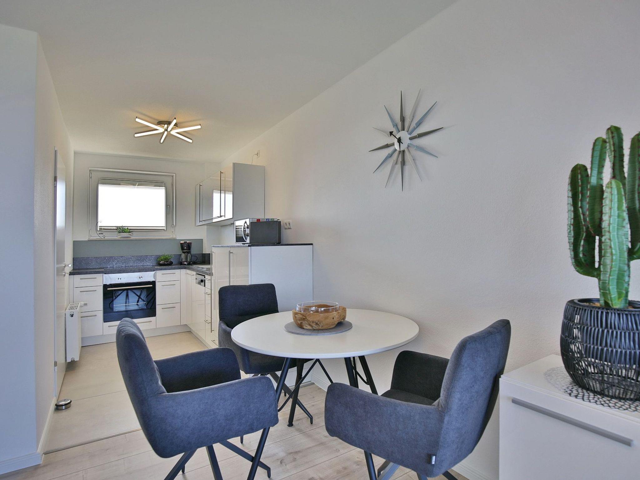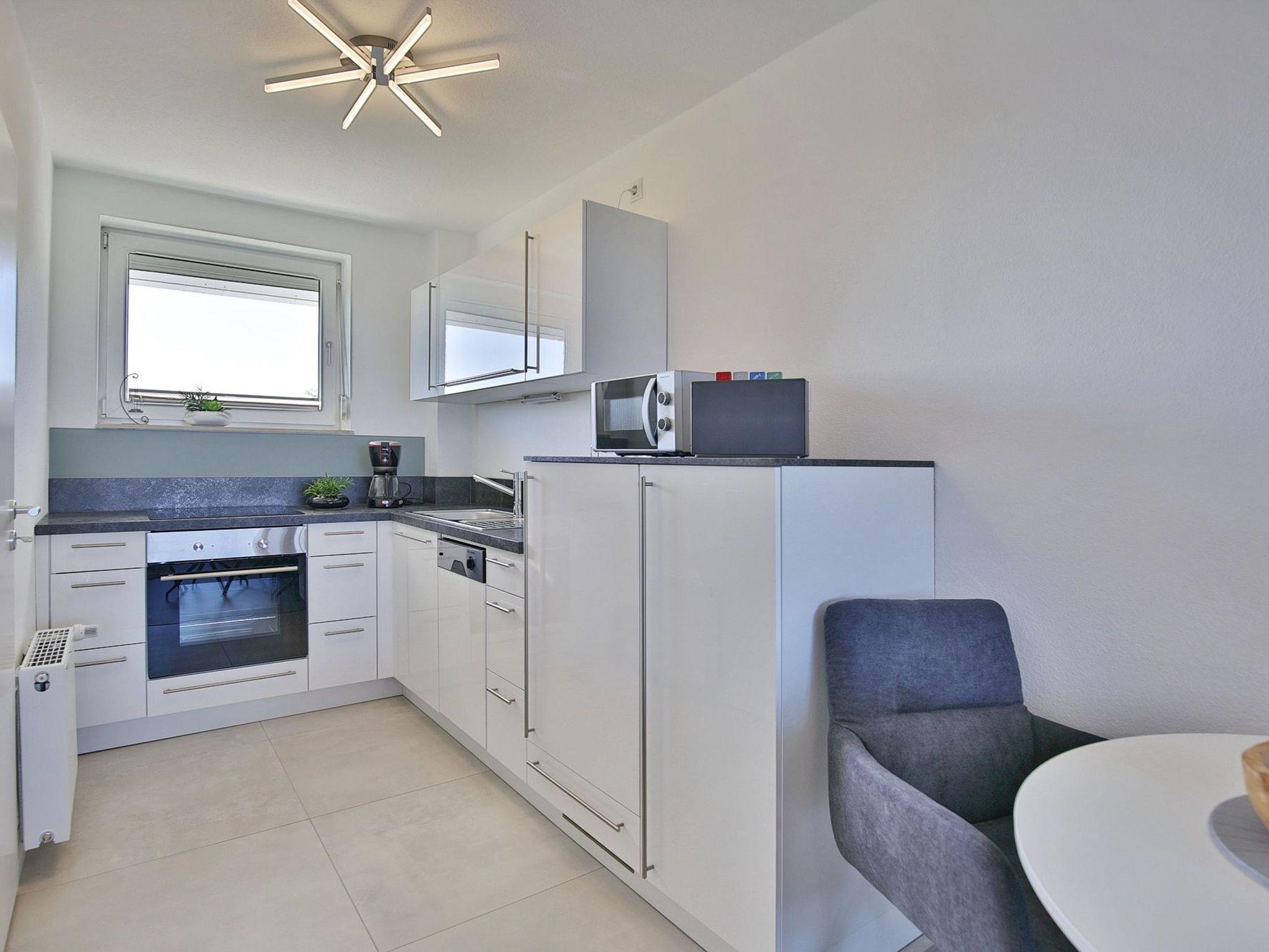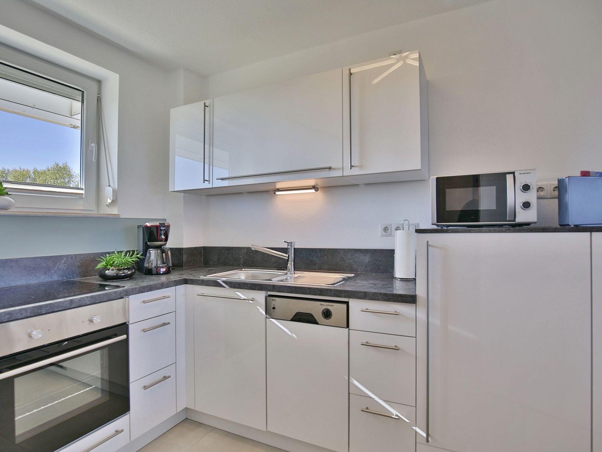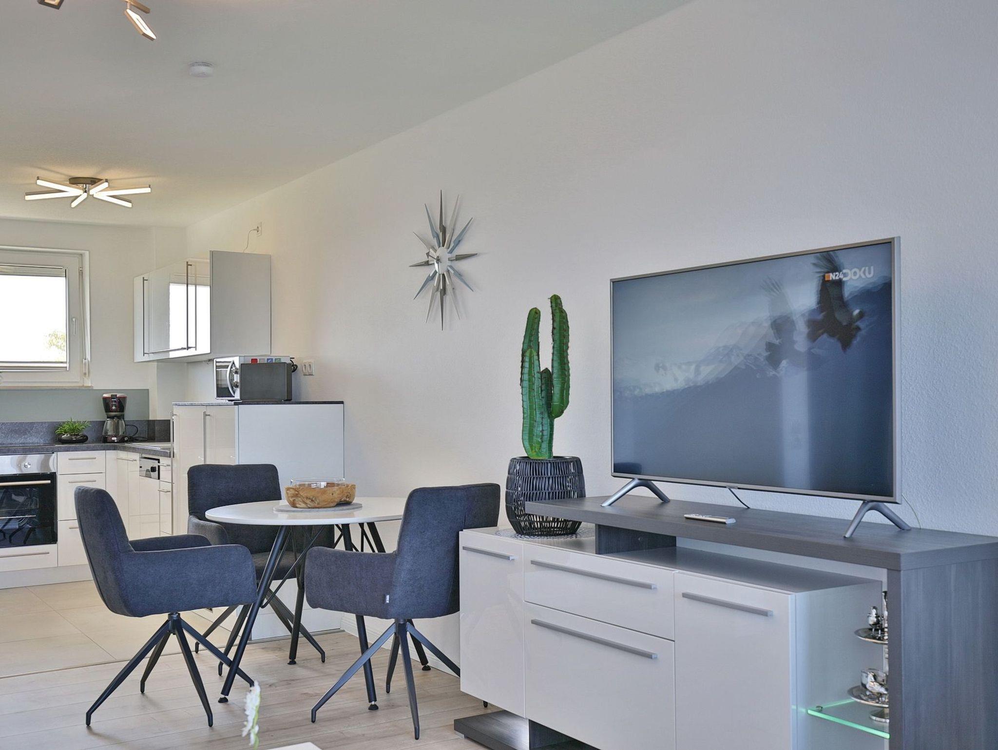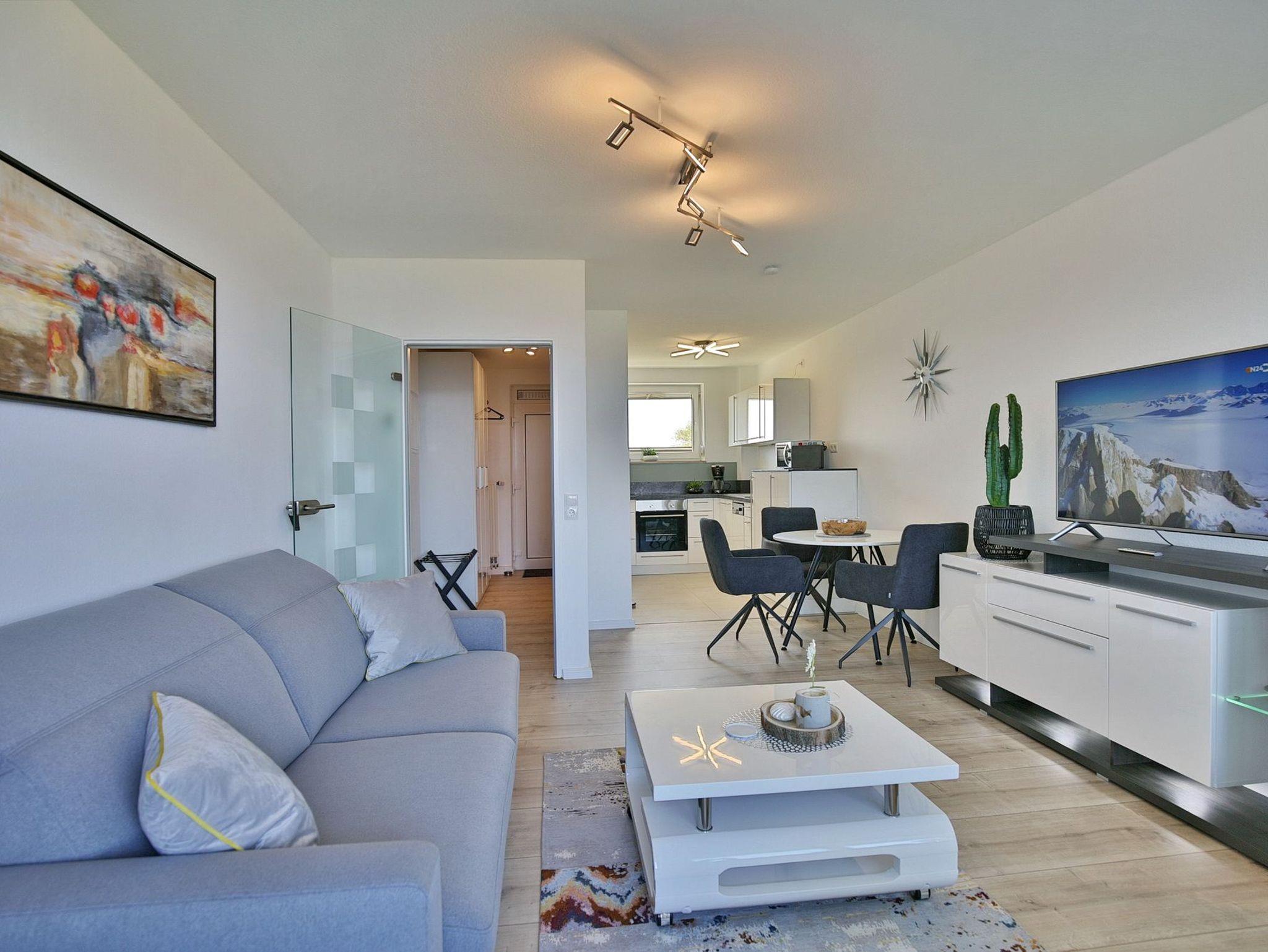 Genießen Sie die schönsten Tage des Jahres in unserer 59 m² Ferienwohnung. Optimal für 2 bis 3 Personen. Nach einem erlebnisreichen Tag können Sie den Abend auf dem bequemen Sofa ausklingen lassen. Der Flachbildfernseher sorgt dafür, dass Sie auch im Urlaub nicht auf Ihre Lieblingsserie verzichten müssen. Die moderne und offen gehaltene Küche ist mit einem Backofen und einem Geschirrspüler sowie einem Kühlschrank mit Gefrierfach ausgestattet.