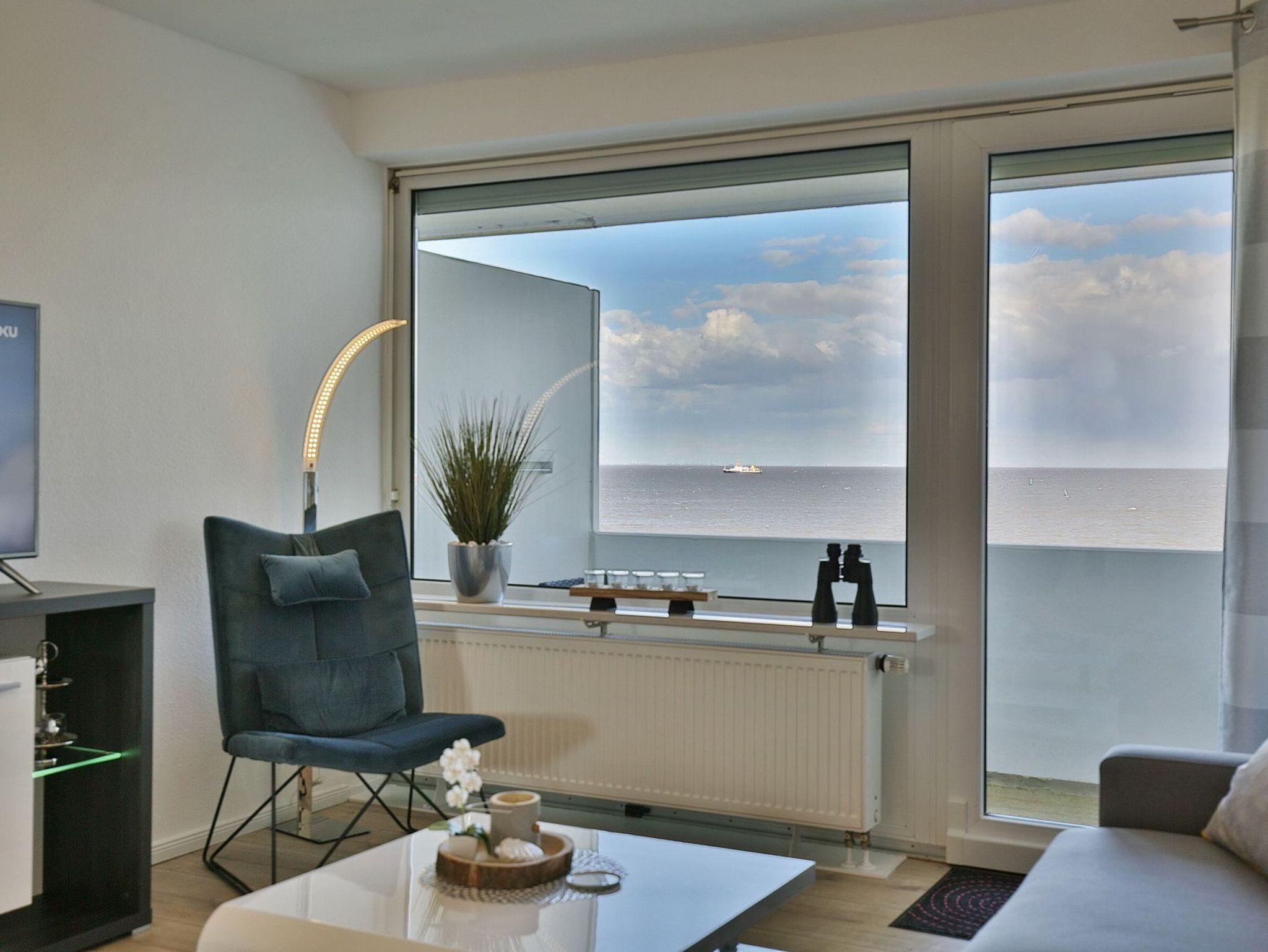 Moderne Ferienwohnung mit Meerblick und Balkon im Haus Nautic in Cuxhaven.