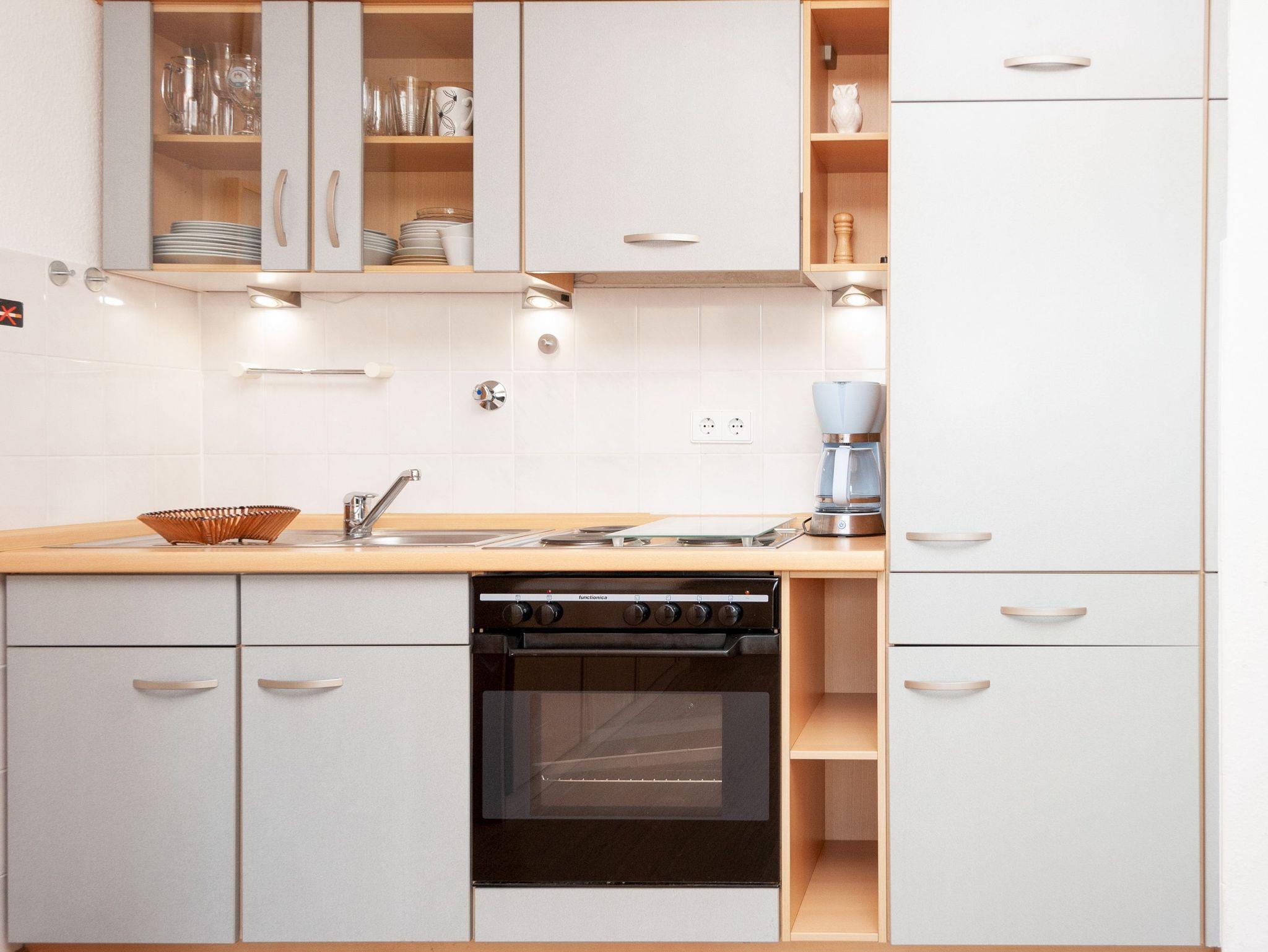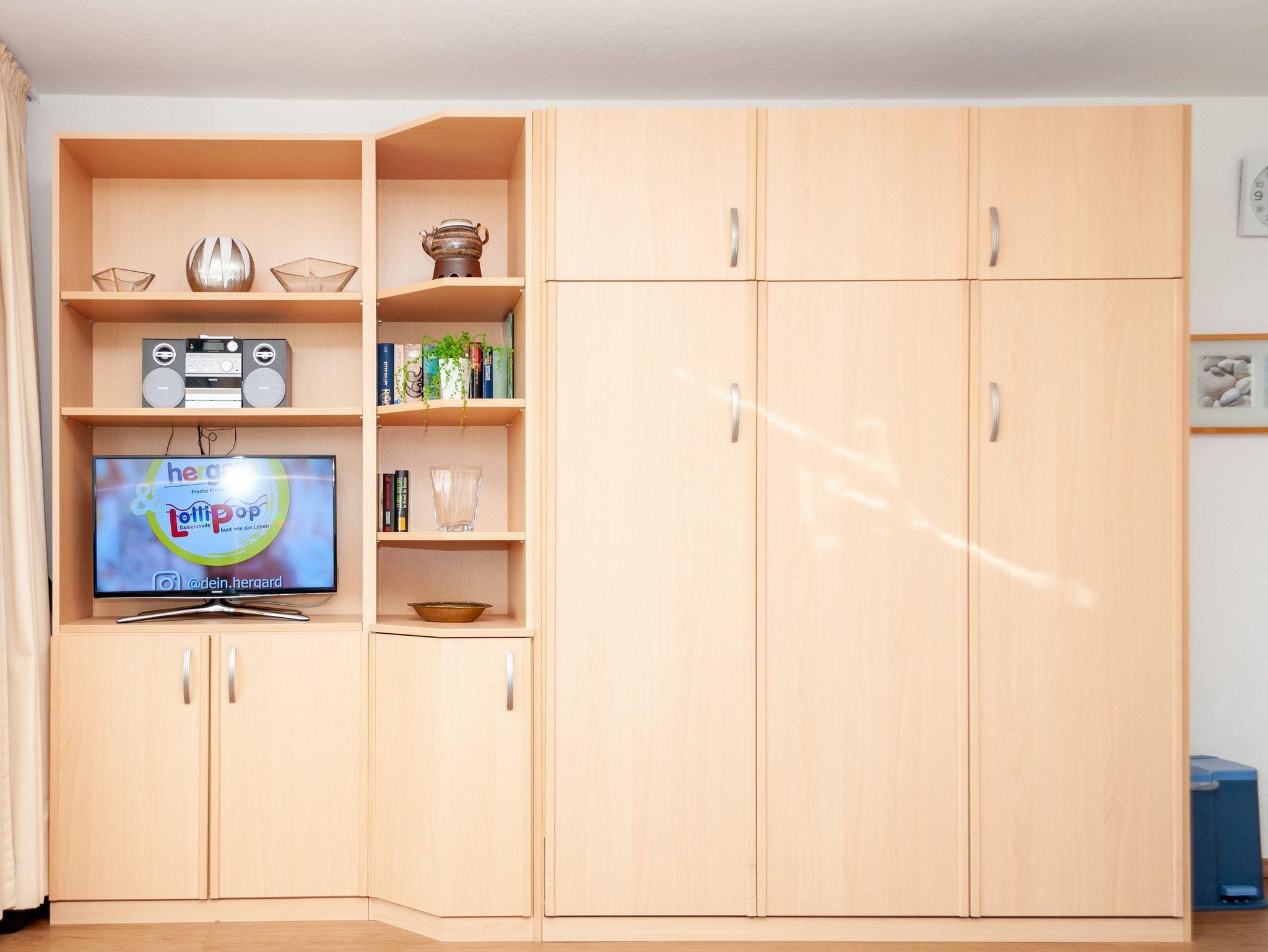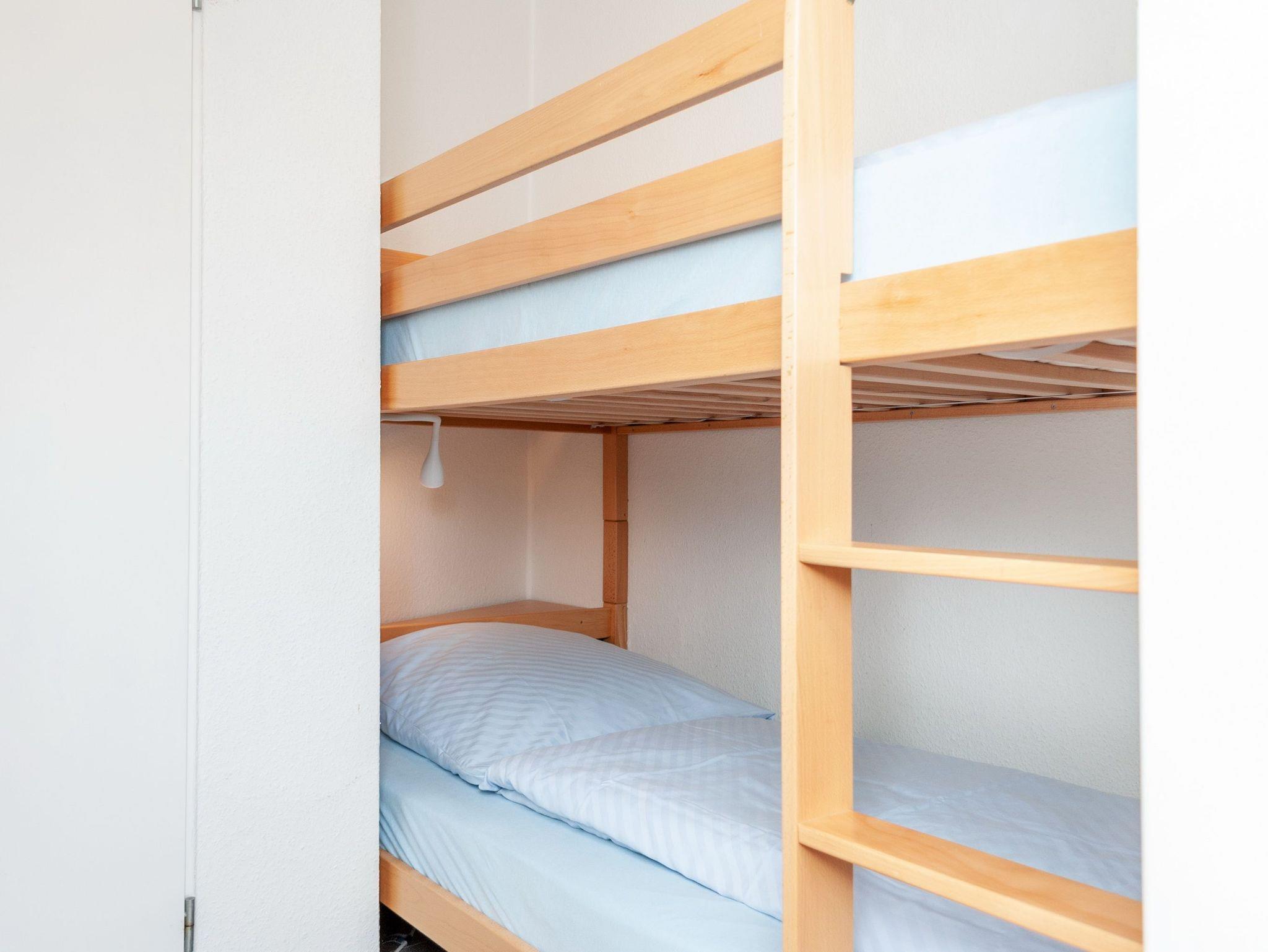 Das Apartment besteht aus einem Wohnbereich mit Schrankbett für 2 Personen ,aus einem zusätzlichem Etagenbett in einer Nische im Flur , und einem Badezimmer mit Dusche sowie WC. Die Ferienwohnung beinhaltet eine voll ausgestattete offene Küche.