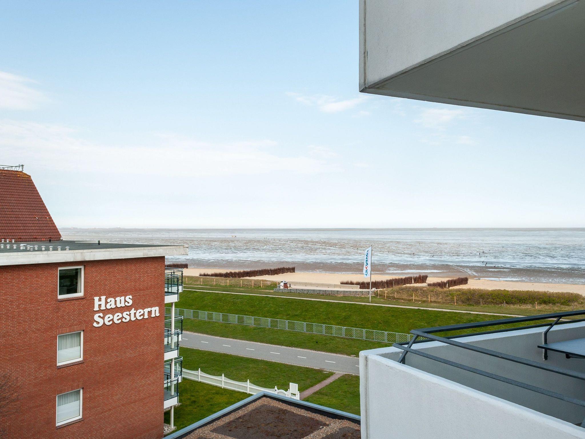 Modernes Apartment mit Meerblick, Balkon, Schwimmbad und Sauna in Cuxhaven, ideal für Familien.