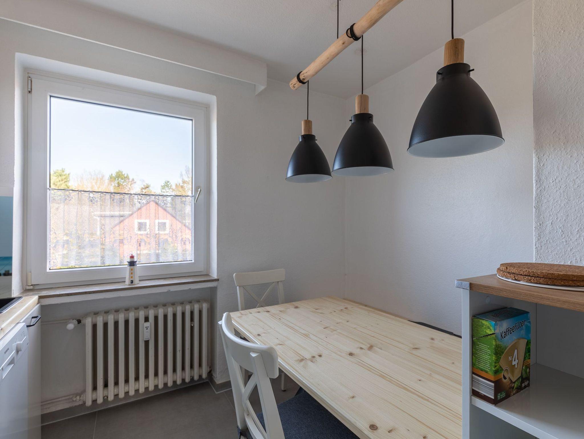 Die 3 Raum Ferienwohnung im 1. Obergeschoss mit einer Größe von ca. 75 m² Wohnfläche ist komplett bis zu 4 Personen ausgestattet.