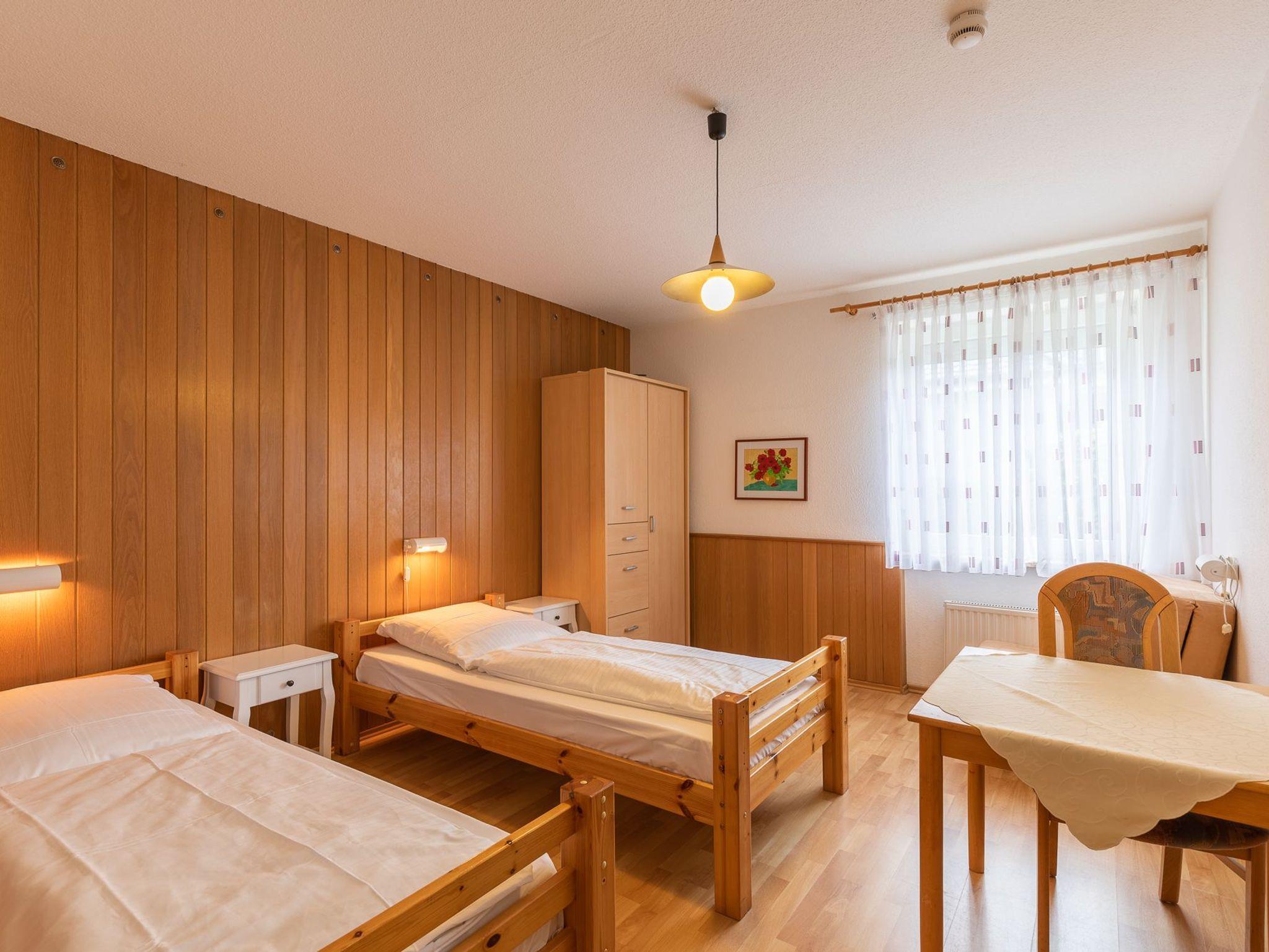 1 Schlafzimmer mit einem Doppelbett (mit Kleiderschrank), 1 Schlafzimmer mit 2 Einzelbetten (mit Kleiderschrank, Tisch und Stuhl), Wohnzimmer mit Zugang zur Terrasse (mit Gartenmöbel), 1 Flatscreen TV (Wohnzimmer), Esstisch, Sofa, separate Küche (Backofen, Cerankochfeld, Kühlschrank mit Gefrierfach, Mikrowelle, Kaffeemaschine, Wasserkocher, Toaster), 1xDusche mit WC, Waschbecken, Spiegel, Föhn, Waschmaschine (kostenpflichtig, mit Münzautomat) Nichtraucherwohnung, ein Haustier pro Wohnung ist willkommen (gegen Aufpreis).