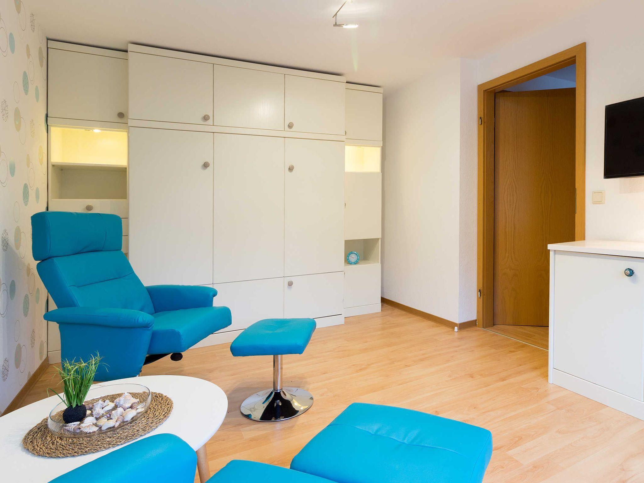 Zwei gemütliche Fernsehsessel mit Fußhocker warten auf Sie, wenn sie sich von einem herrlichen Tag am Strand ein bisschen ausruhen möchten. Von dort aus kann man im modernen Flachbild-Fernseher mit Kabelanschluss das Weltgeschehen oder die Lieblingssendung verfolgen. Kostenloses WLAN mit schneller Internetanbindung stehen Ihnen zur Verfügung.