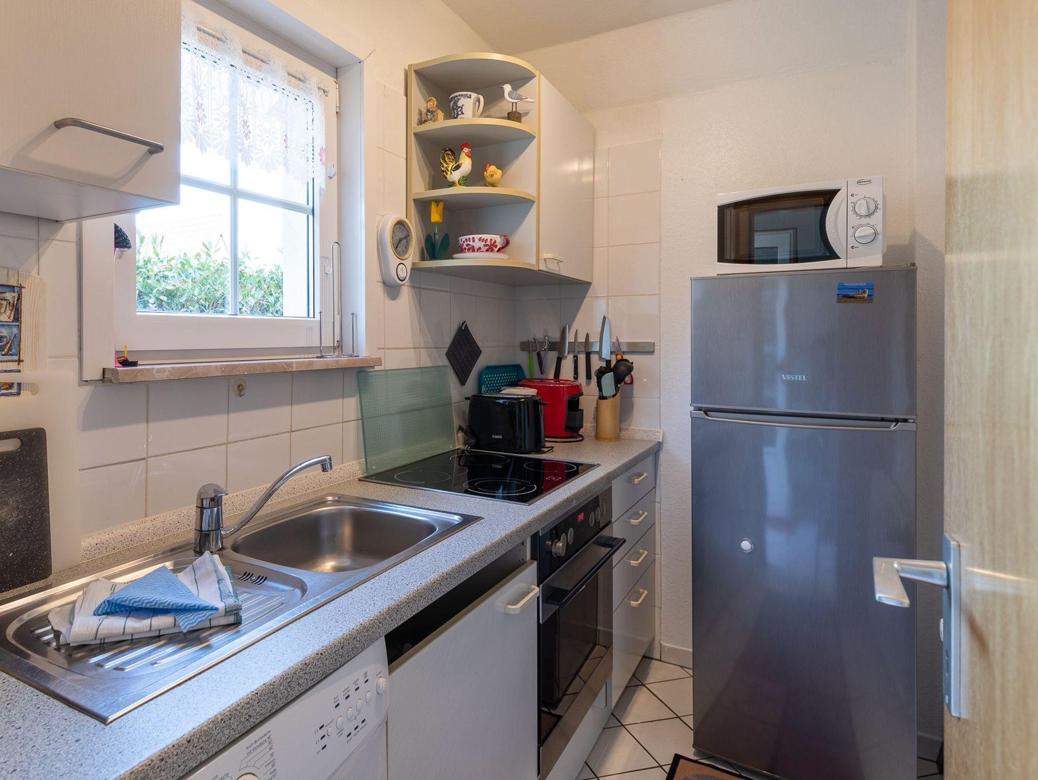 Das Haus mit ca.70 m² Wohnfläche, ist komplett für bis zu 4 Personen ausgestattet. Wohnzimmer mit Essplatz und gemütlicher Sofaecke. Einbauküche (Waschmaschine, Backofen, Kochfeld, Kühlschrank mit Gefrierfach, Toaster, Wasserkocher und Kaffeemaschine), Flatscreen TV. Vom Wohnzimmer aus hat man den direkten Zugang zur Terrasse und Garten, Duschbad, im Obergeschoss befinden sich 2 Schlafzimmer mit Doppelbett und 1 Schlafzimmer mit 2 Einzelbetten.