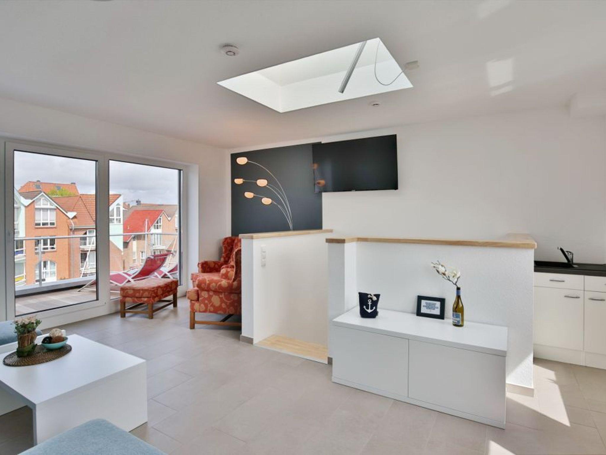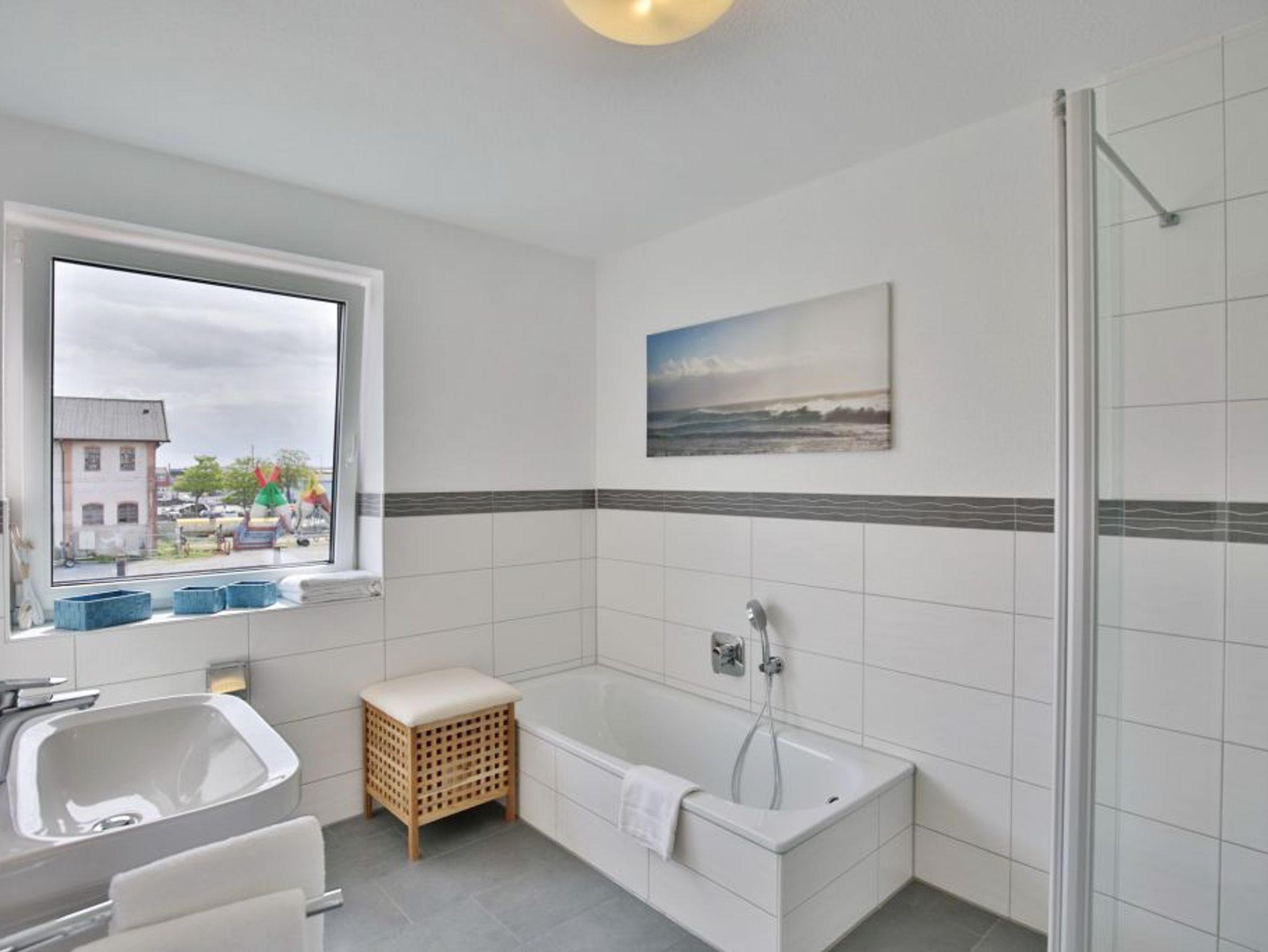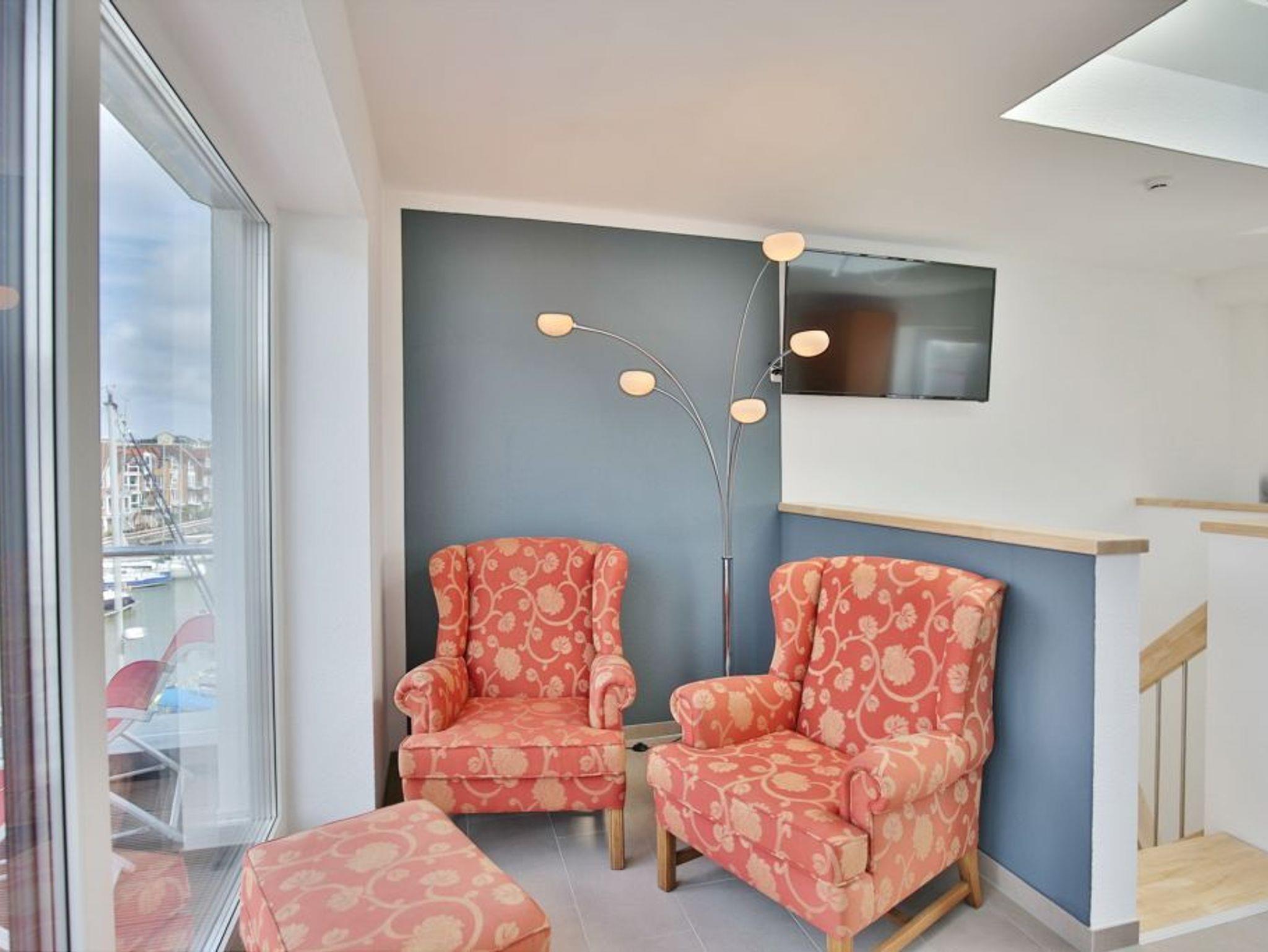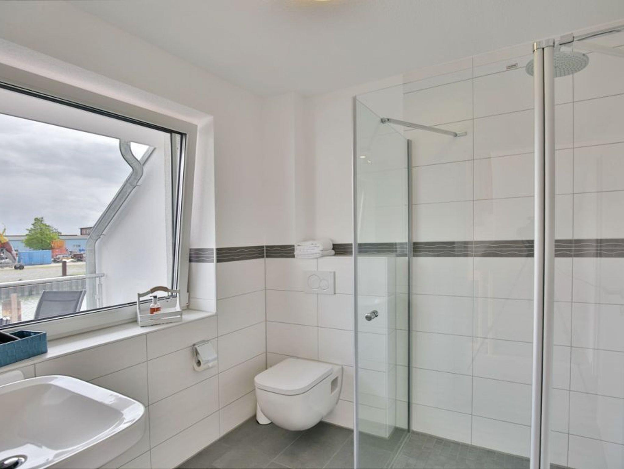 Moderner Luxusneubau auf 4 Etagen für bis zu 6 Personen direkt im Yachthafen. EG: Großzügiges Wohnzimmer mit TV, offener Küche in Vollausstattung, Gäste-WC. 1.OG: 1 Schlafzimmer mit Doppelbett und TV, Bad mit Dusche/WC und großer Sauna zur freien Nutzung, Balkon (ost). 2.OG: 2 Schlafzimmer je mit Doppelbett, Bad mit Badewanne/Dusche/WC, Waschmaschine und Trockner im Abstellraum. 3.OG: Tolle Lounge mit TV, Leseecke, Kühlschrank, Spüle und Pad-Kaffeemaschine. Fußbodenheizung im gesamten Haus, Schlafräume mit elektrischen Außenrollläden, Kostenfreies W-Lan, Fahrradschuppen mit eBike-Ladestation, einen KFZ-Stellplatz direkt vorm Haus.