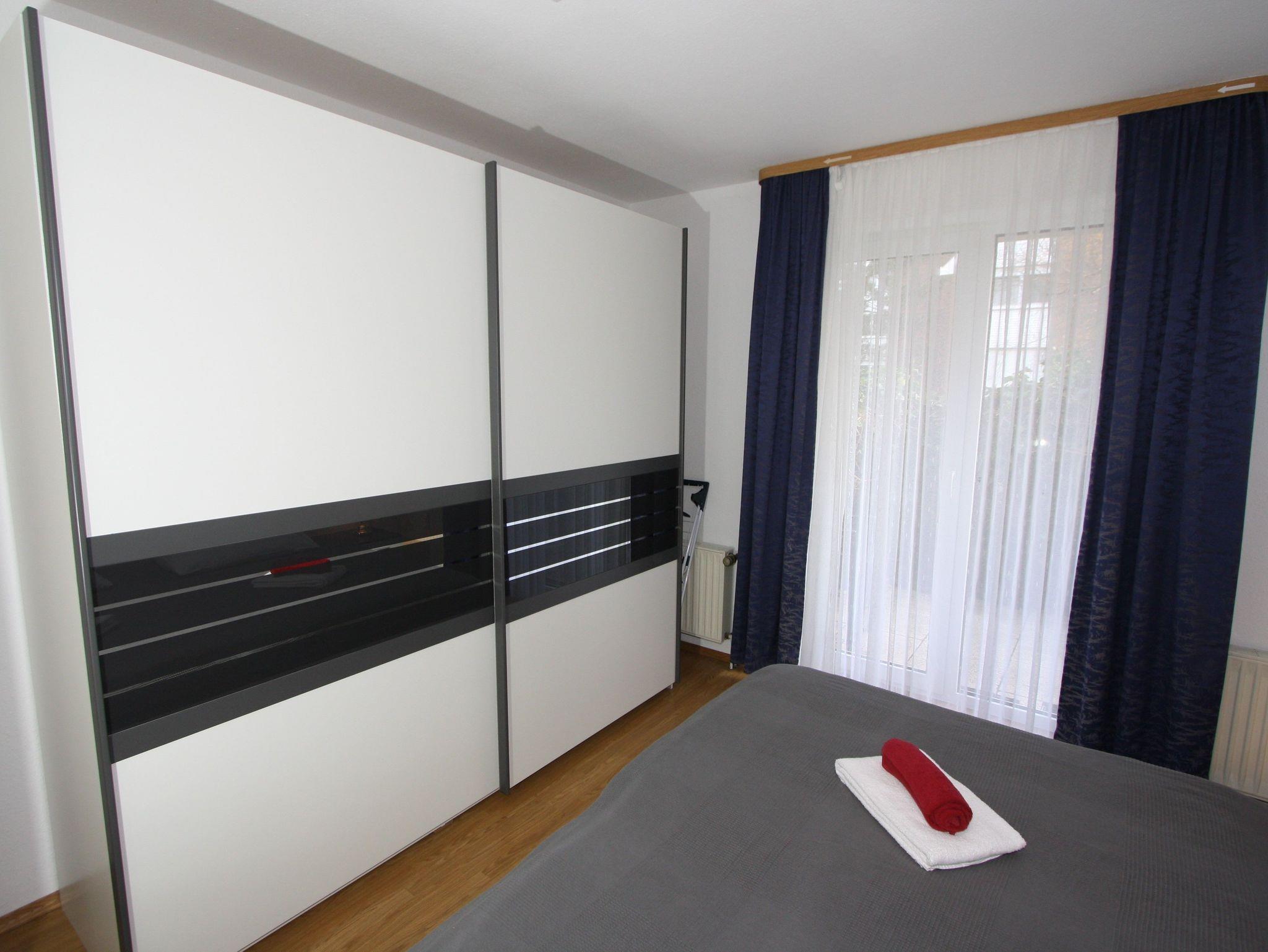 2-Zimmer-Appartement für bis zu 4 Personen auf ca. 46 m². Schlafzimmer mit Doppelbett, Wohn-Schlafraum mit Doppelbettcouch, TV, separatem Essplatz, voll ausgestattetem Küchenbereich, Balkon oder Terrasse, Bad mit Dusche/WC. WLAN und PKW-Stellplatz vorhanden.