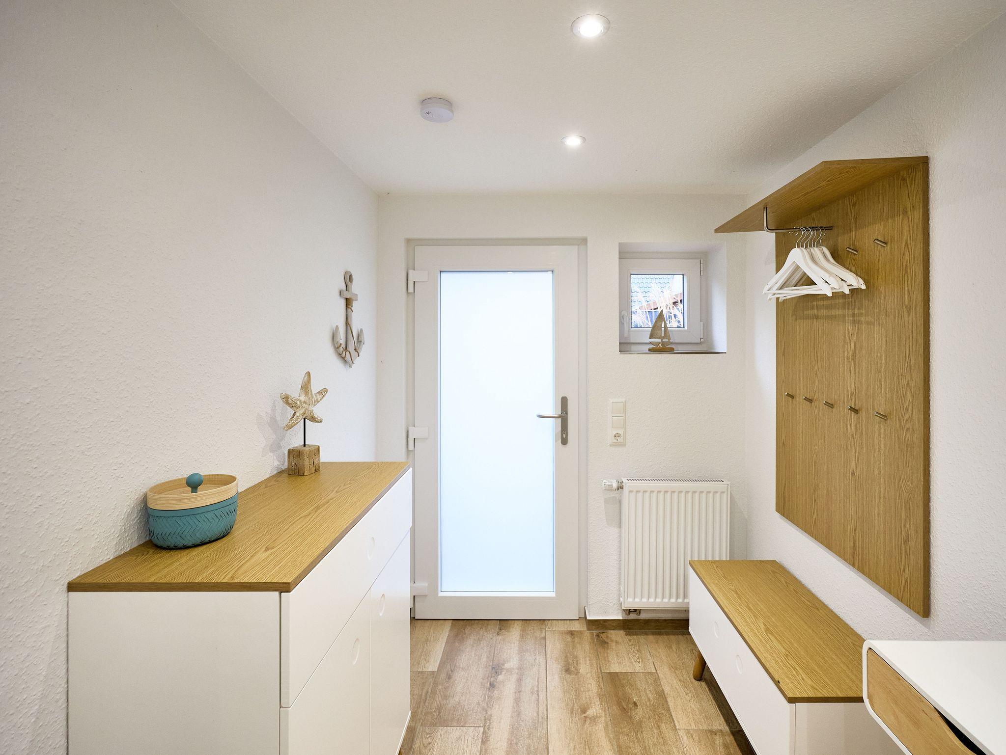 • Heller Eingangsbereich mit viel Stauraum und Zugang zur Terrasse