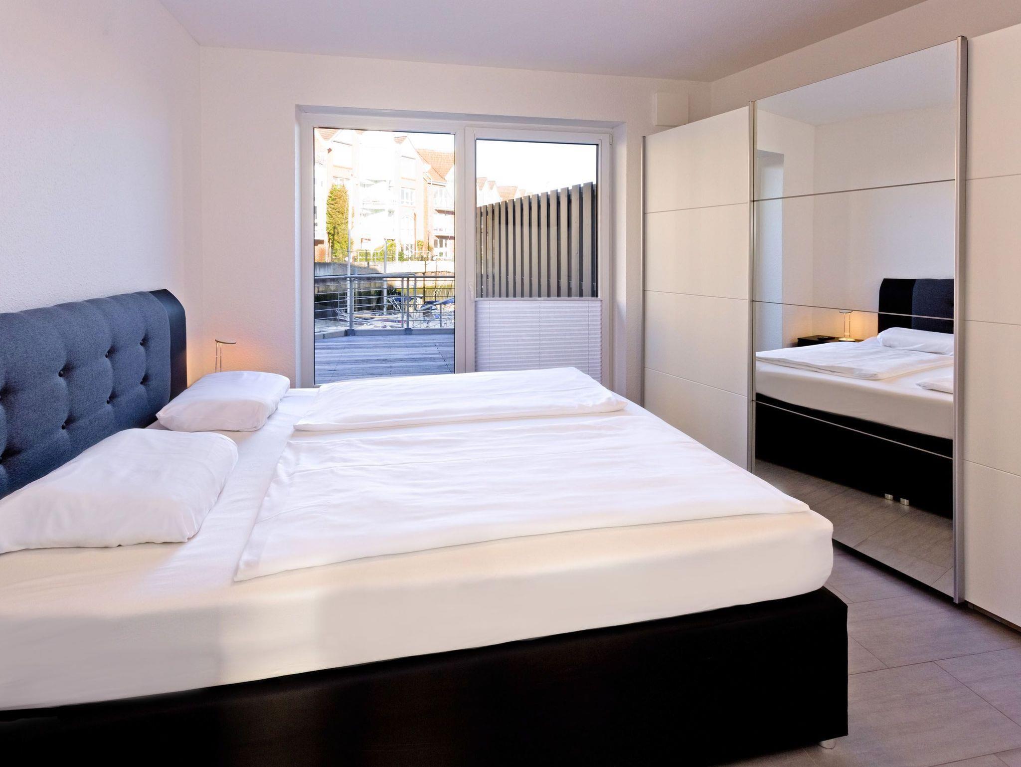 Schöne 2-Raum-Wohnung für 2 Pers. in der City Marina im Erdgeschoss mit großer Terrasse direkt am Hafenbecken. Voll ausgestattete Küchenzeile mit Backofen, Geschirrspüler etc.. Wohn- Esszimmer mit TV, Schlafzimmer mit Doppelbett, TV und elektr.. Rollläden, Badezimmer mit ebenerdige Dusche/WC. Waschmaschine i.d. Wohnung, kostenloses W-Lan, Stellplatz #1 und großer separater Abstellraum mit E-Bike Lademöglichkeit, keine Haustiere und natürlich Nichtraucher.