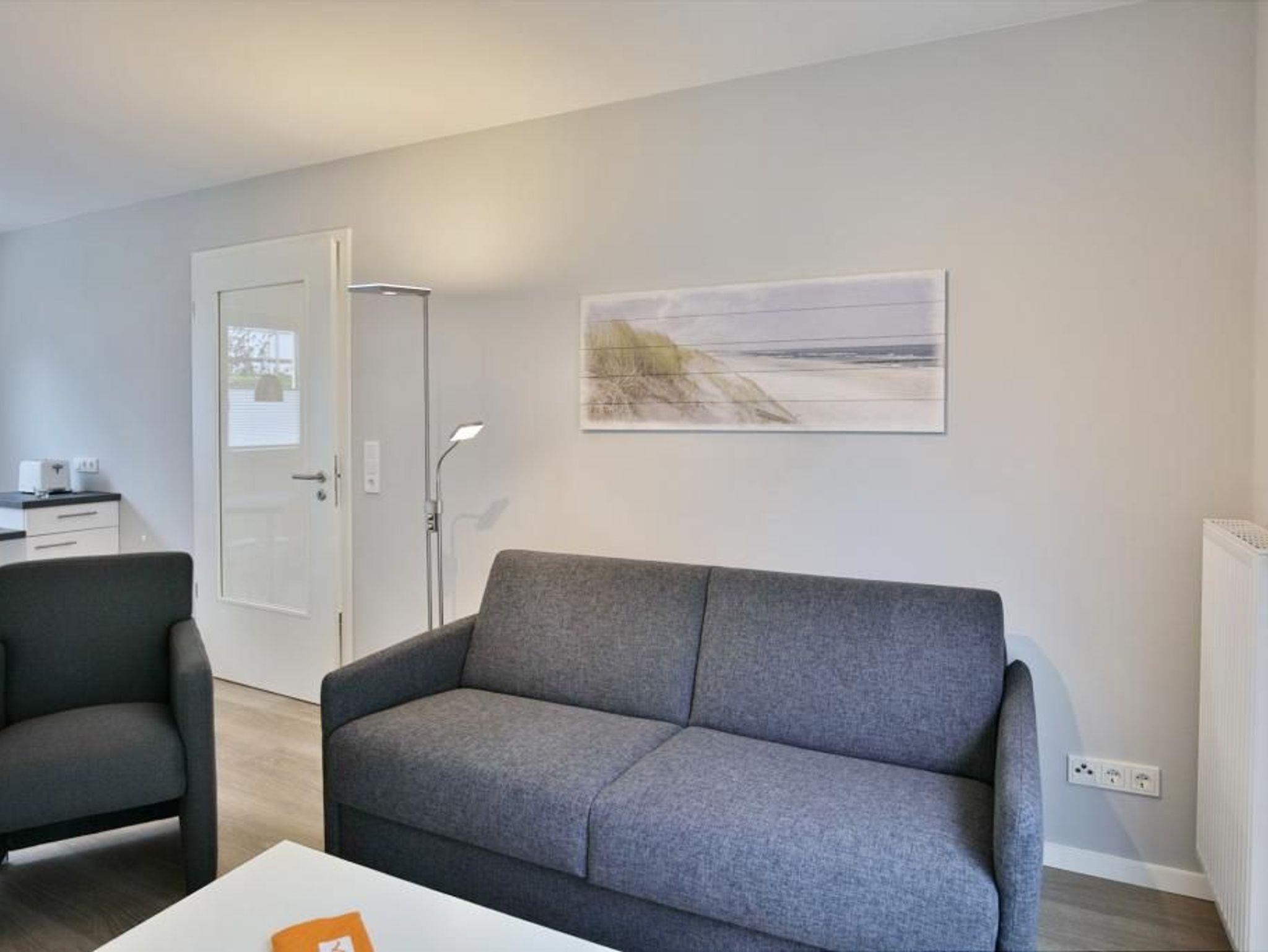 Schöne Ferienwohnung auf ca. 50m² bis 3 Pers. im EG für Ihren Wohlfühlurlaub. Große Terrasse (süd), 1 Schlafzimmer mit Doppelbett und TV, Wohn-/Schlafzimmer mit hochwertiger Schlafcouch u. TV, Blue-Ray-DVD, kostenfreies W-LAN, vollständige Küchenzeile mit Geschirrspüler, Gefrierfach, Backofen, Mikrowelle, ebenerdige Dusche/WC mit Föhn, alle Räume mit Rollladen, reservierter Pkw-Stellplatz #2 am Haus, Nichtraucherwohnung, keine Haustiere gestattet.