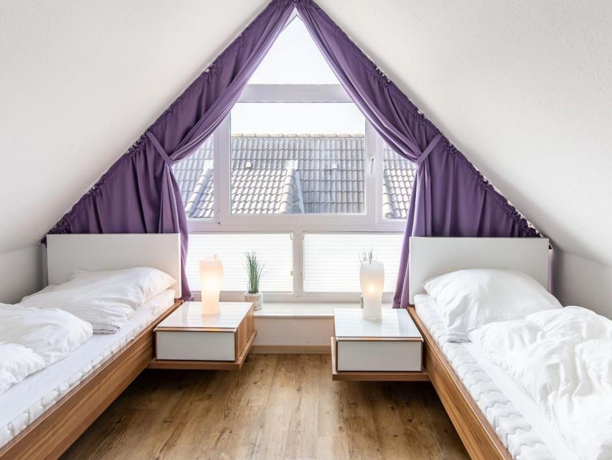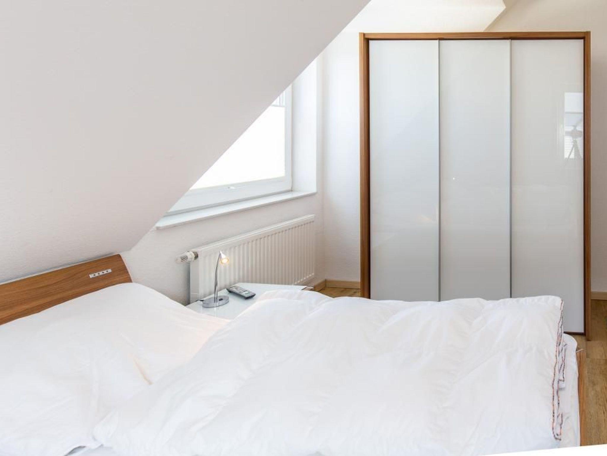 Sehr schöne 3-Raum-Maisonette-Wohnung bis 4 Pers. (57m²), 1.Etage, 1 Schlafzimmer mit Doppelb., 1 Schlafzimmer im Dachgeschoss mit zwei Einzelbetten, 2x Du/Wc, Föhn, Wohnzimmer mit großer Küchenzeile (Back., Mikrow., Geschirrspüler) 3xSAT-TV (3D), Blue-Ray, Stereo, W-LAN kostenlos, großer Balkon (süd), Rollläden, reservierter Pkw-Stellplatz #8 vor dem Haus, keine Haustiere erlaubt und Nichtraucher.