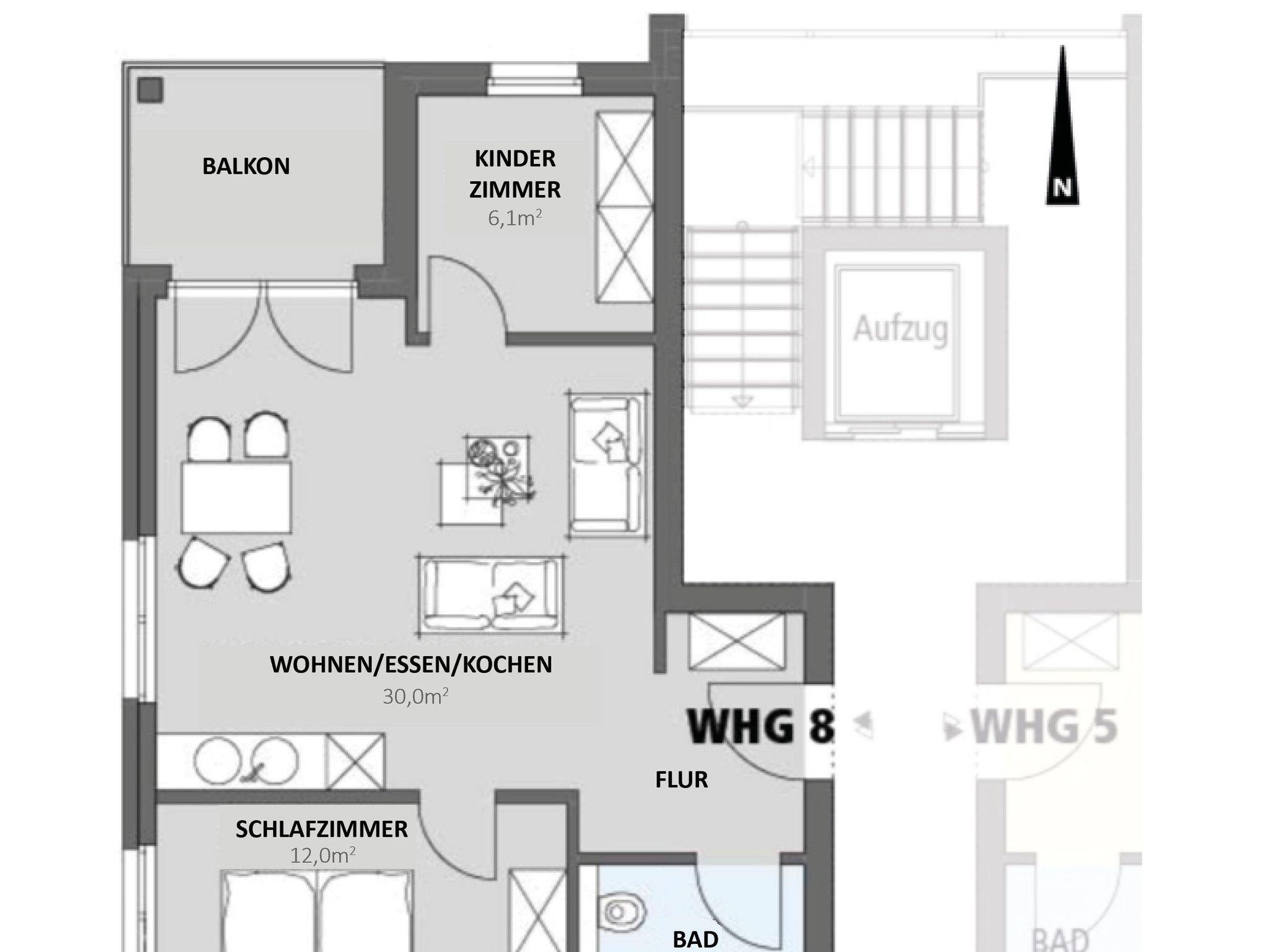 Die Ferienwohnung ist stufenlos über einen geräumigen Aufzug erreichbar.