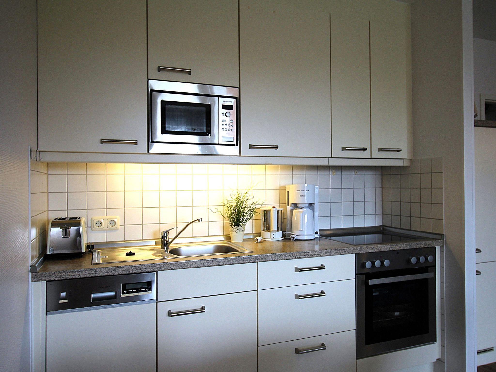 Der separate Essplatz lädt nun zum gemeinsamen Frühstück oder Abendessen ein, dank des voll ausgestatteten Küchenbereichs kein Problem. Sie erwarten ein Geschirrspüler, Mikrowelle, Herd mit Back- und Grillfunktion, eine umfangreiche Auswahl an Geschirr und sowohl eine Filter- als auch eine Senseo-Kaffeepadmaschine.