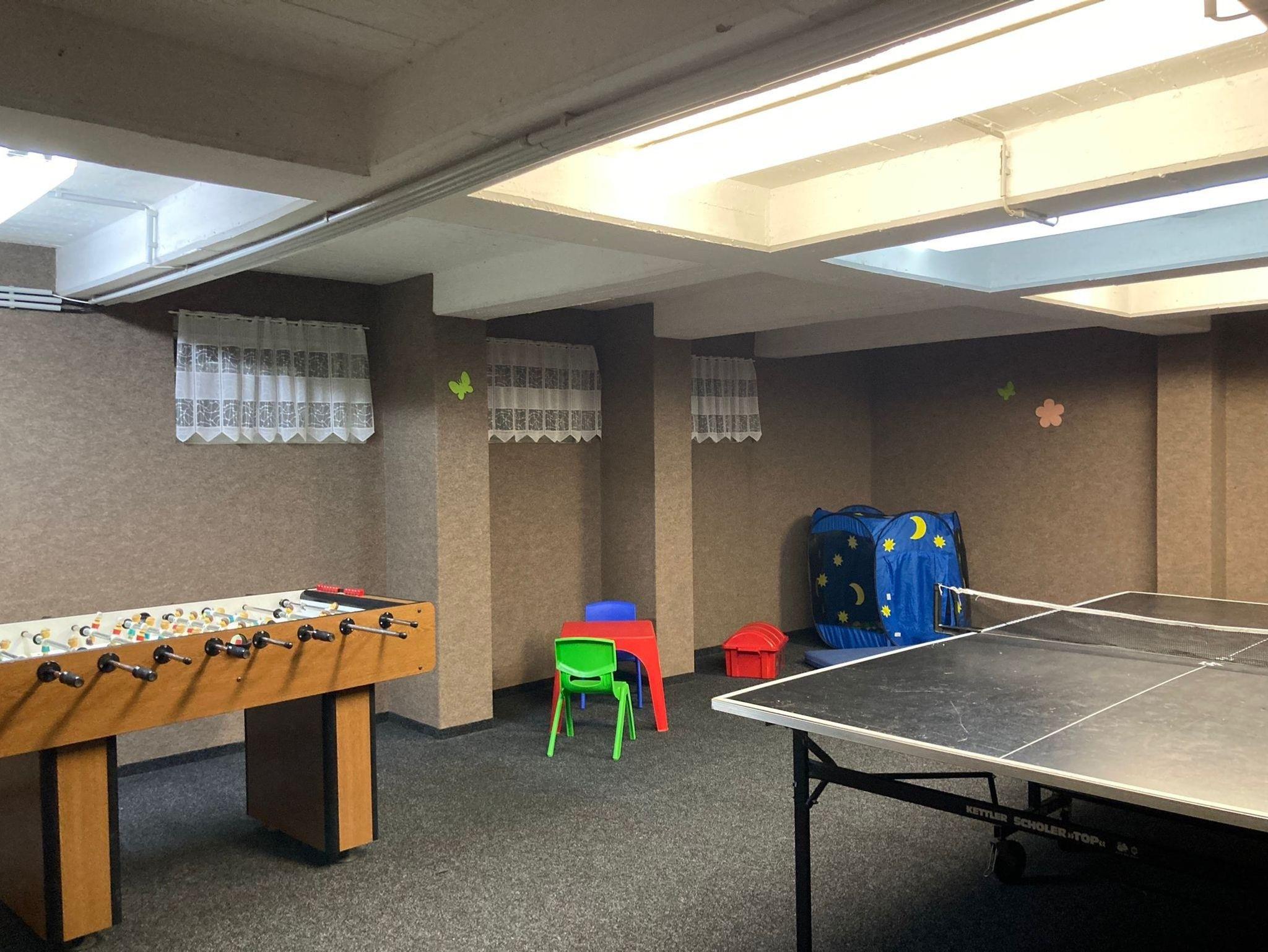 Freizeitangebote: Spielraum mit Tischtennis, Kicker und Ballebad, Kinderspielplatz, Schwimm- und Saunamoglichkeiten in einem der großten Meerwasserbrandungsbader, dem Thalassozentrum ahoi! im nahen Ortsteil Duhnen.
