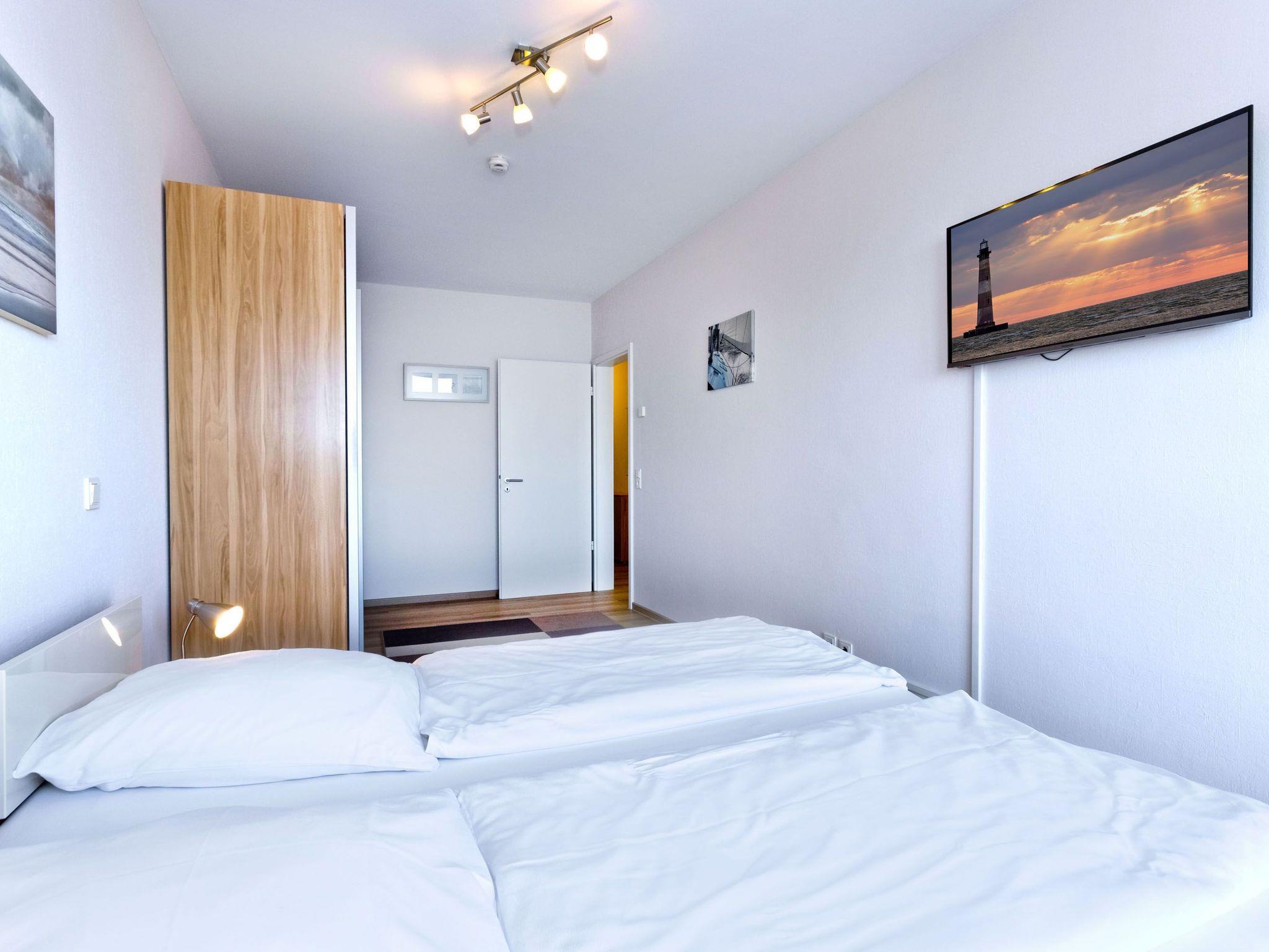 Sehr schöne 3 Zi.-Wohnung in der 4.Etage über 75m². Traumhafter Seeblick auf den Weltschifffahrtsweg aus allen Zimmern, 1 Schlafzimmer mit Doppelbett [&] TV, 1 Schlafzimmer mit 1 Einzelbett, alle Räume mit Außenjalousien, 1 Bad/Wc und 1 Du/Wc, Wohnzimmer mit komplett ausgestatteter Küchenzeile, schöner Balkon zur Wasserseite. Alle Räume sind hochwertig mit Parkett gestaltet. Waschmaschine i.d.Whg., reservierter Pkw-Stellplatz in der Tiefgarage inkl. Nichtraucher, keine Haustiere erlaubt.