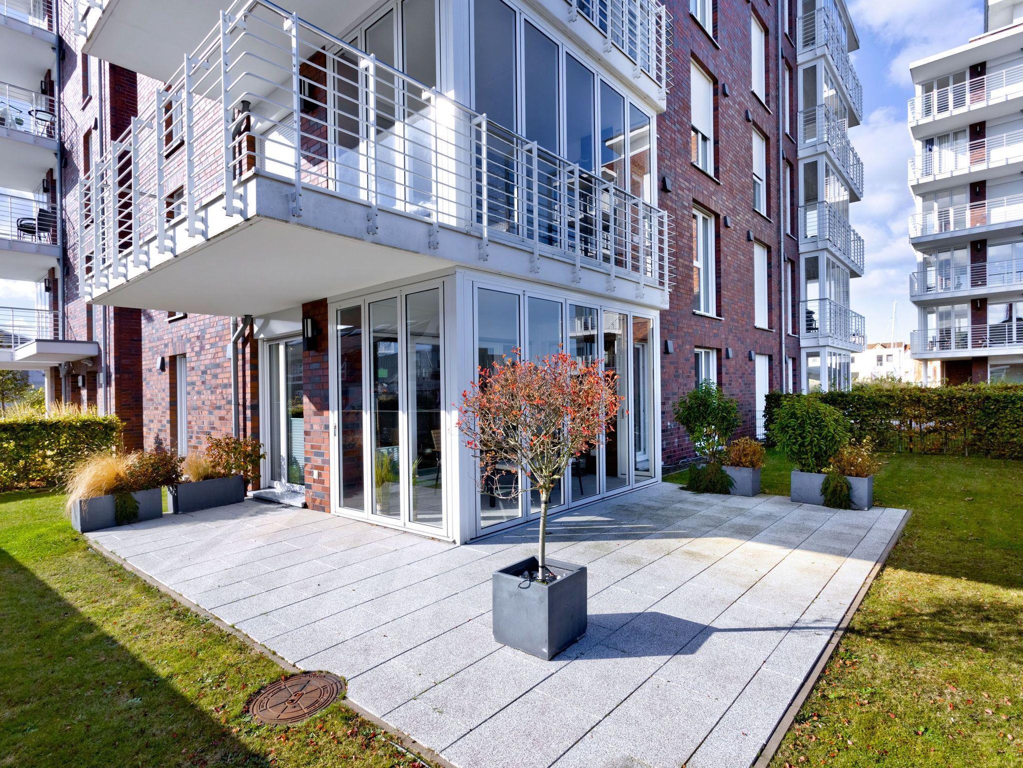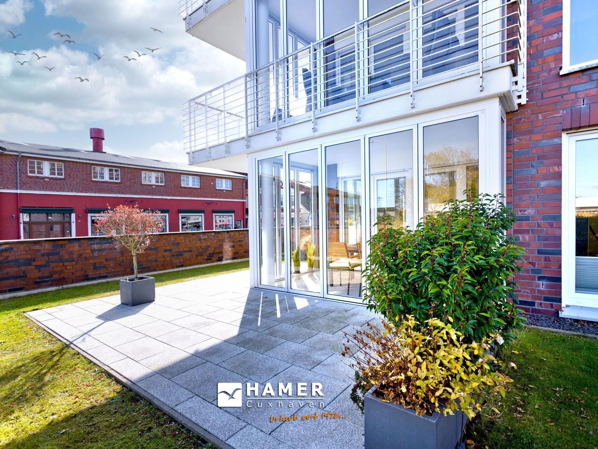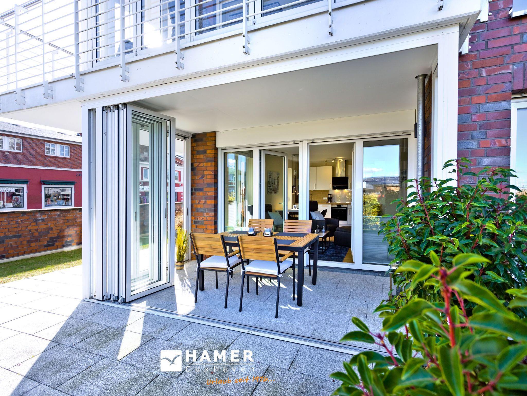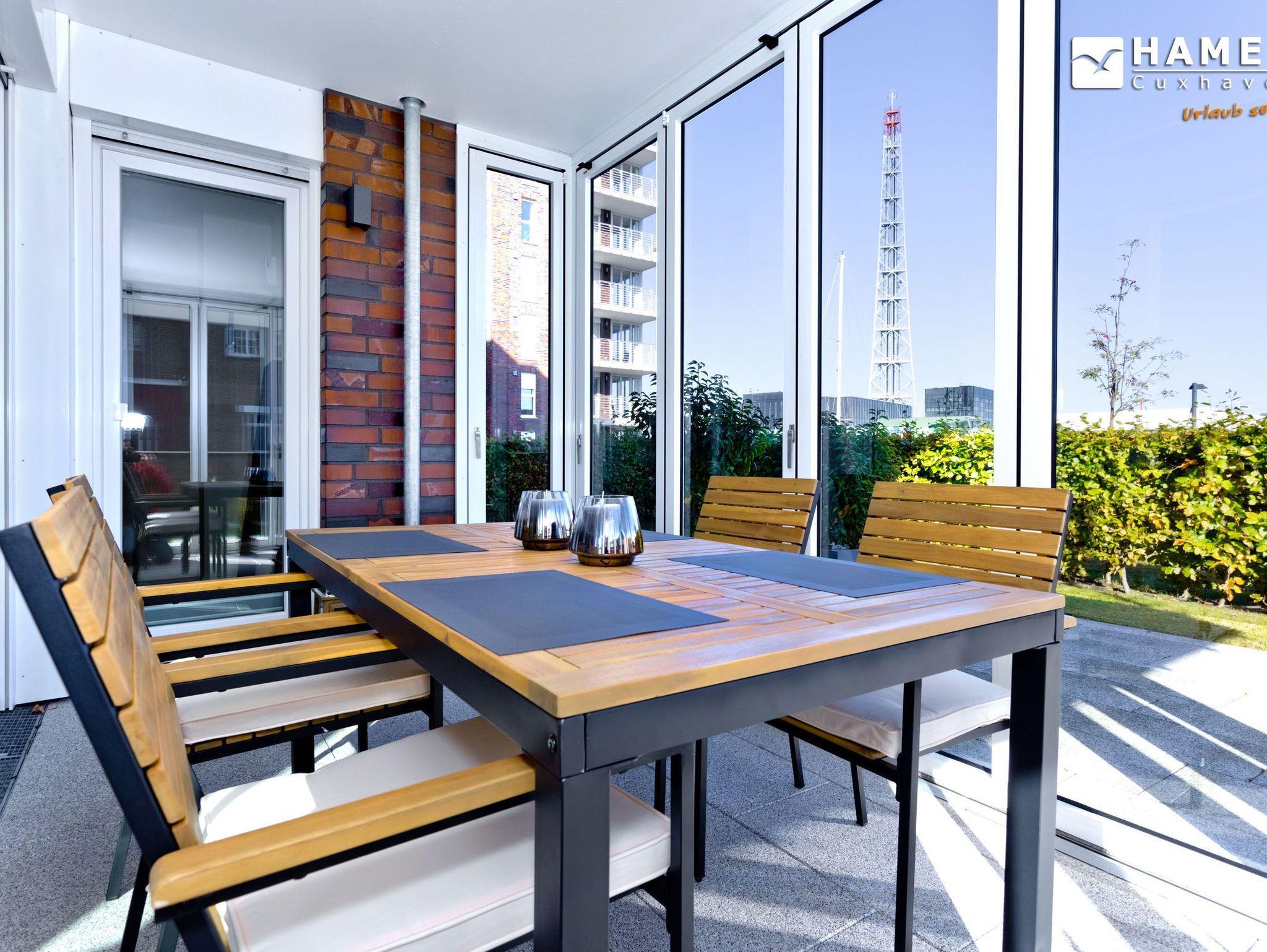 Luxuriöse Neubauwohnung Kapitän Alexander direkt an der Marina Cuxhaven mit Terrasse und moderner Ausstattung.