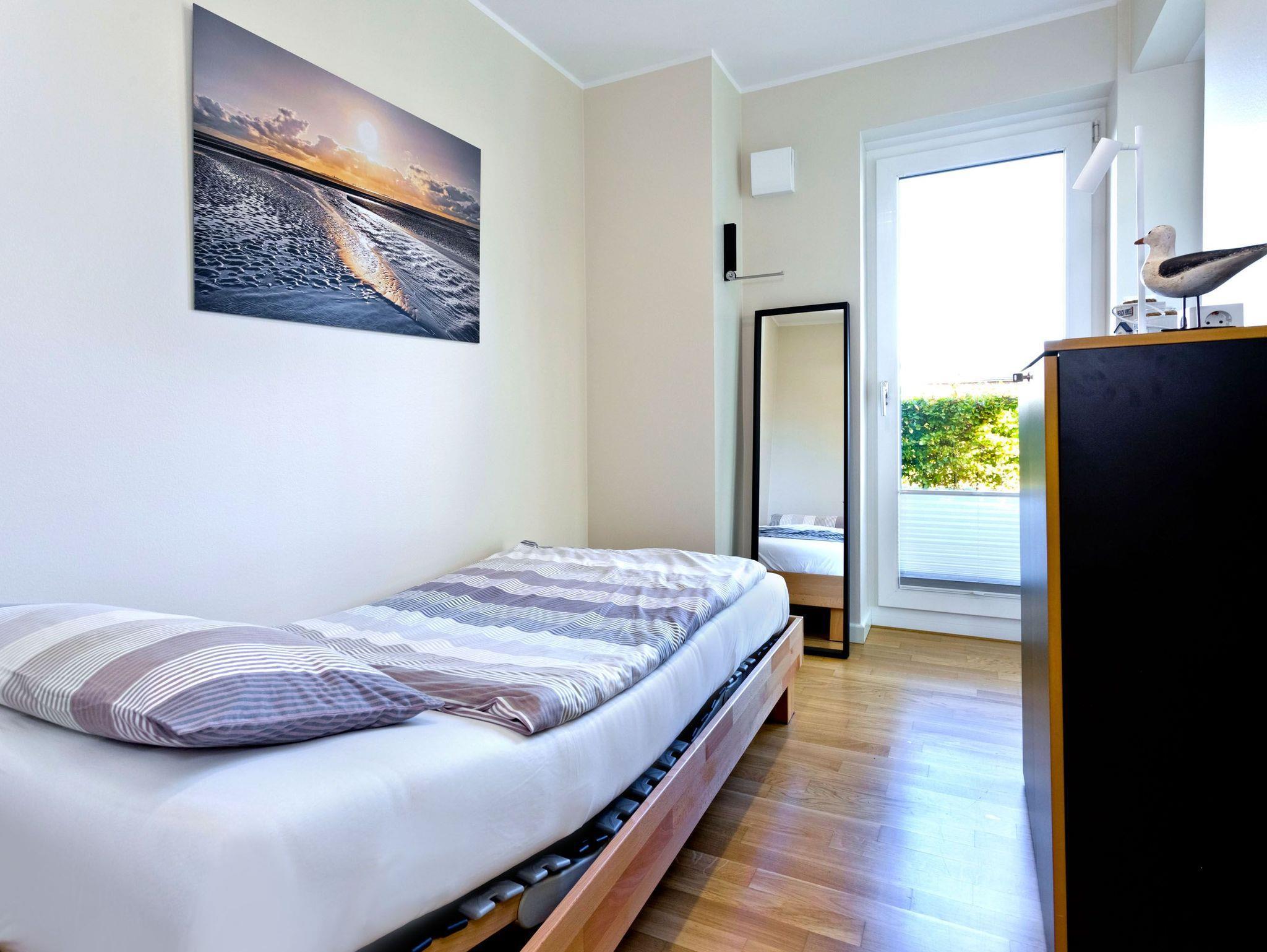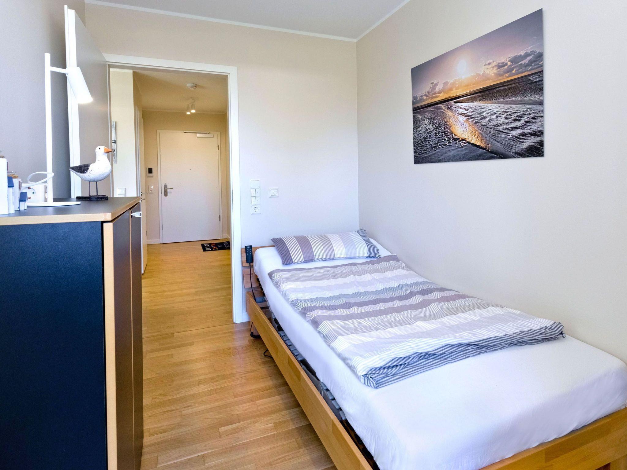 Haus Kapitän Alexander, direkt an der Marina Cuxhaven gelegene Neubauwohnung ? NEU RENOVIERT und NEU MÖBLIERT Oktober 2024 ? ca. 78m². Tolle 3 Zimmer-Luxus-Wohnung im Erdgeschoss für max. 3 Pers. ausgestattet. Großzügiges Wohnzimmer mit Terrasse (nord/ost). Die Terrasse ist teilweise windgeschützt als Loggia zu nutzen. Vollständig ausgestattete Küchenzeile, 1 Schlafzimmer mit Doppelbett (RÖWA Lattenrost elektr. verstellbar) und TV, Fliegengitter und großem Einbauschrank, 1 Schlafzimmer mit Einzelbett (Lattenrost elektr. verstellbar). Alle Räume sind über elektr. Außenjalousien zu verdunkeln. Fußbodenheizung, Kostenfreies W-Lan-Internet, Kabel-TV und Magenta TV, Nespresso Maschine, barrierefreie Dusche/WC, Miele-Waschmaschine und Miele-Trockner in der Wohnung. Reservierter Pkw-Stellplatz im Carport #8, Fahrradkeller, Nichtraucher und es sind keine Haustiere gestattet.