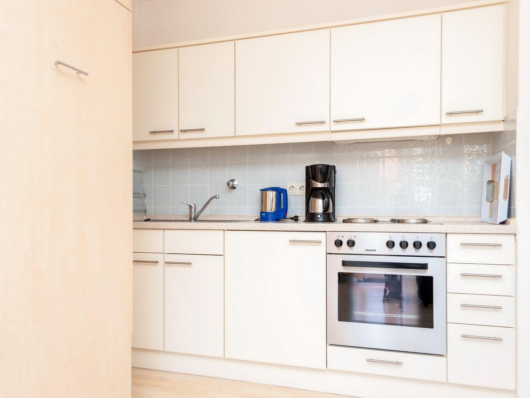 Das Apartment besteht aus einem Wohnbereich mit Schrankbett für 2 Personen, aus einem zusätzlichem Etagenbett in einer Nische im Flur und einem Badezimmer mit Dusche sowie WC. Die Ferienwohnung beinhaltet eine voll ausgestattete offene Küche.
