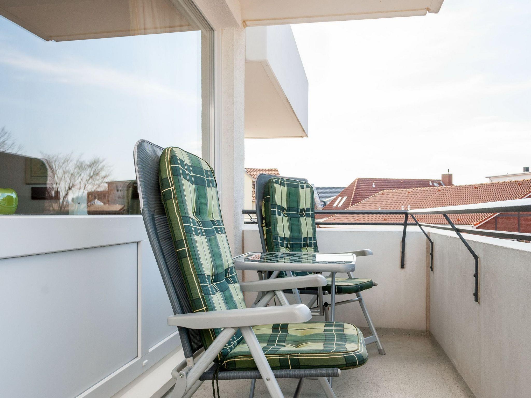 Das Apartment 202 ist ein 1-Raum-Apartment im 2. Obergeschoss für bis zu 4 Personen mit 40 qm. Der Westbalkon mit Meerblick bietet Ihnen vormittags Schatten und nachmittags Sonne.