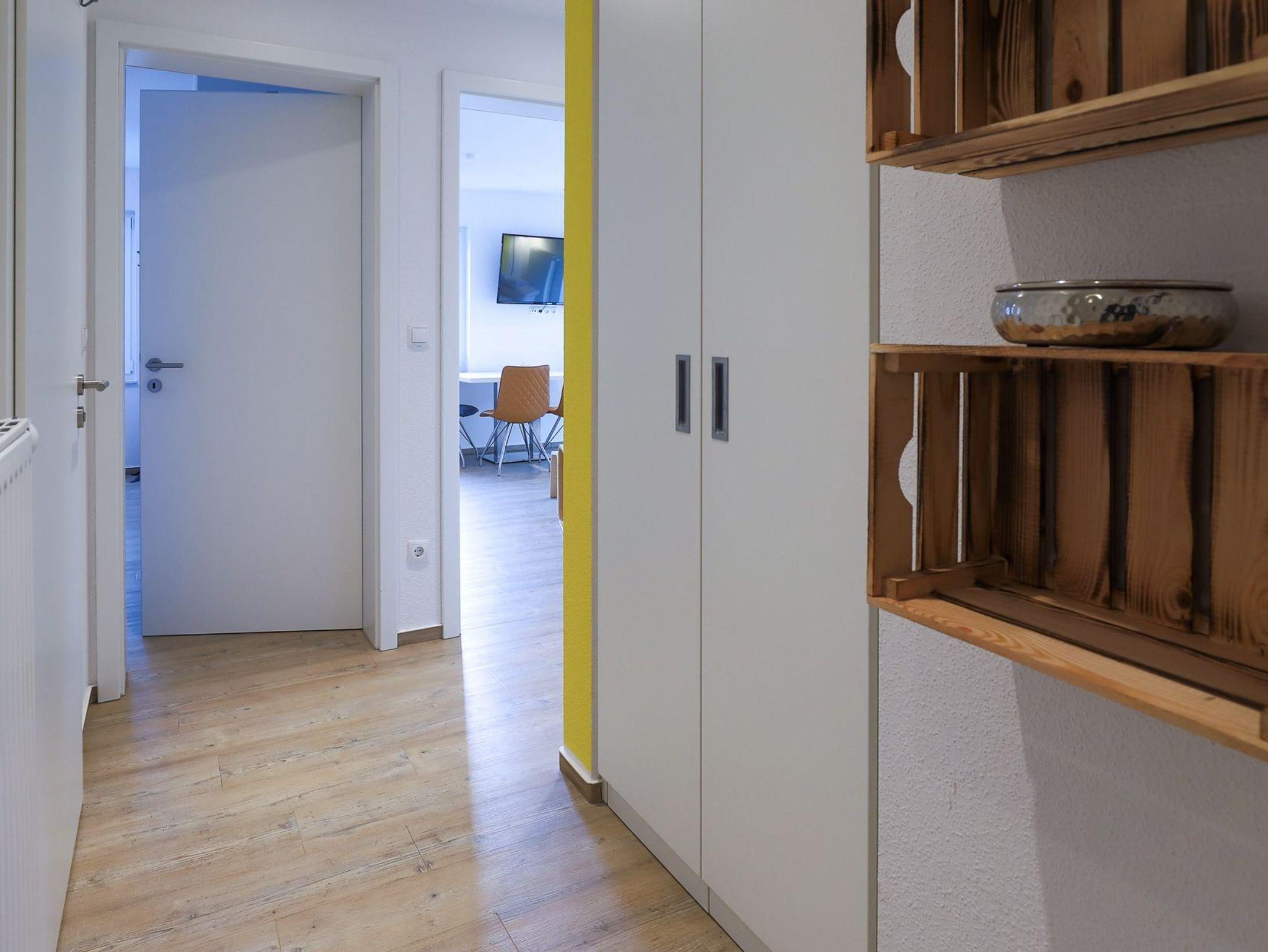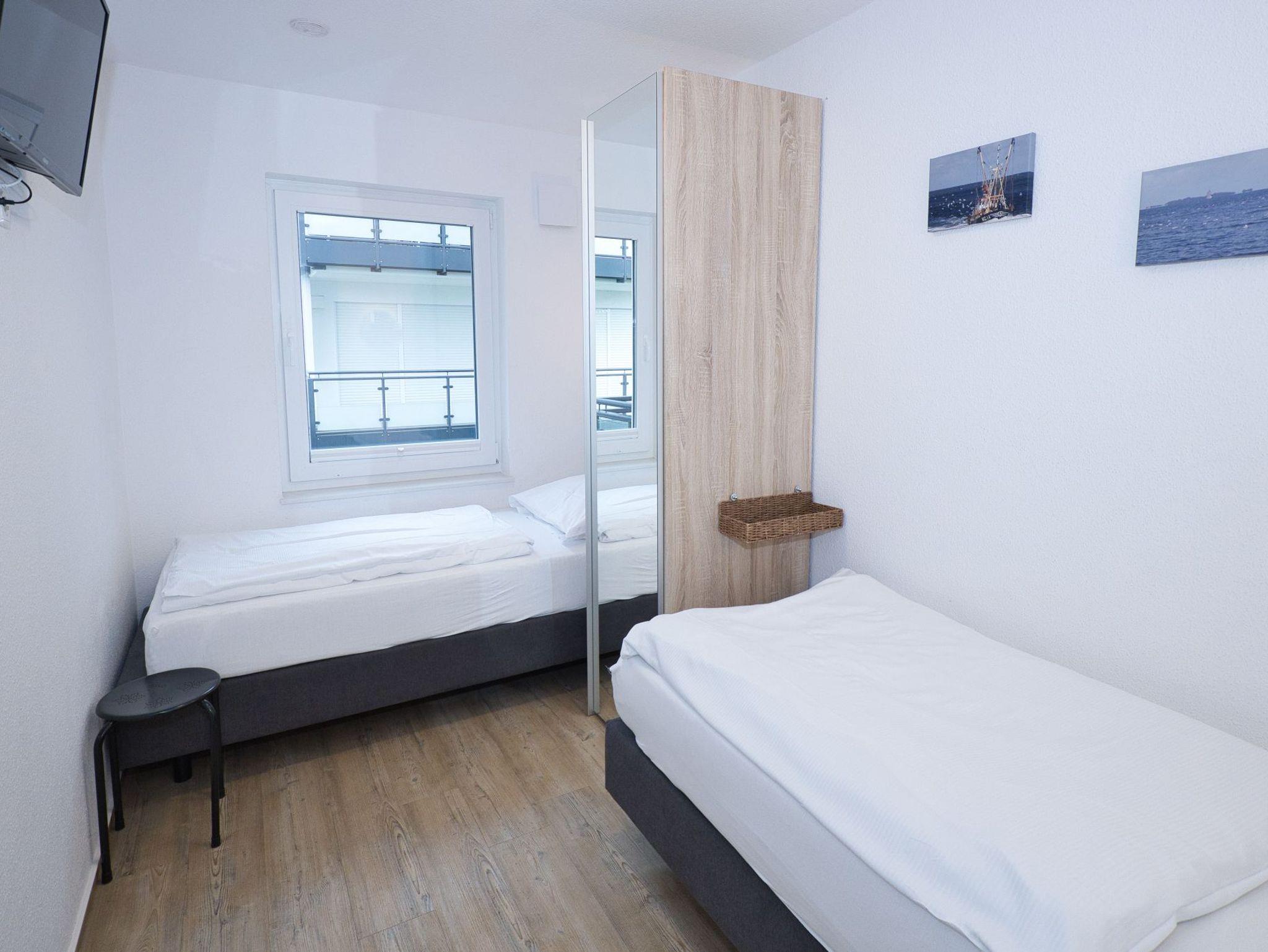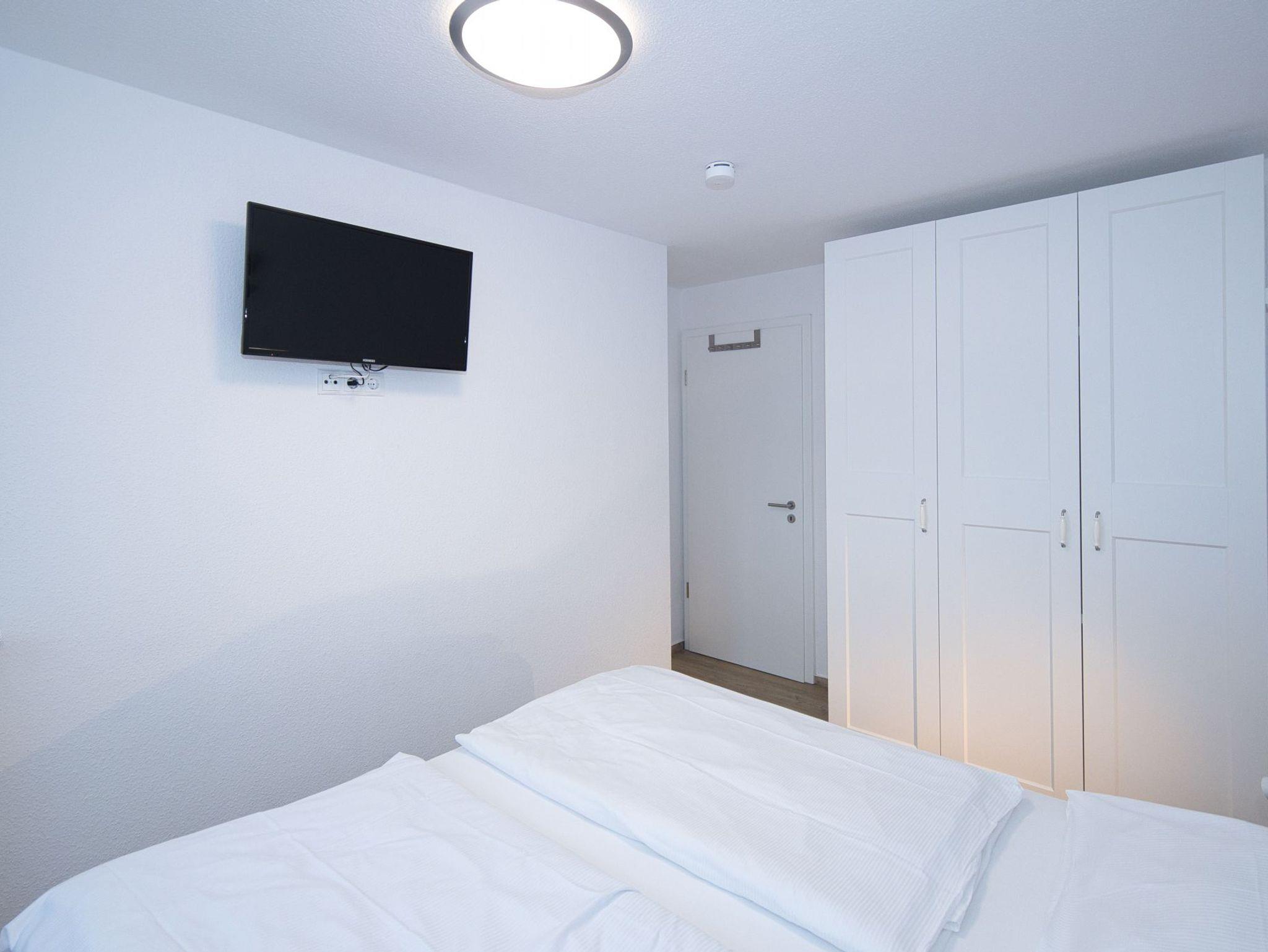 Die beiden Schlafzimmer der Ferienwohnung sind komfortabel eingerichtet und bieten Ihnen erholsame Nächte. Ein Schlafzimmer verfügt über ein gemütliches Doppelbett, während das andere mit zwei Einzelbetten ausgestattet ist. In beiden Schlafzimmern finden Sie zusätzlich einen eigenen Fernseher vor, sodass Sie auch hier Ihre Lieblingssendungen verfolgen können.