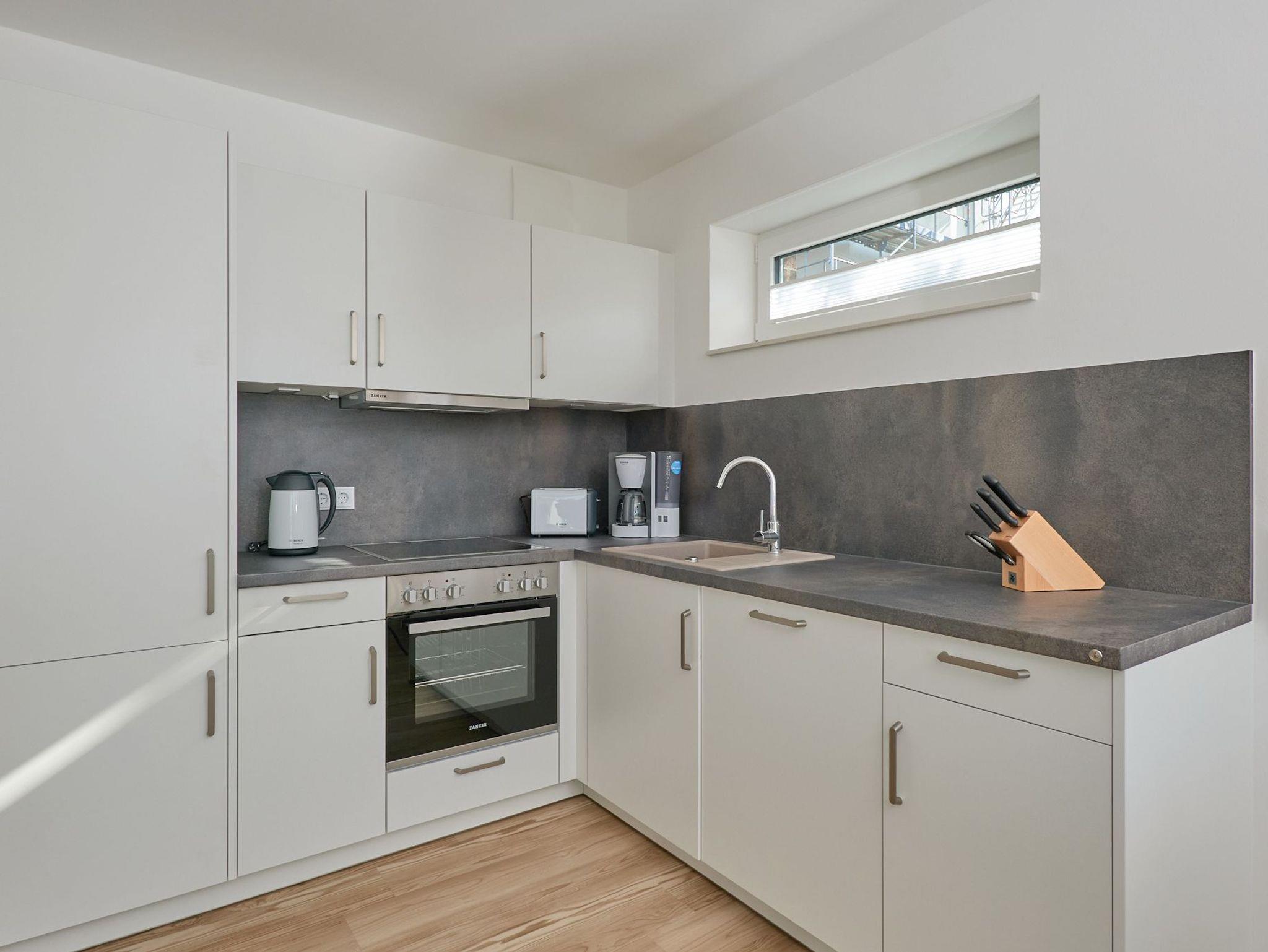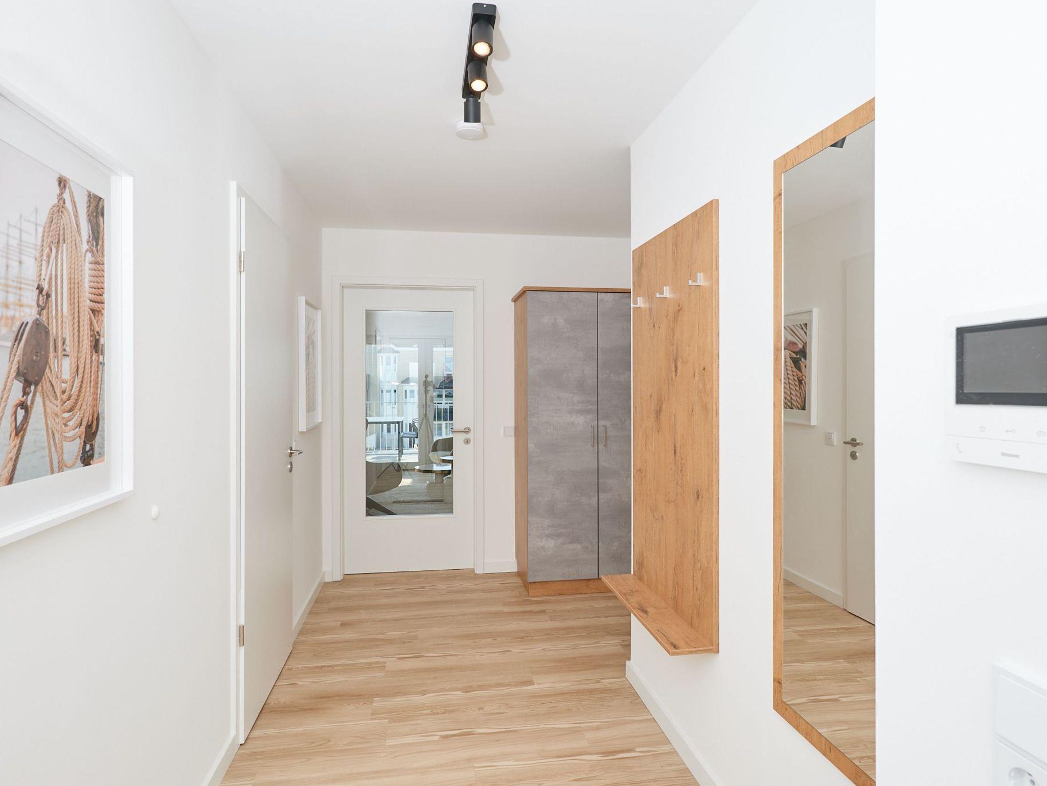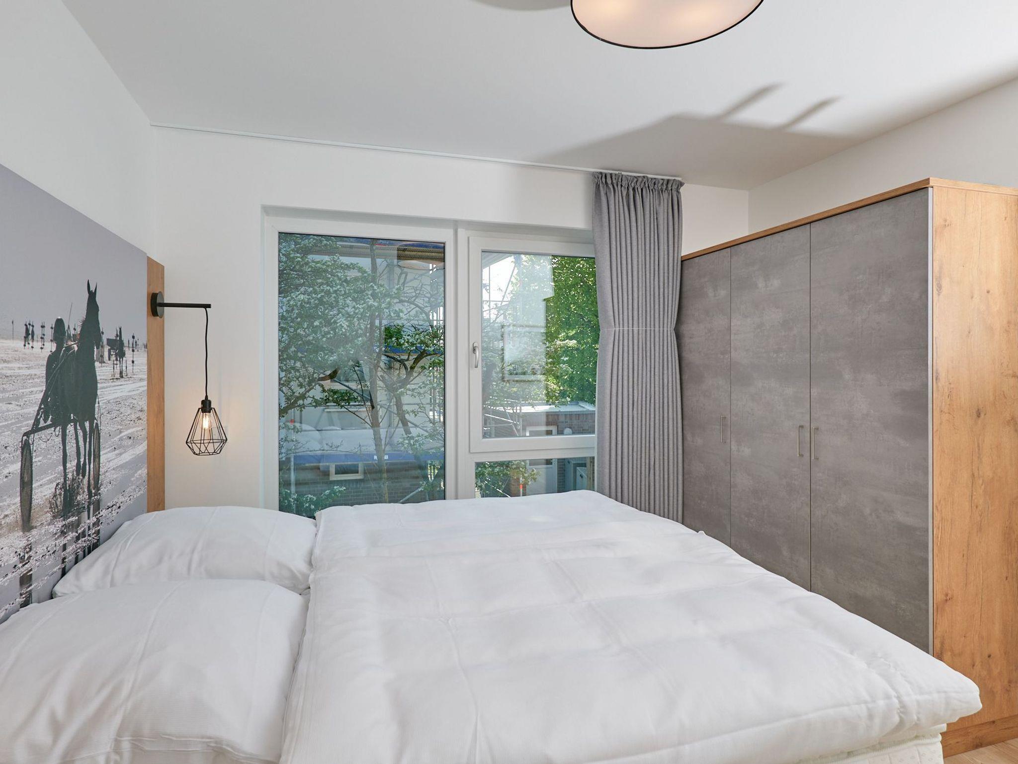 Neubau Mai 2023! Sehr schöne, moderne 3-Raum-Wohnung bis 4 Pers. voll ausgestattet auf ca. 67 m² in der 2.Etage gelegen, 2 Schlafzimmer (1x Doppelbett, 1x 2 Einzelbetten) und Außenjalousien an allen Fenstern, ebenerdige Dusche/WC, Wohnzimmer mit großer Küchenzeile (Backofen, Geschirrspüler, Mikrowelle), 2x Kabel-TV, Radio, kostenfreies W-LAN-Internet, großer Balkon (nord/west), Personenaufzug, die Wohnung ist barrierefrei erreichbar, reservierter Pkw-Stellplatz in der Tiefgarage inkl., es sind keine Haustiere erlaubt und natürlich Nichtraucher. Durchfahrtshöhe Tiefgarage: 2,05m.