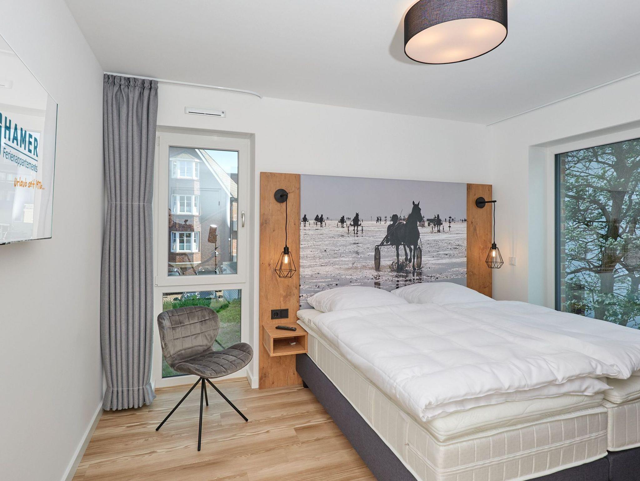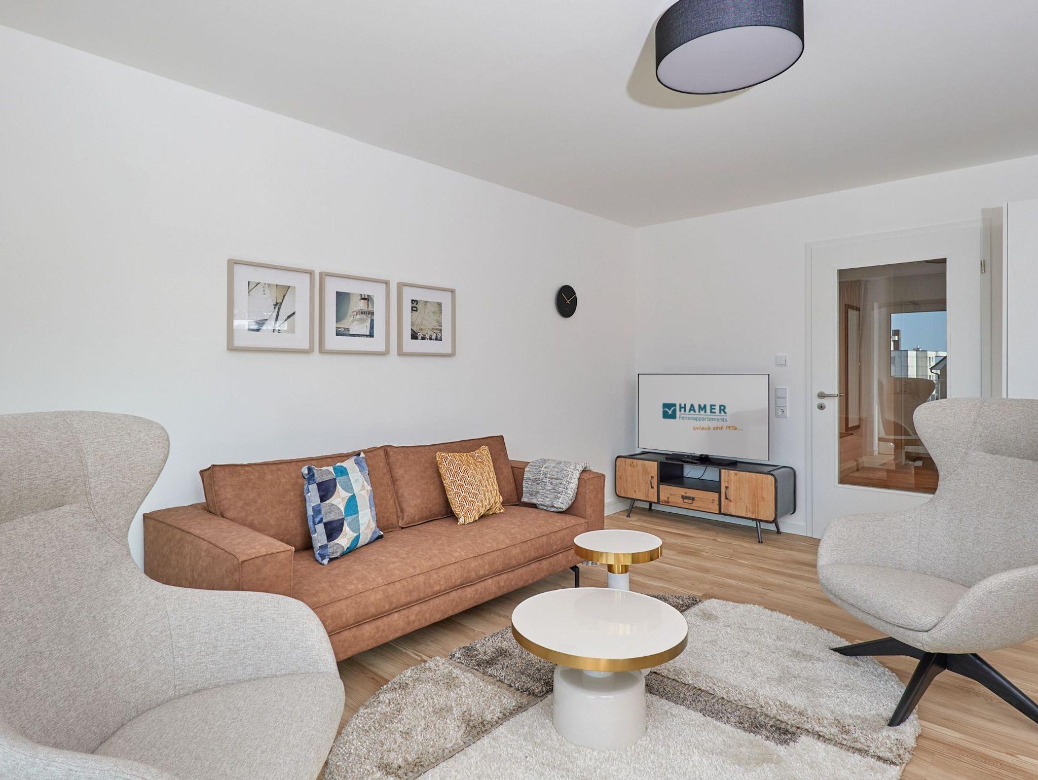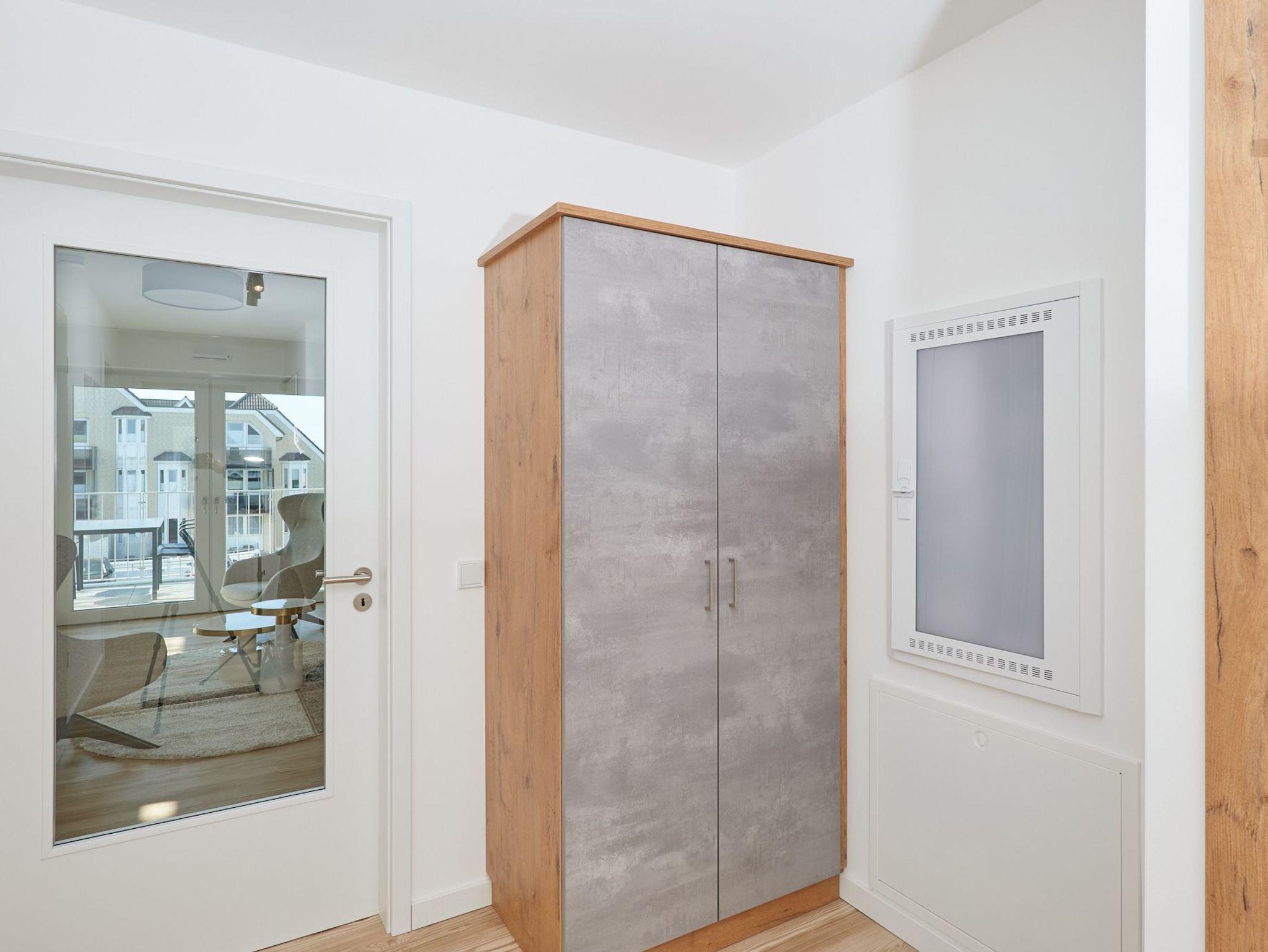 Neubau Mai 2023! Sehr schöne, moderne 3-Raum-Wohnung bis 4 Pers. voll ausgestattet auf ca. 67 m² in der 2.Etage gelegen, 2 Schlafzimmer (1x Doppelbett, 1x 2 Einzelbetten) und Außenjalousien an allen Fenstern, ebenerdige Dusche/WC, Wohnzimmer mit großer Küchenzeile (Backofen, Geschirrspüler, Mikrowelle), 2x Kabel-TV, Radio, kostenfreies W-LAN-Internet, großer Balkon (nord/west), Personenaufzug, die Wohnung ist barrierefrei erreichbar, reservierter Pkw-Stellplatz in der Tiefgarage inkl., es sind keine Haustiere erlaubt und natürlich Nichtraucher. Durchfahrtshöhe Tiefgarage: 2,05m.