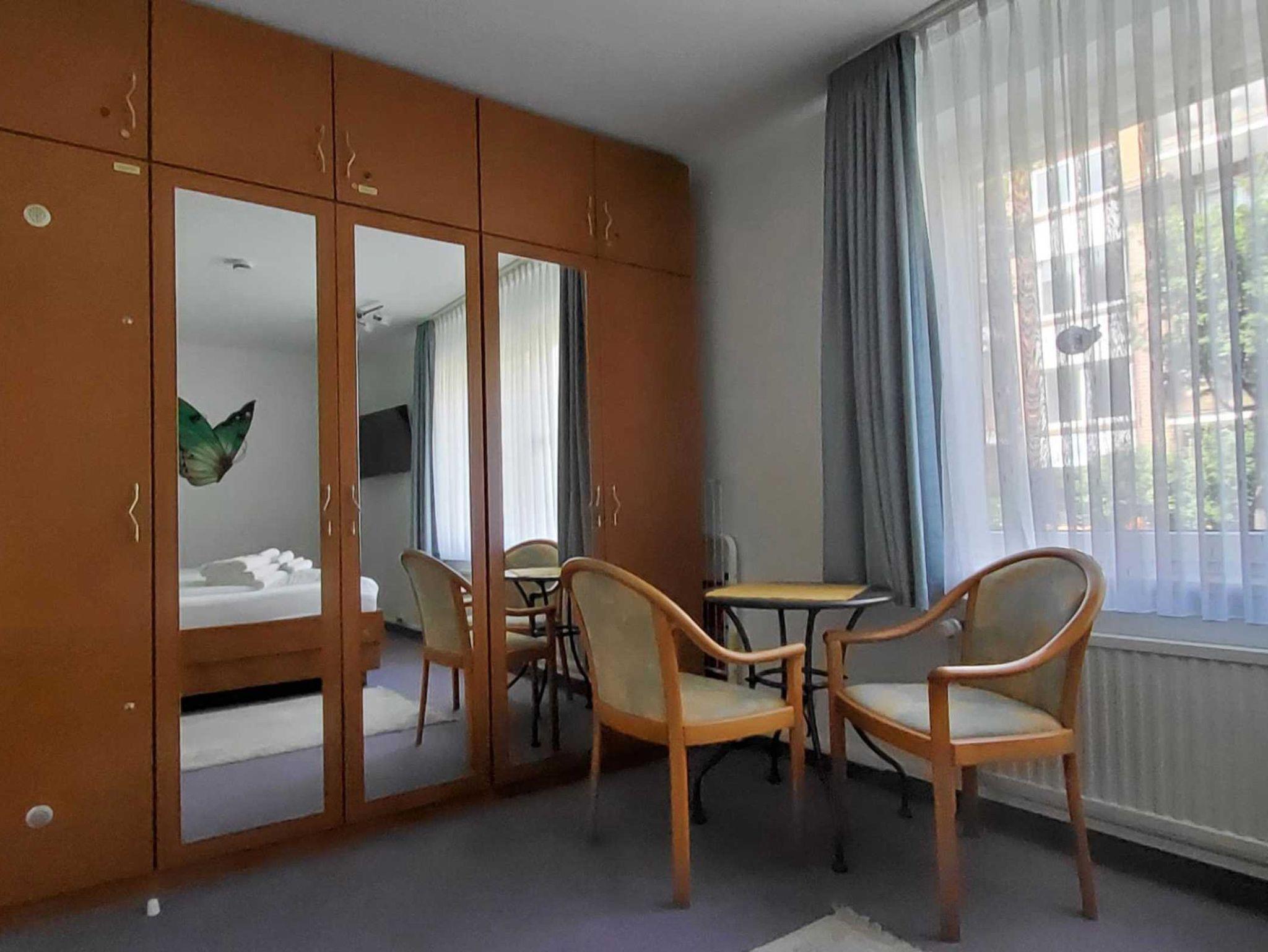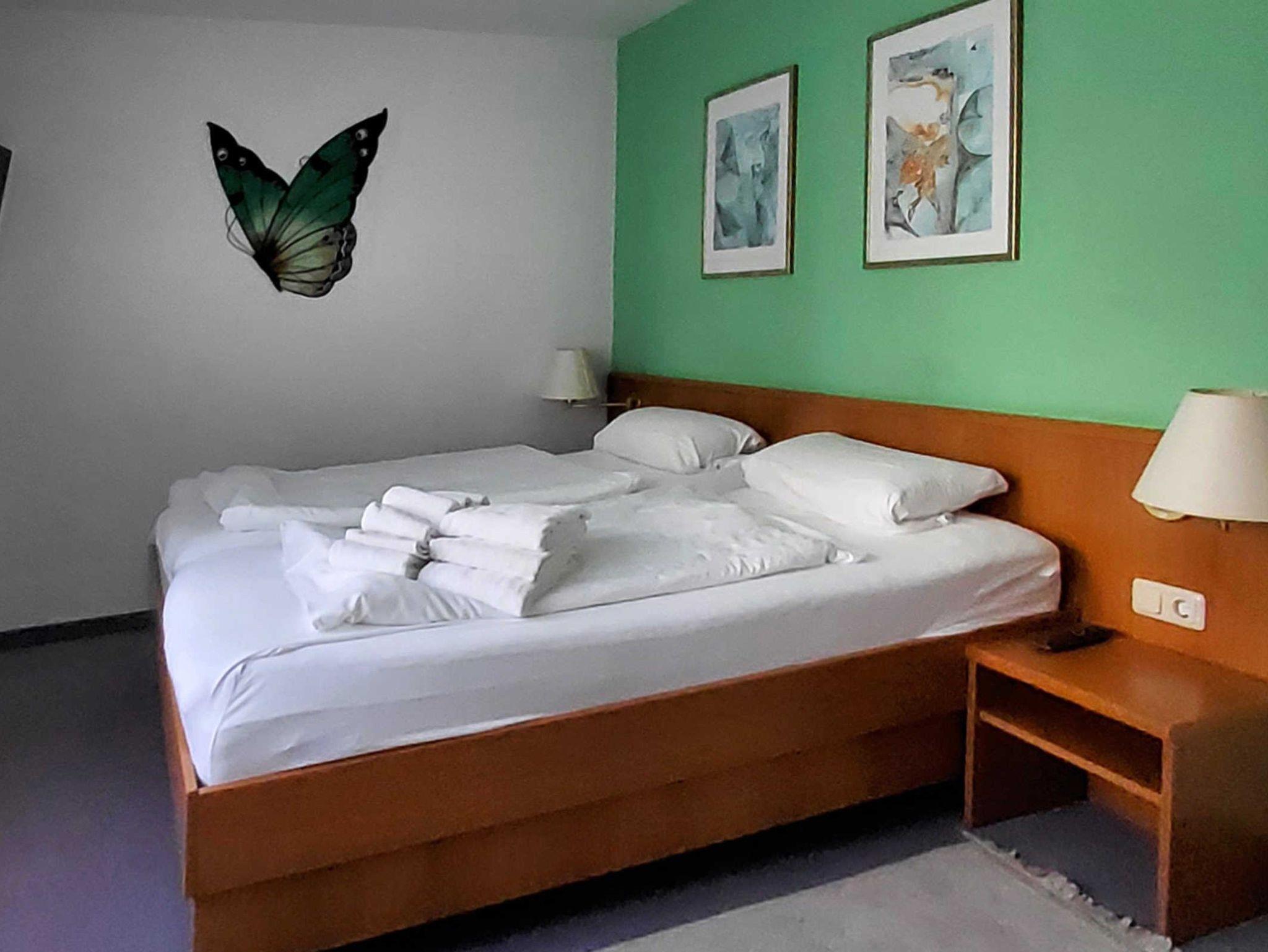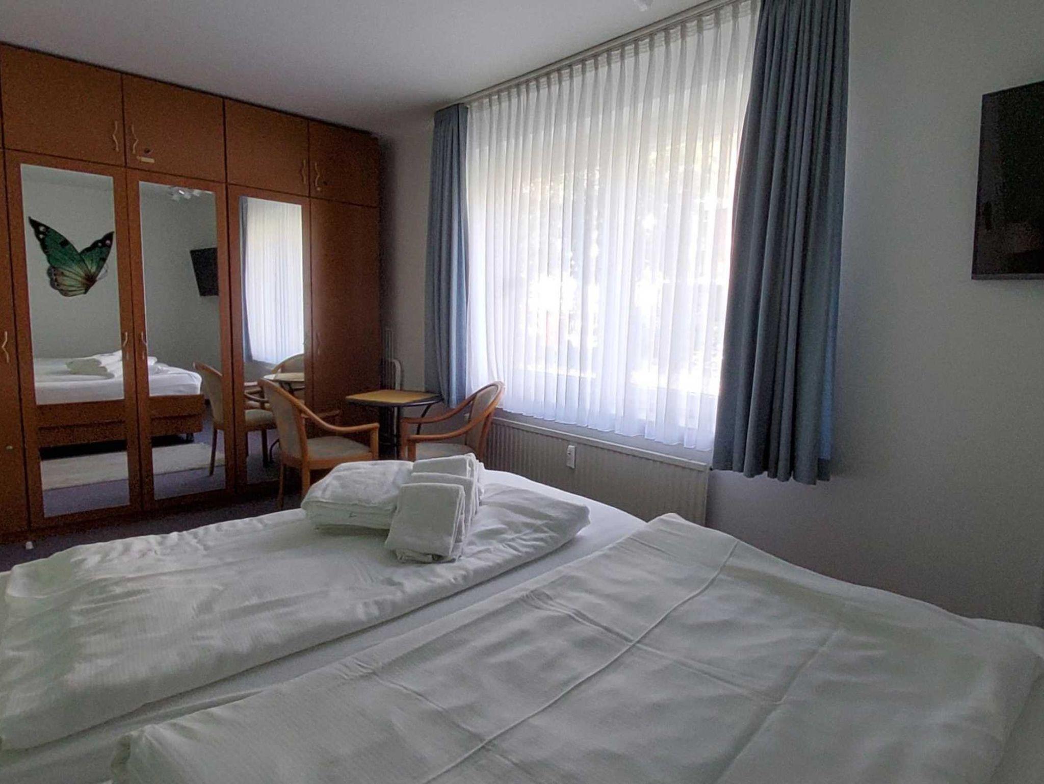 Schlafzimmer: Komfortables Doppelbett mit erhöhter Liegefläche und Topper für einen erholsamen Schlaf, verstellbaren Lattenrosten, großer Kleiderschrank mit Ganzkörperspiegel, verstellbaren zweiter 42(108 cm) LED-TV mit Internetfunktion, kleiner Sitzgruppe, kostenloser Tresor, Fenster mit Verdunklungsrollo, abschließbare Fenstergriffe, Radiowecker.