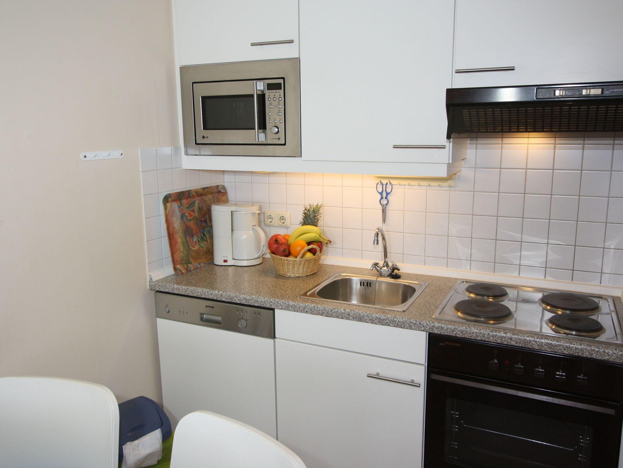 Sie wohnen in einem 2-Raum-Appartement auf ca. 42 m² Wohnfläche im 3. OG mit eingeschränktem Seeblick. Ein Schlafraum mit zwei getrennten Betten, ein Wohn-/Schlafraum mit einem durch Raumteiler abgetrennten Doppelbett, separater Essplatz, voll ausgestatteter Küchenbereich mit Geschirrspüler und Mikrowelle, SAT-Flachbild-TV und Telefon und Dusche/WC.