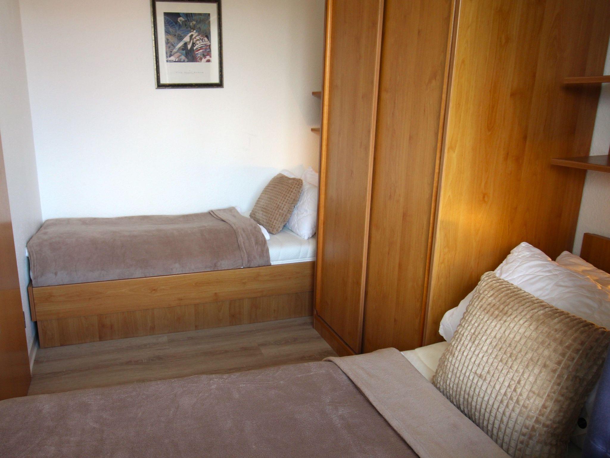 Die Wohnung verfügt über einen Wohn-/Schlafraum mit einem durch Raumteiler abgetrennten Doppelbett und ein Schlafzimmer mit zwei getrennten Betten sowie einen separaten Essplatz, voll ausgestatteter Küchenbereich mit Geschirrspüler, Dusche/WC, Balkon, Flachbild-TV.