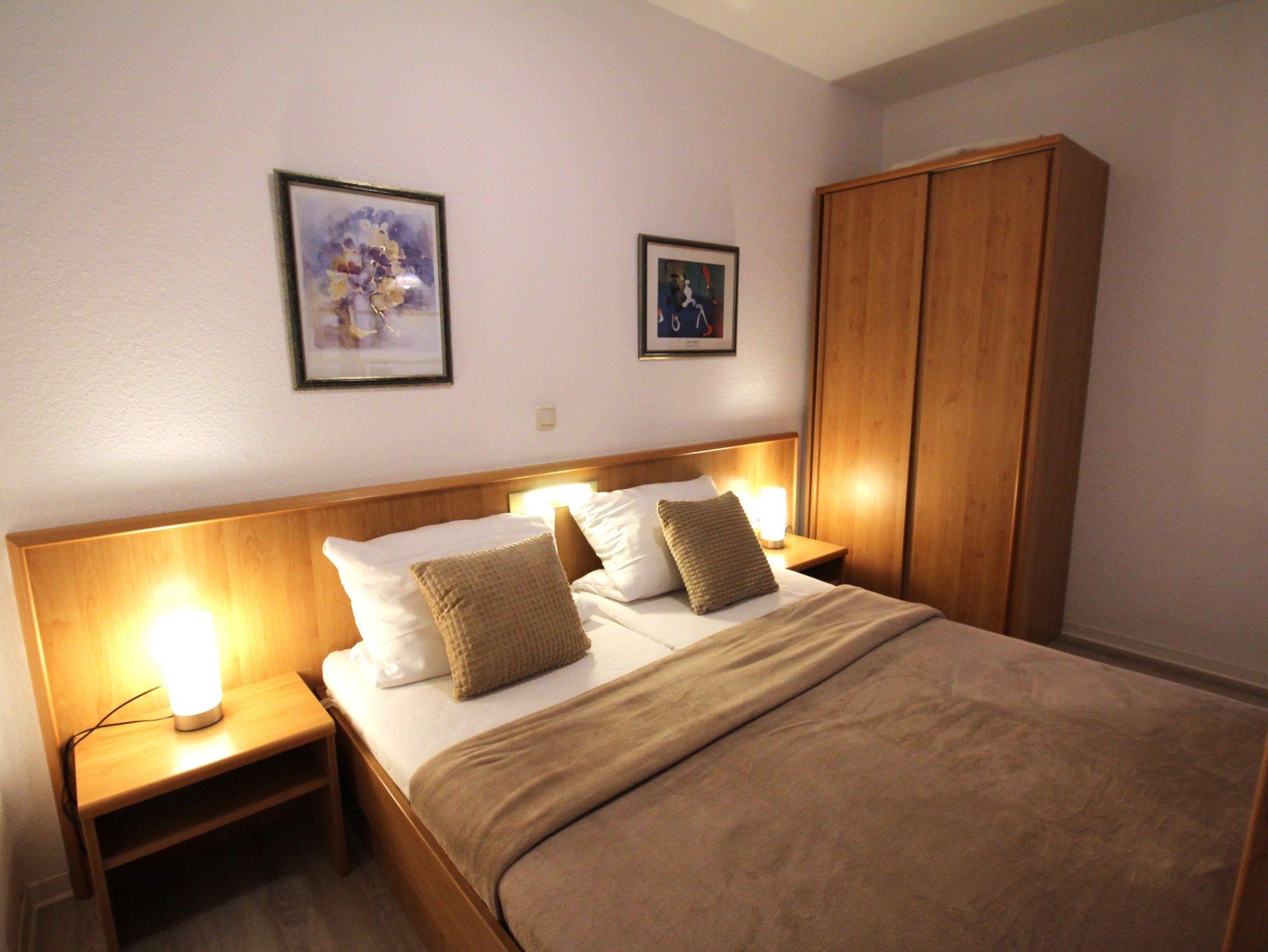 2-Zimmer-Appartement für bis zu 4 Personen auf ca.42 m². Schlafzimmer mit Doppelbett oder zwei Einzelbetten, Wohn-Schlafraum mit Doppelbettcouch, TV, separatem Essplatz, voll ausgestattetem Küchenbereich, Balkon oder Terrasse, Bad mit Dusche/WC. teilweise WLAN und PKW-Stellplatz vorhanden.