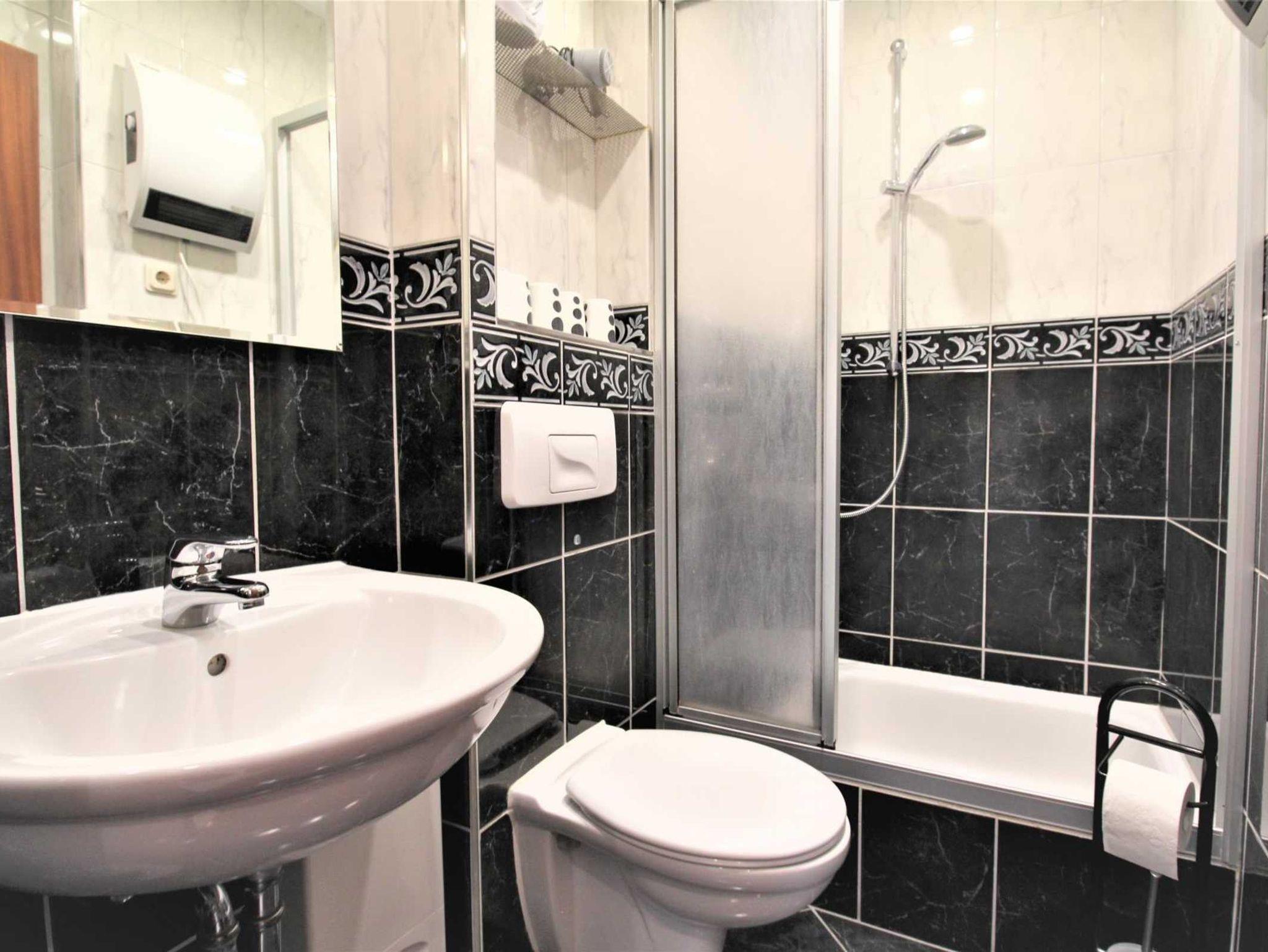 Das exklusive Badezimmer verfügt über Dusche und WC.