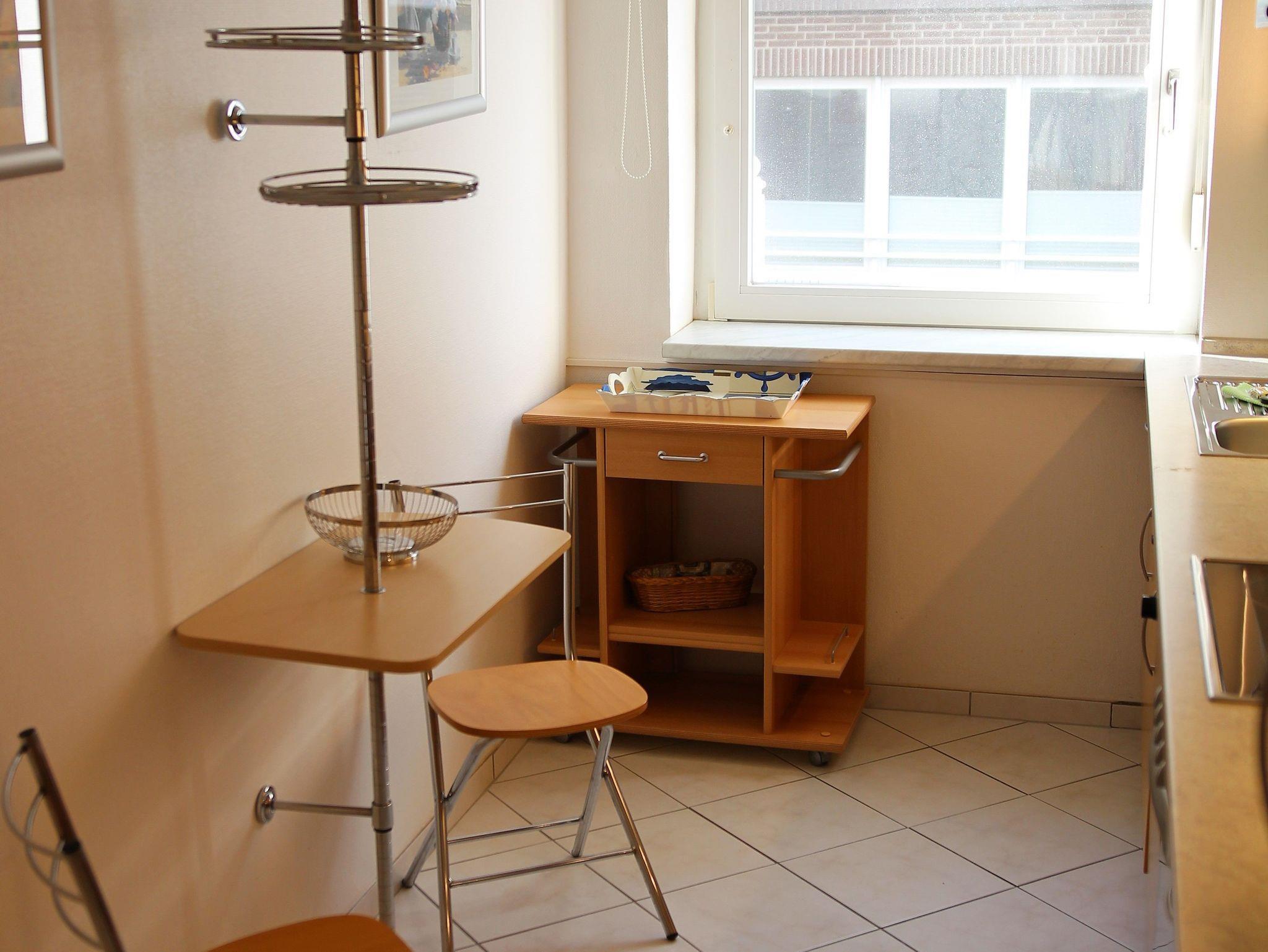 Die 3 Raum Ferienwohnung mit einer Größe von ca. 75 m² Wohnfläche ist komplett bis zu 4 Personen ausgestattet. 1 Schlafzimmer mit einem Doppelbett, Wohnzimmer mit Zugang zum Balkon (vom Wohnzimmer und Balkon aus können Sie teilweise/eingeschränkt auf die Nordsee blicken), Sofa (das auch als Schlafsofa genutzt werden kann), Esstisch, 1 Flatscreen TV, Einbauküche (Backofen, 4 Plattenherd, Wasserkocher, Toaster, Kaffeemaschine), 1xDusche mit WC, Waschmaschine und Trockner (jeweils kostenpflichtig mit Münzautomat), Nichtraucherwohnung, keine Haustiere, PKW Stellplatz direkt am Haus.