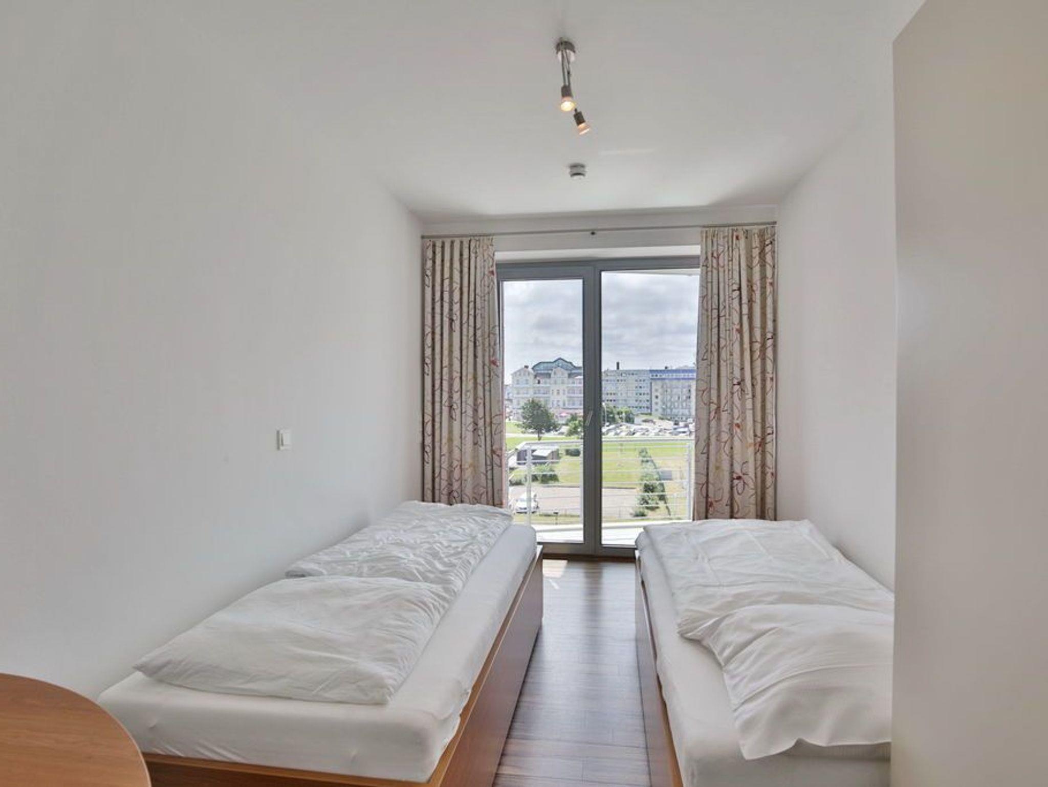 102m² Wohnung in der 3.Etage. Hier haben Sie die Traumseesicht auf den Weltschifffahrtsweg und Yachthafen. 1 Schlafzimmer mit Doppelbett, 1 Schlafzimmer mit 2 Einzelbetten, beide Schlafzimmer mit Rollladen, 1 Bad/Du/Wc und 1 Gäste-Wc, großes Wohnzimmer mit komplett ausgestatteter Küchenzeile, 2 große Balkone (nord+süd). Zur Wohnung gehört ein reservierter Pkw-Stellplatz am Haus. Nichtraucher, keine Haustiere erlaubt. Fahrräder können auch bequem und sicher im ebenerdigen Fahrradraum des Nachbargebäudes abstellt werden (separater Schlüssel).