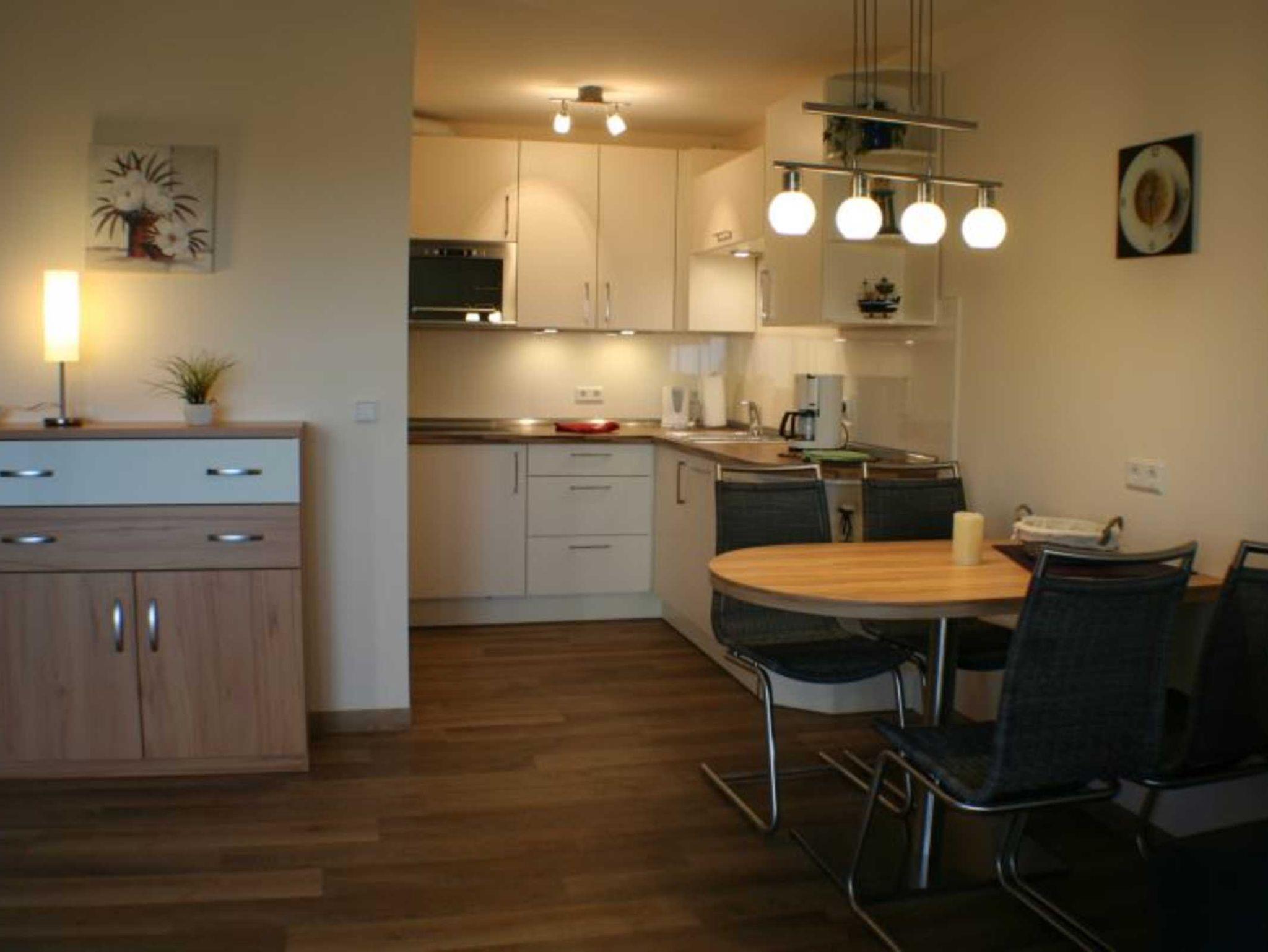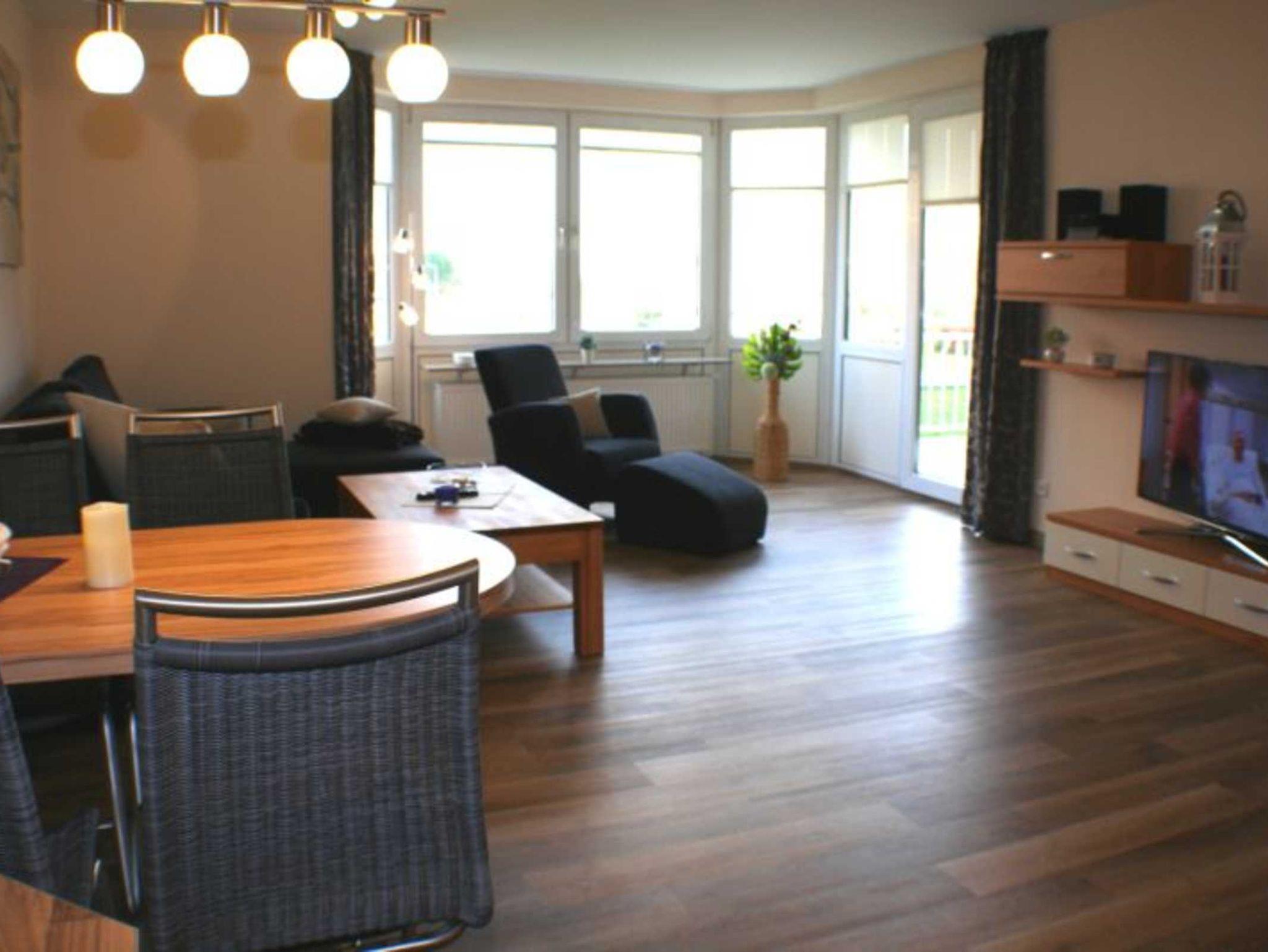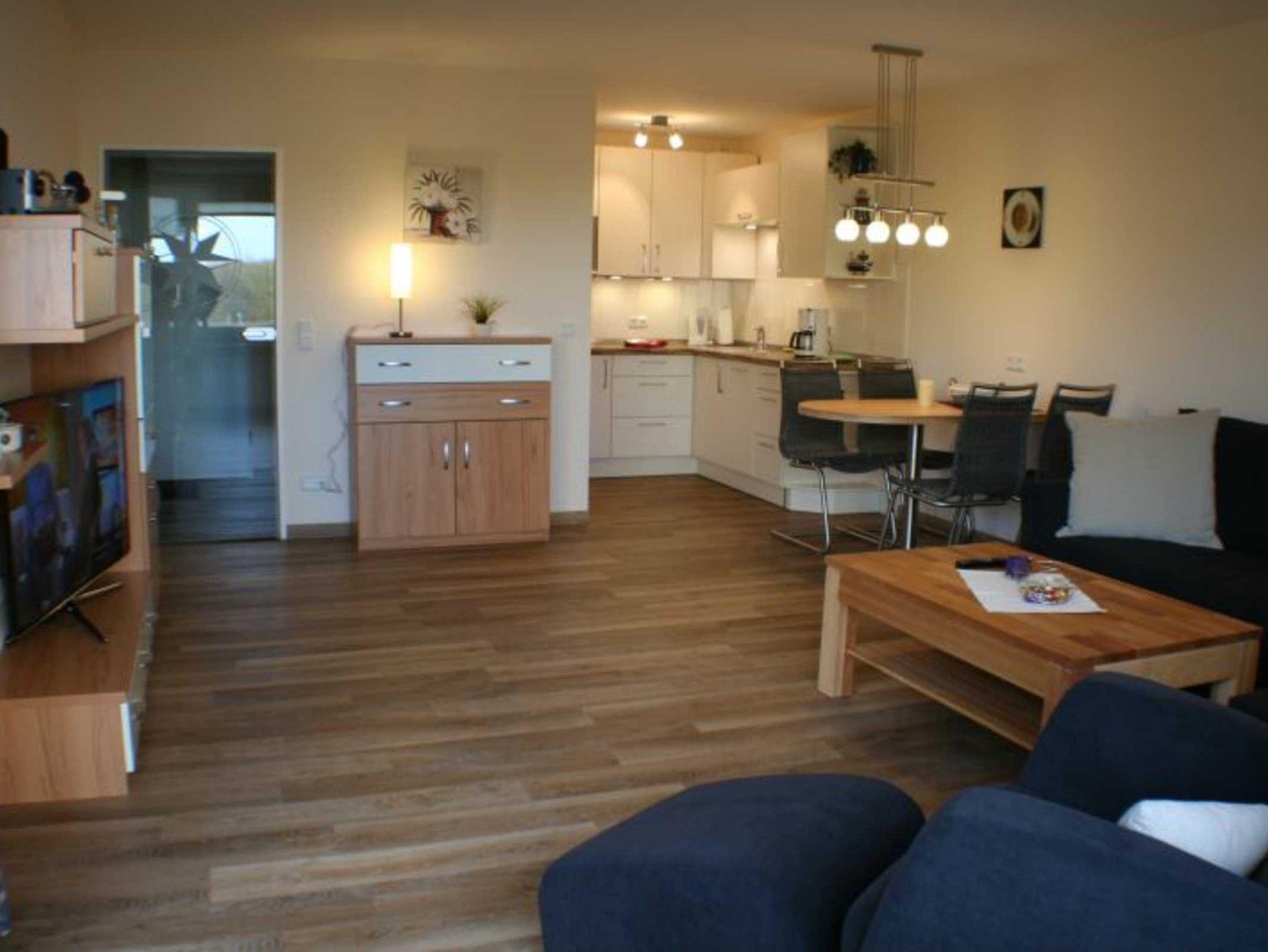 Sie wohnen in einem hochwertig eingerichteten 2-Zimmer-Appartement für bis zu 4 Personen auf ca. 60 m² im 1. Obergeschoss. Die Ferienwohnung verfügt über ein Schlafzimmer mit Doppelbett, ein Wohn-/Schlafraum mit Doppelbettcouch, einen separaten Essplatz und einen voll ausgestatteten Küchenbereich mit Geschirrspüler, Mikrowelle und Senseo Kaffeepadmaschine. Außerdem über Dusche/WC, Balkon, Kabel-LCD-TV, Blu-ray-Player, WLAN und Safe.