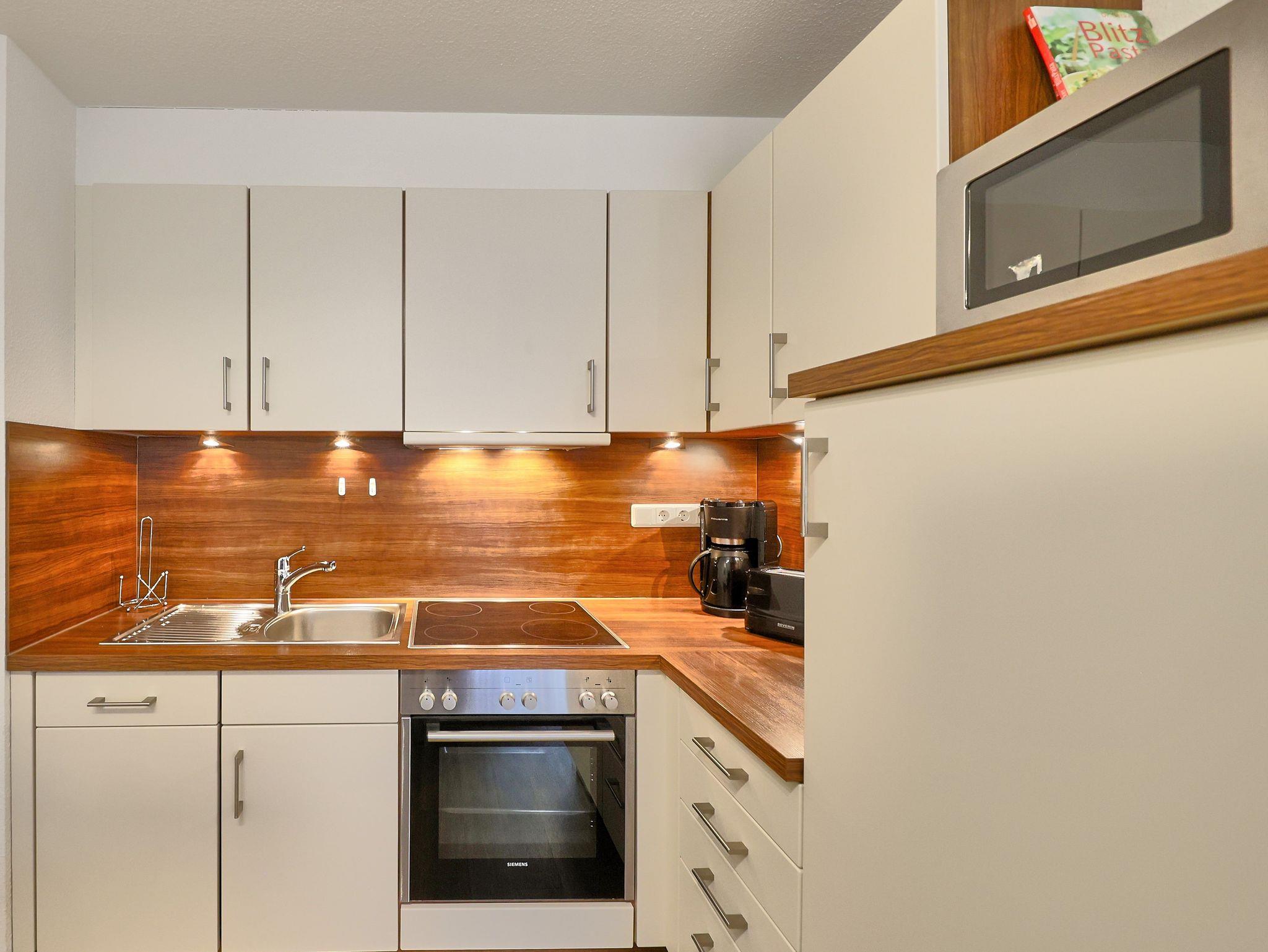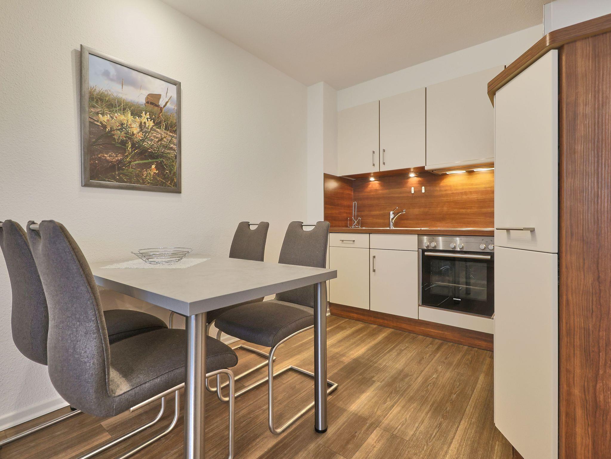 Herzlich willkommen in dieser sehr gemütlichen 3-Raum Maisonette Ferienwohnung über 2 Etagen, die Ihre Erwartungen übertreffen wird. Die sehr gute Ausstattung präsentiert sich mit einem ansprechenden Wohn- und Essbereich, einer vollständig eingerichteten Küchenzeile inklusive hochwertiger Siemens-Einbaugeräte und direktem Zugang zum großzügigen Südwest-Balkon. Dieser ist mit erstklassigen Kettler Balkonmöbeln ausgestattet, und als Sonnenschutz erwartet Sie eine elektrische Sonnenschutzmarkise. Der Balkon ist auch vom Schlafzimmer aus zugänglich, welches mit einem Doppelbett und einem großzügigen Kleiderschrank eingerichtet ist.