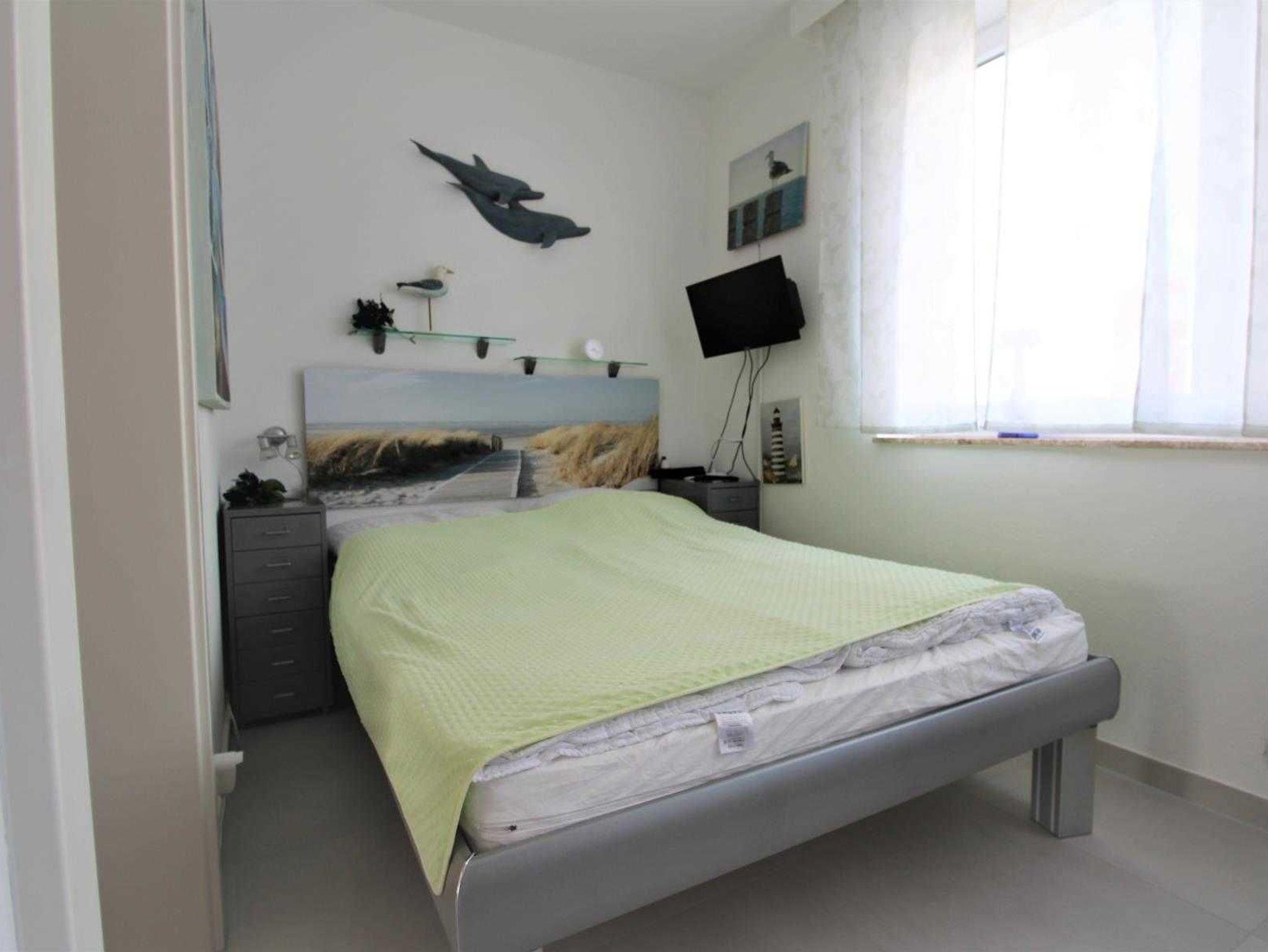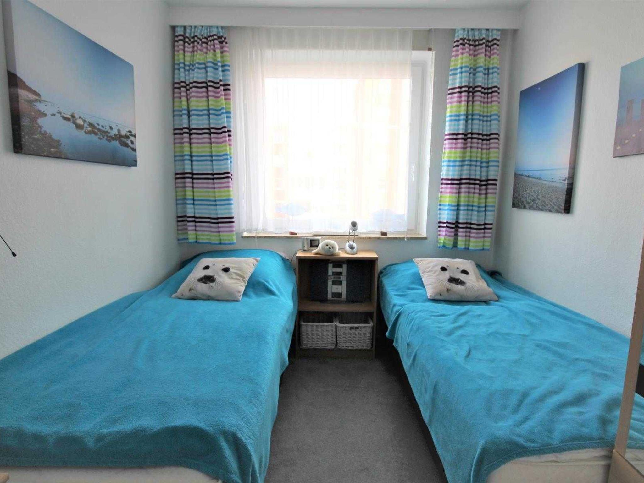 Ihr Feriendomizil ist ein gemütliches 3-Zimmer-Appartement im 1. Obergeschoss mit rund 60 m² Wohnfläche und Platz für bis zu 5 Personen. Es verfügt über ein Schlafzimmer mit Doppelbett (140 cm breit), das durch eine Schiebetür vom Wohnraum getrennt ist, sowie ein weiteres Schlafzimmer mit getrennten Betten und eigenem TV-Gerät samt DVD-Player. Der helle Wohn- und Schlafbereich ist mit einer bequemen Schlafcouch ausgestattet und bietet zudem einen separaten Essplatz.