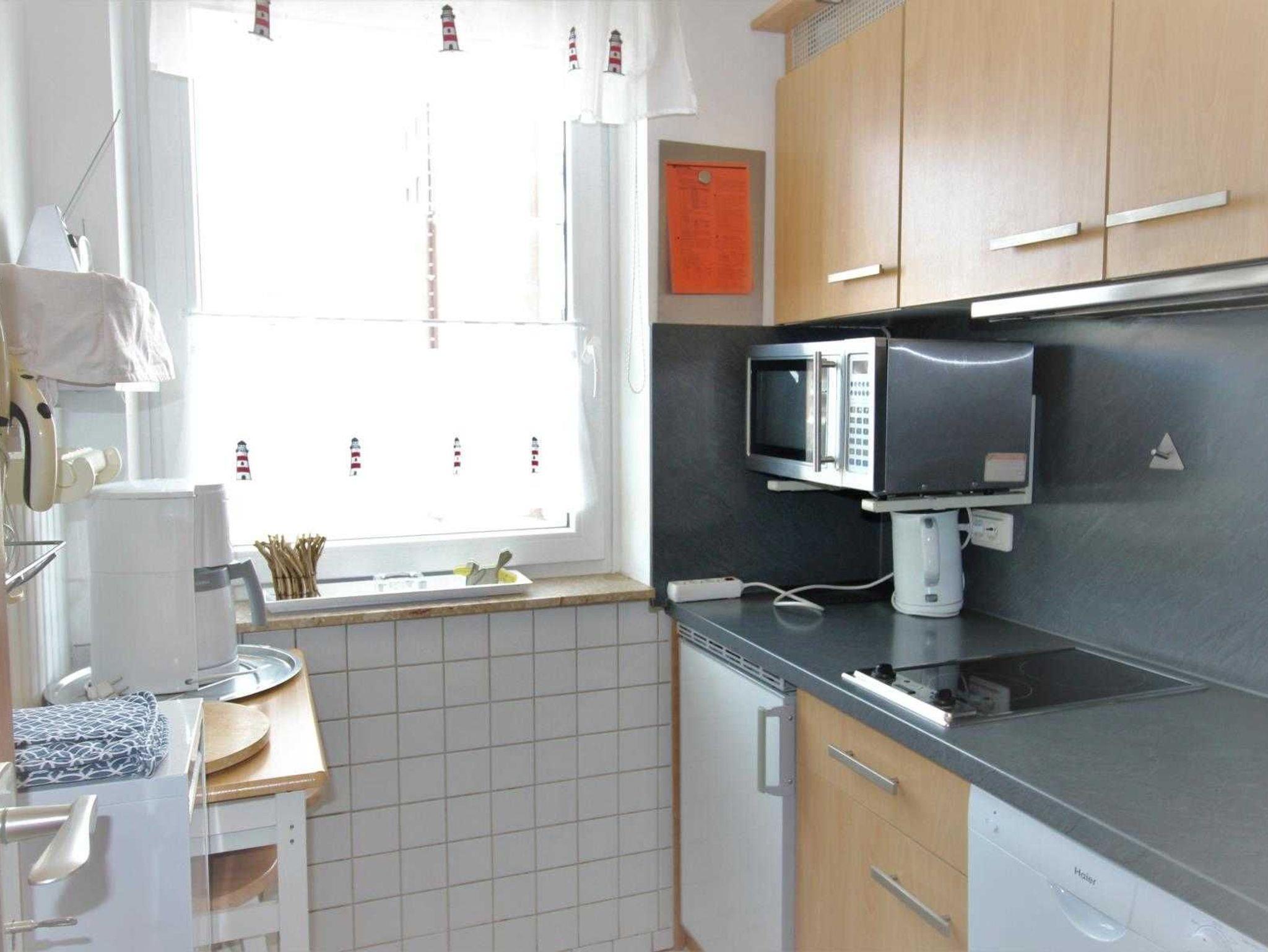 Die moderne, separate Küche ist voll ausgestattet und verfügt über eine Kombimikrowelle (Grill/Heißluft) sowie einen Geschirrspüler. Das Badezimmer ist mit Dusche und WC eingerichtet. Zur weiteren Ausstattung gehören Kabel-TV, eine Mini-HiFi-Anlage mit DVD-Player sowie kostenfreies WLAN.