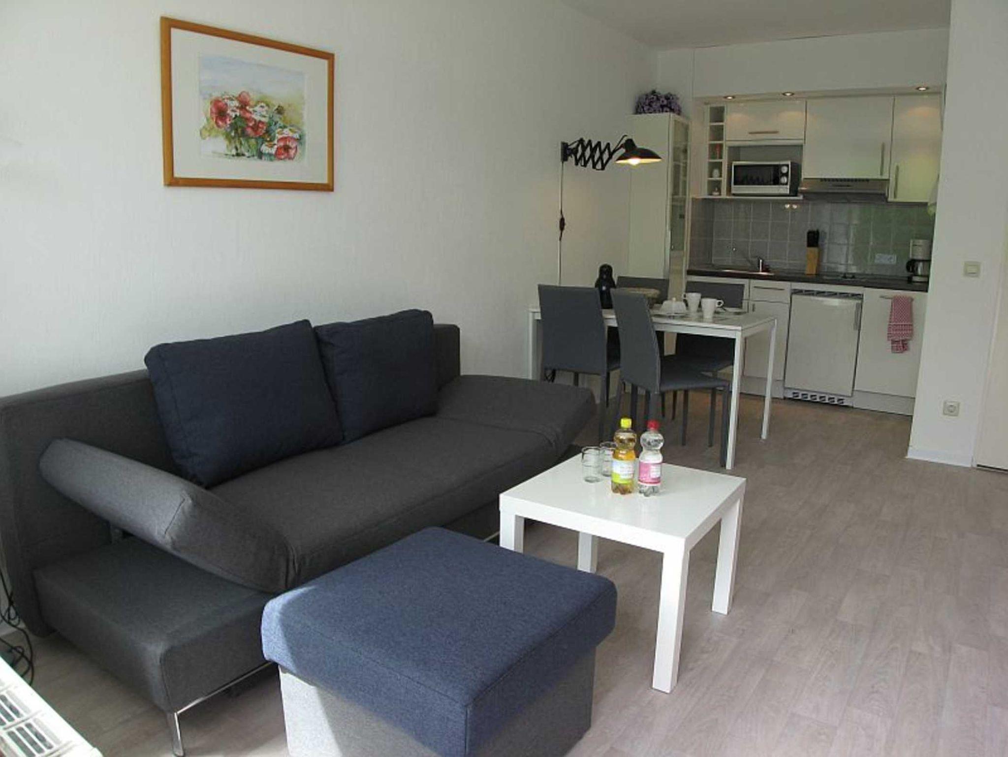 Moderne 2-Zimmer-Ferienwohnung in Cuxhaven, nur 100 m vom Strand entfernt, mit voll ausgestatteter Küche und Fahrradgarage.