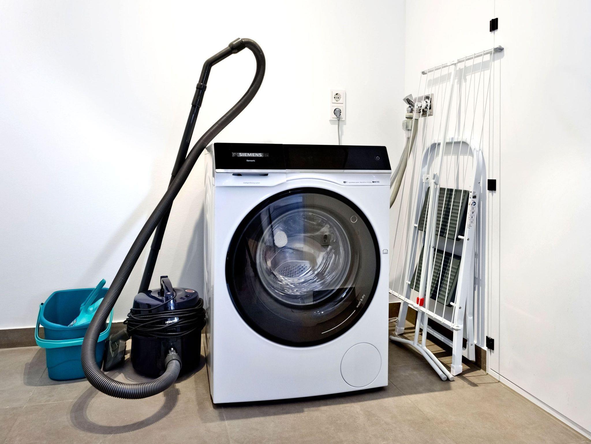 Hauswirtschaftsraum in der Wohnung mit eigener Waschmaschine, Bügeleisen/Bügelbrett.