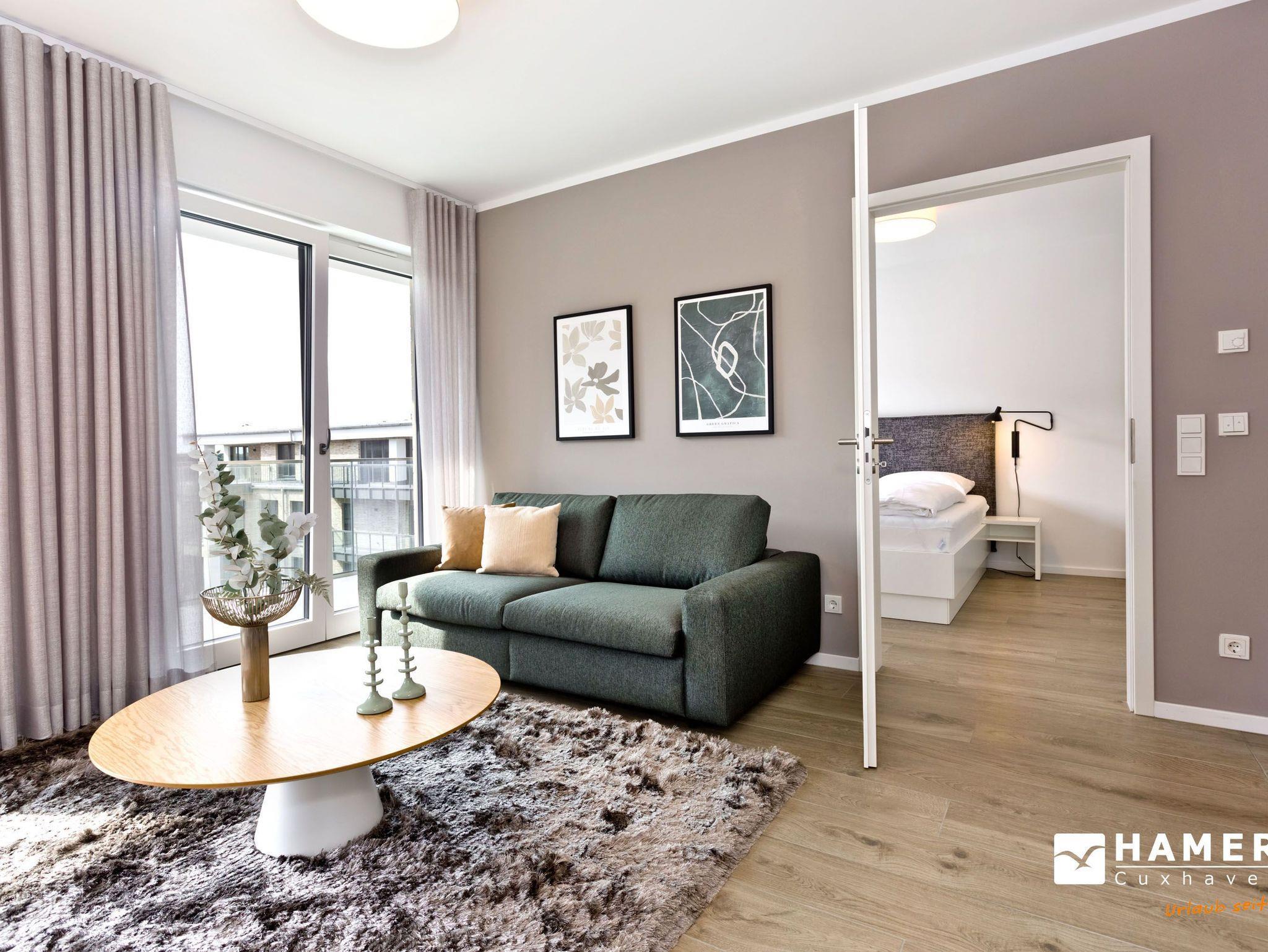 Moderne 2-Zimmer-Ferienwohnung mit Südbalkon nahe Strand in Cuxhaven Duhner Spitze.
