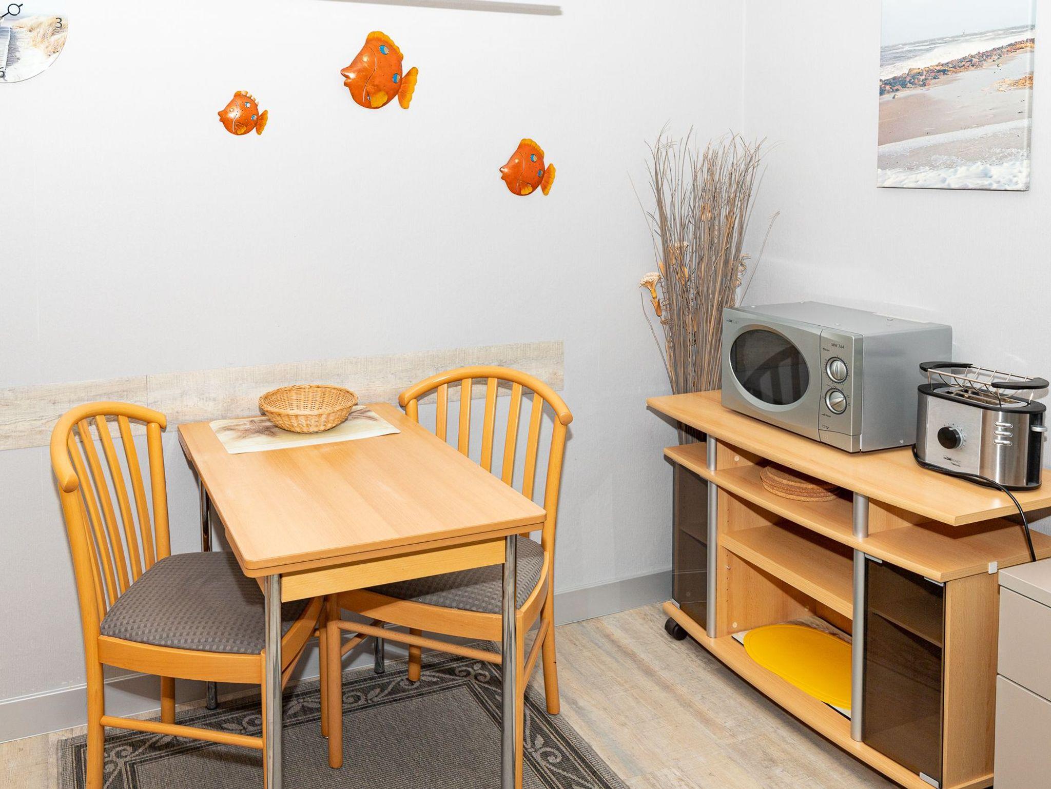 Sonneck. Wohnung 3, 1.OG links, 2-Raum, ein sehr ruhig gelegenes und modernes Wohlfühlappartement, allergikerfreundliche Ferienwohnung im Haus Sonneck, am Sahlenburger Weg. Diese Ferienwohnung ist mit einem Schlafzimmer, einem hellen Dusch-Bad mit WC und Fenster, einem gemütlichen Wohn- und Essbereich mit einer kleinen Küchenzeile, d. h. Kühlschrank, Spüle, 2 Kochplatten, Mikrowellengerät, Kaffeemaschine, Wasserkocher und Toaster ausgestattet. Des Weiteren ist im Flur eine Garderobe und ein Abstellschrank für Staubsauger usw. vorhanden. Ein sonniger Balkon, Richtung Süden, sowie mehrere Sitzmöglichkeiten im großen Garten lassen Sie am Nachmittag und in den Abendstunden z.B. am Grill entspannen.