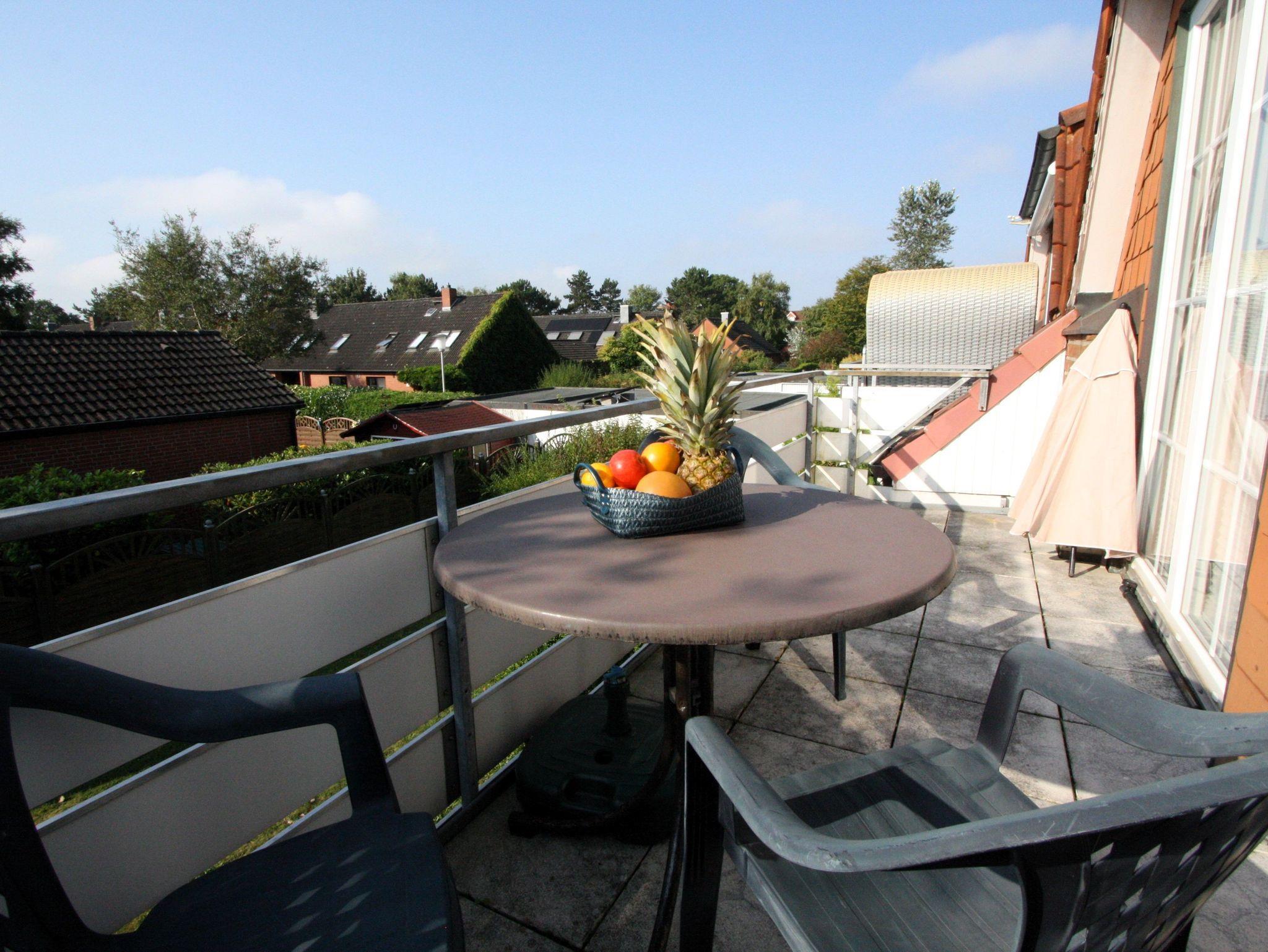 Unsere Wohnung Sünnschien liegt im Obergeschoss eines Friesenhauses mit nur vier Wohnungen. Ruhige Lage in einer Sackgasse, eigener KFZ-Stellplatz.