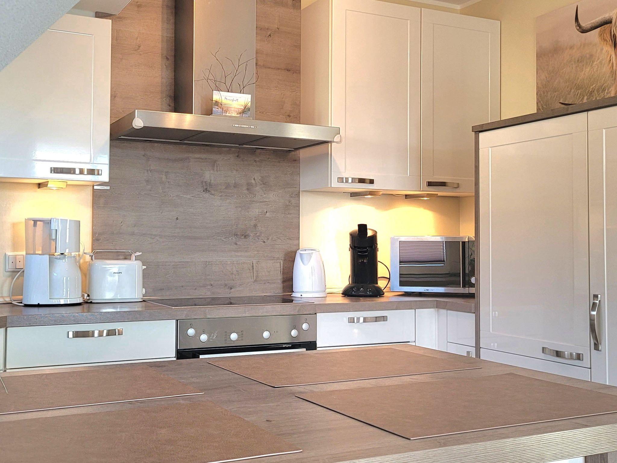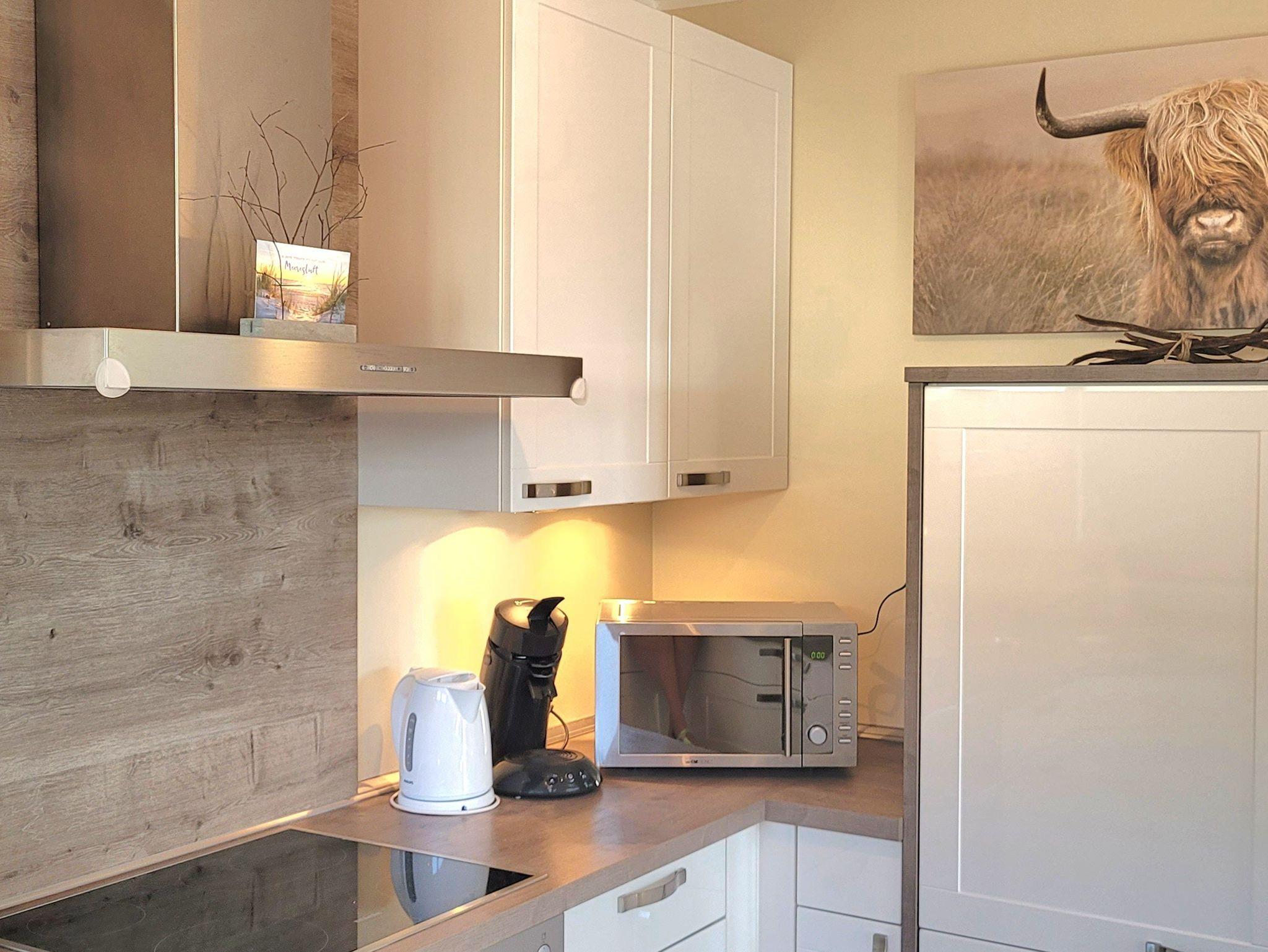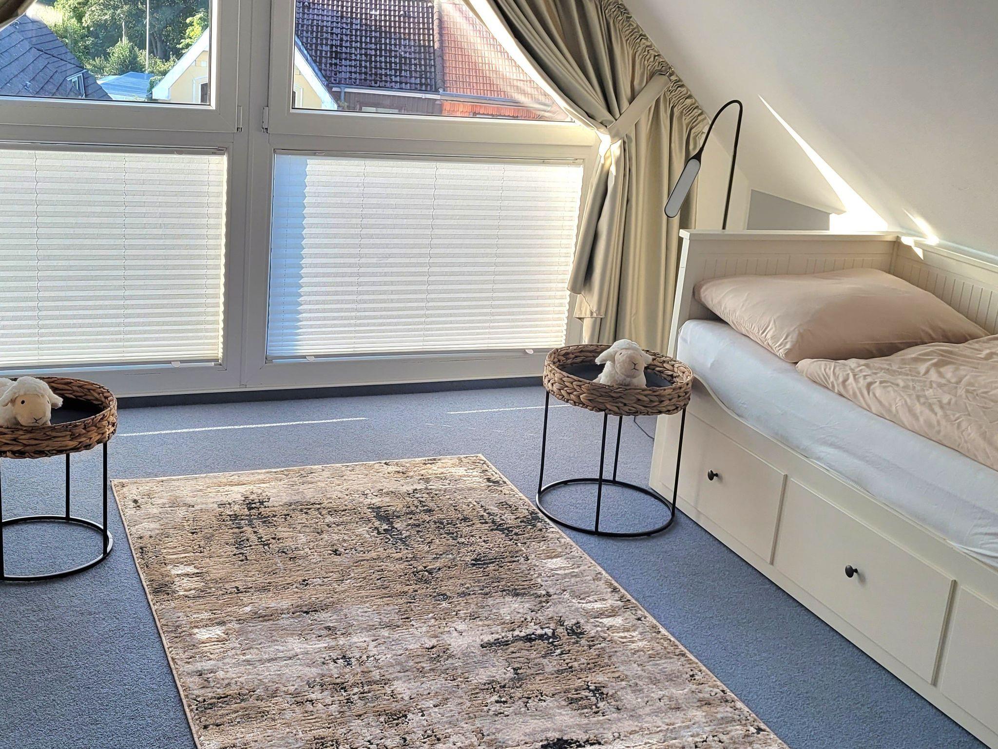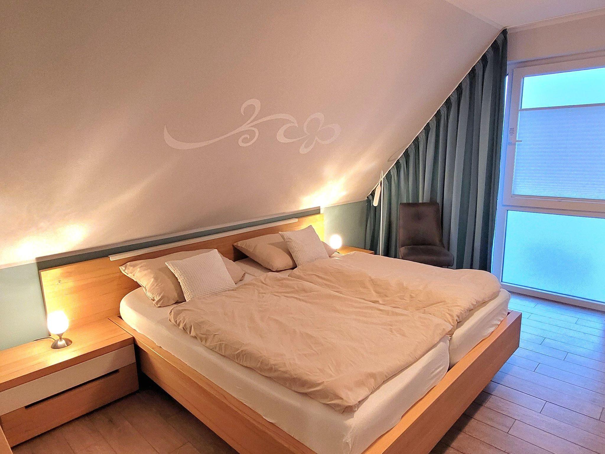 Die Ferienwohnung bietet zahlreiche Annehmlichkeiten wie verdunkelnde Vorhänge in den Schlafräumen, teilweise bodentiefe Fenster, hochwertige Möbel, allergikerfreundlichen Bodenbelag und vieles mehr, um Ihren Aufenthalt so angenehm wie möglich zu gestalten. Zur Unterhaltung stehen Ihnen ein HD-Fernseher und eine Hifi-Anlage zur Verfügung.