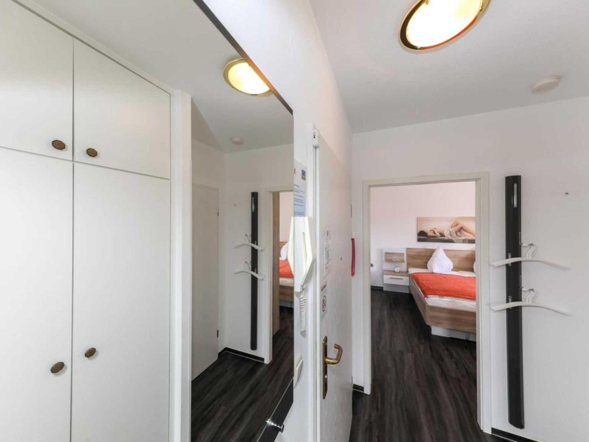 zusätzliches TV-Gerät und großem Gaderobenschrank.