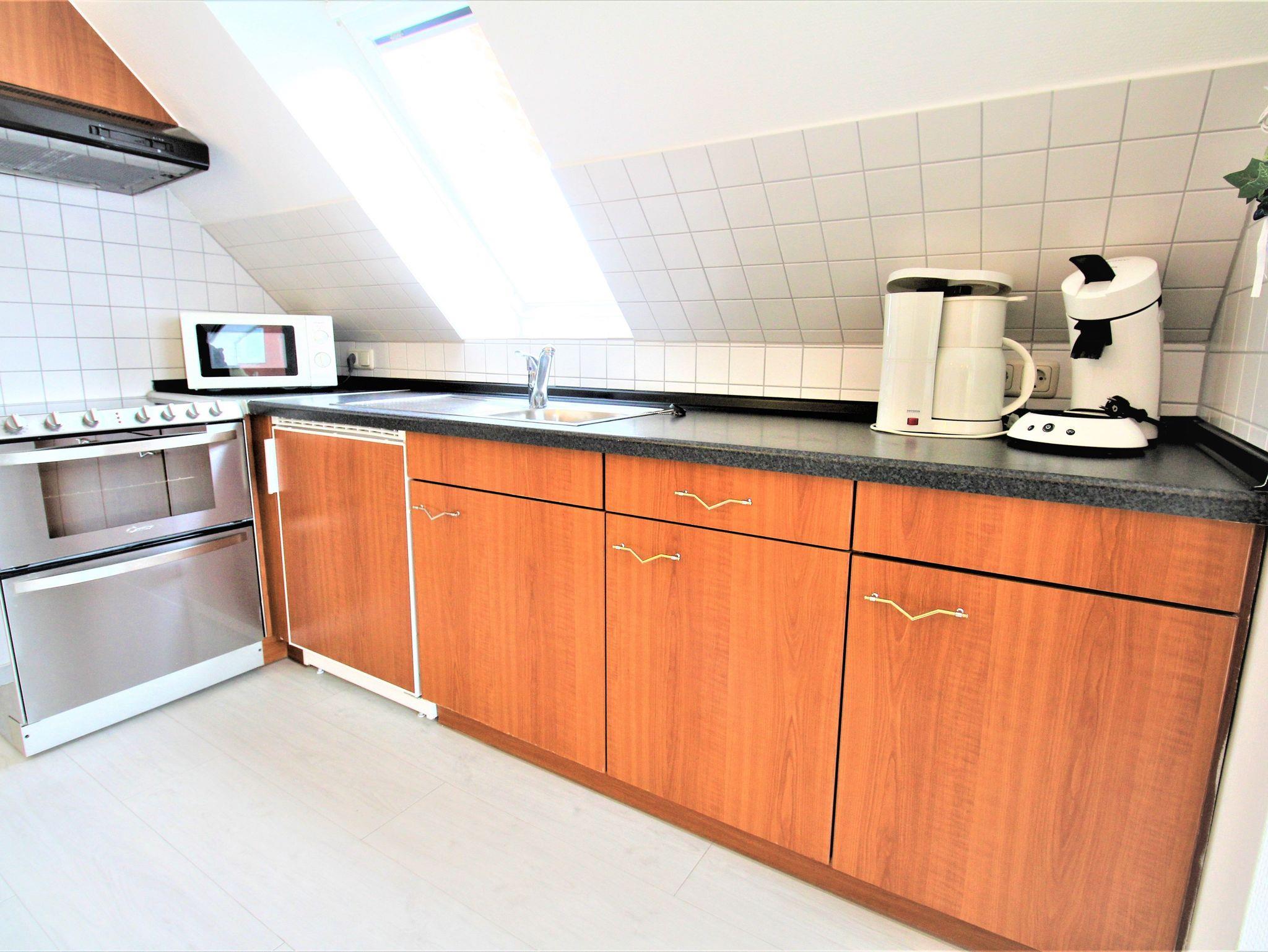 - Voll ausgestatteter Küchenbereich mit Spülmaschine, Backofen, Microwelle, Kaffeemaschine, Padmaschine