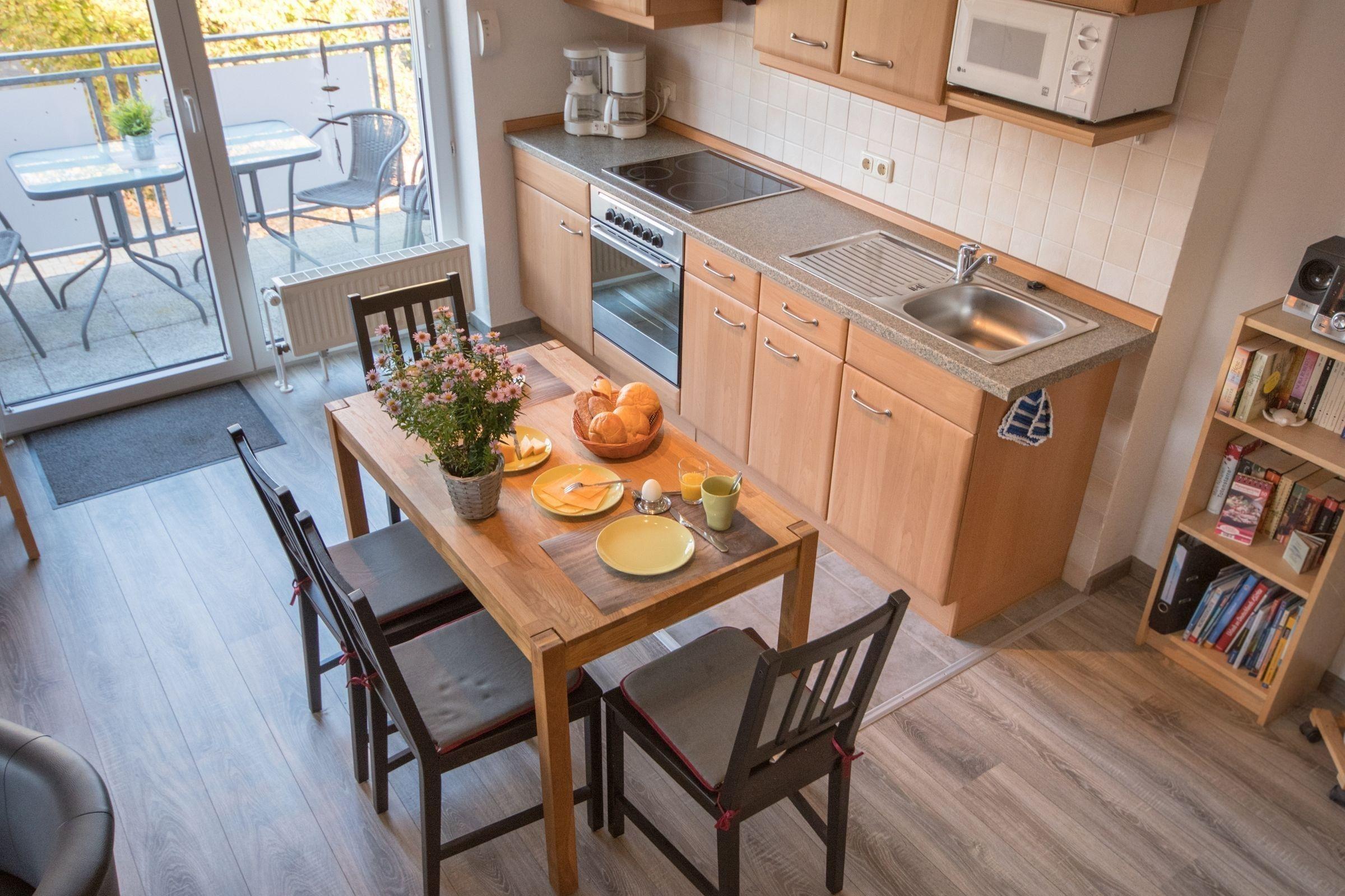 Helle Ferienwohnung Möwe 4 in Cuxhaven Sahlenburg nahe Strand mit Balkon und Freizeitmöglichkeiten für Familien und Freunde.
