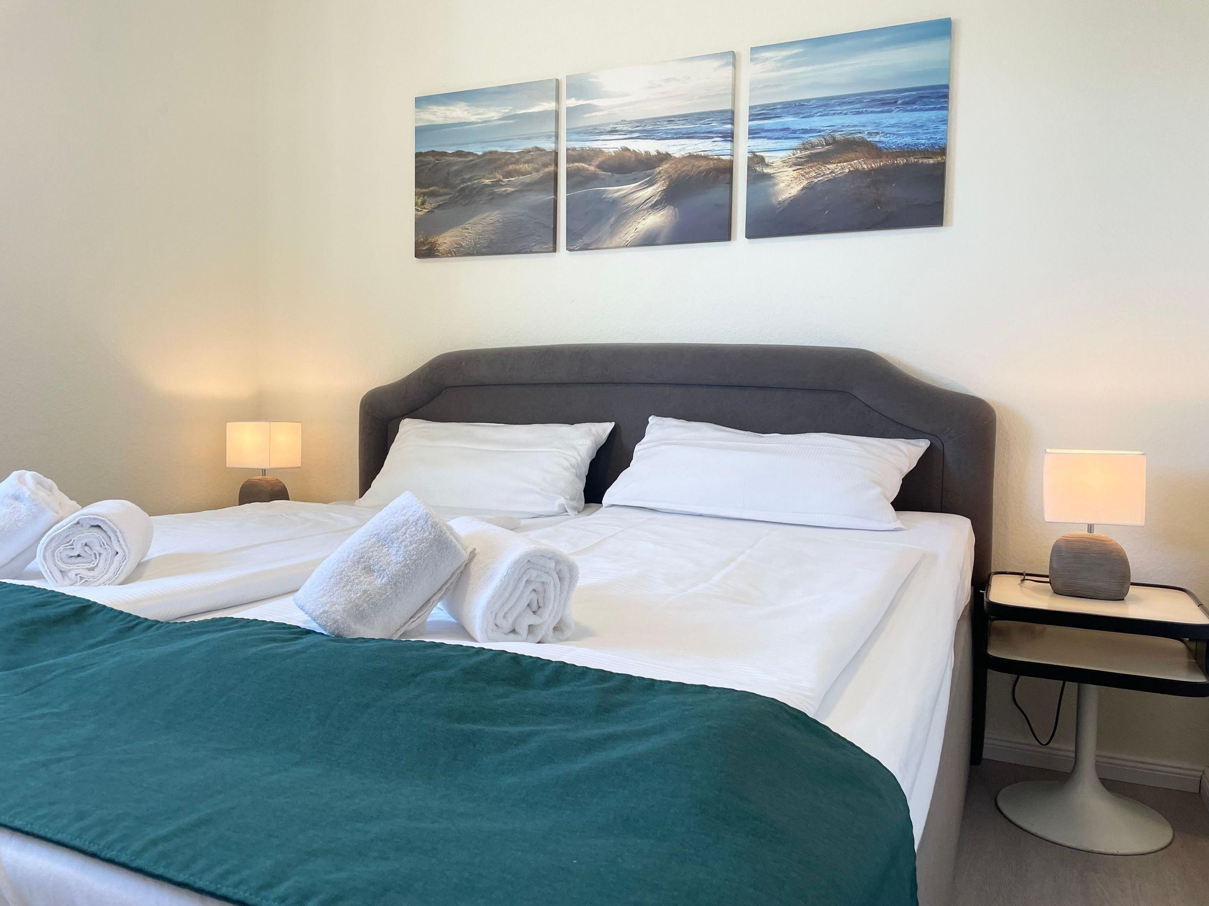 Das Strandhochhaus Sahlenburg FeWo J12 bietet eine großzügige Wohnfläche von 65 m² und ist ideal für bis zu vier Personen. Die Wohnung verfügt über zwei Schlafzimmer, eines mit einem Doppelbett und das andere mit einem Etagenbett, die für entspannende Nächte sorgen. Ein modernes Badezimmer mit Dusche vervollständigt die durchdachte Raumaufteilung. Das Wohnzimmer mit einer gemütlichen Sofaecke lädt nach einem Tag am Strand zum Entspannen ein. Die offene Küche ist umfassend ausgestattet, einschließlich eines 2-Platten-Herdes, Backofens, Spülmaschine und Kühlschrank, und der Essbereich bietet einen Blick auf das Meer. Für erholsame Stunden stehen im Haus gemeinschaftliche Einrichtungen wie eine Sauna und ein beheizter Pool zur Verfügung. Die Unterkunft ist familienfreundlich und perfekt für unvergessliche Urlaubsmomente mit atemberaubendem Meerblick geeignet.