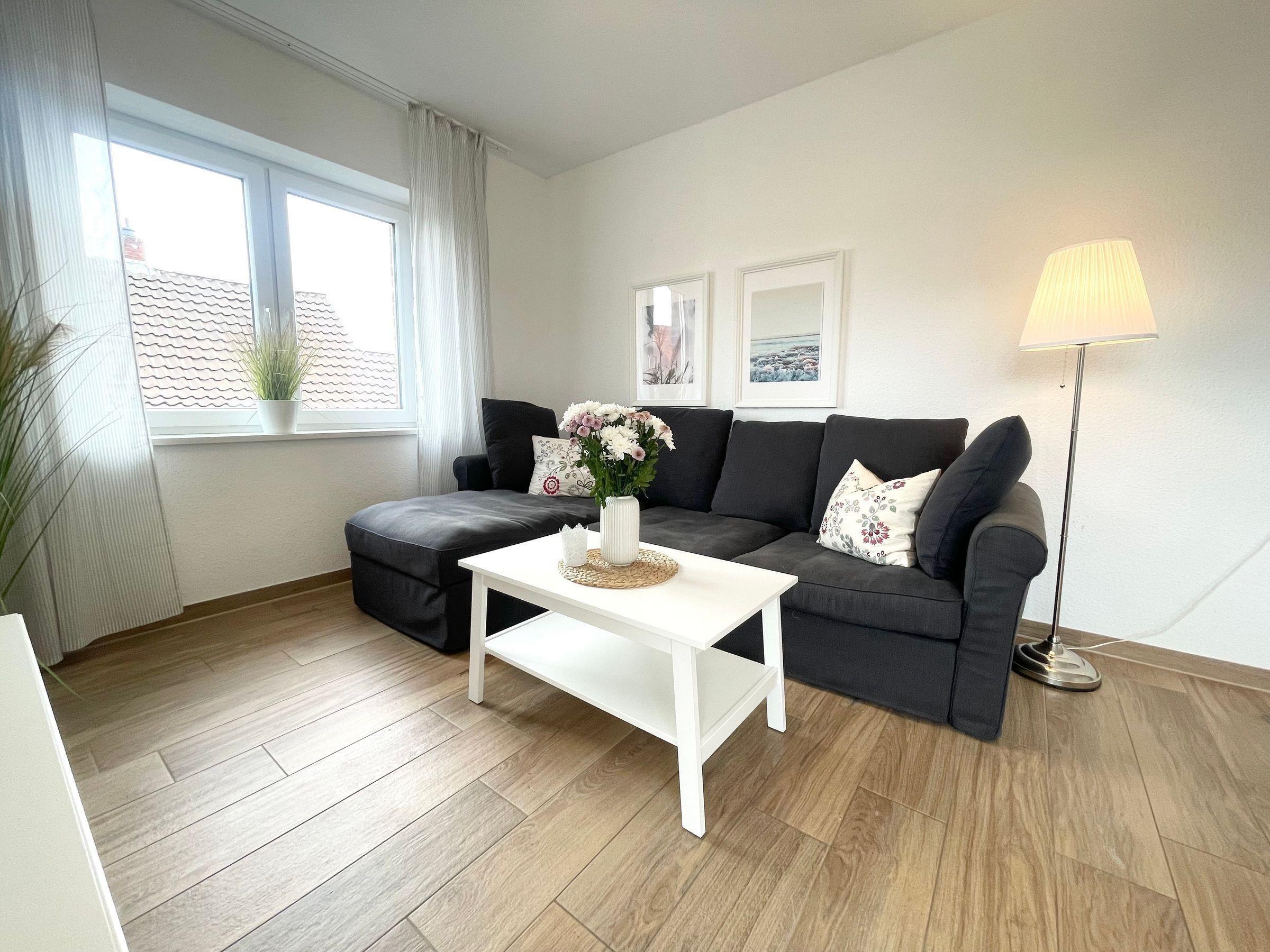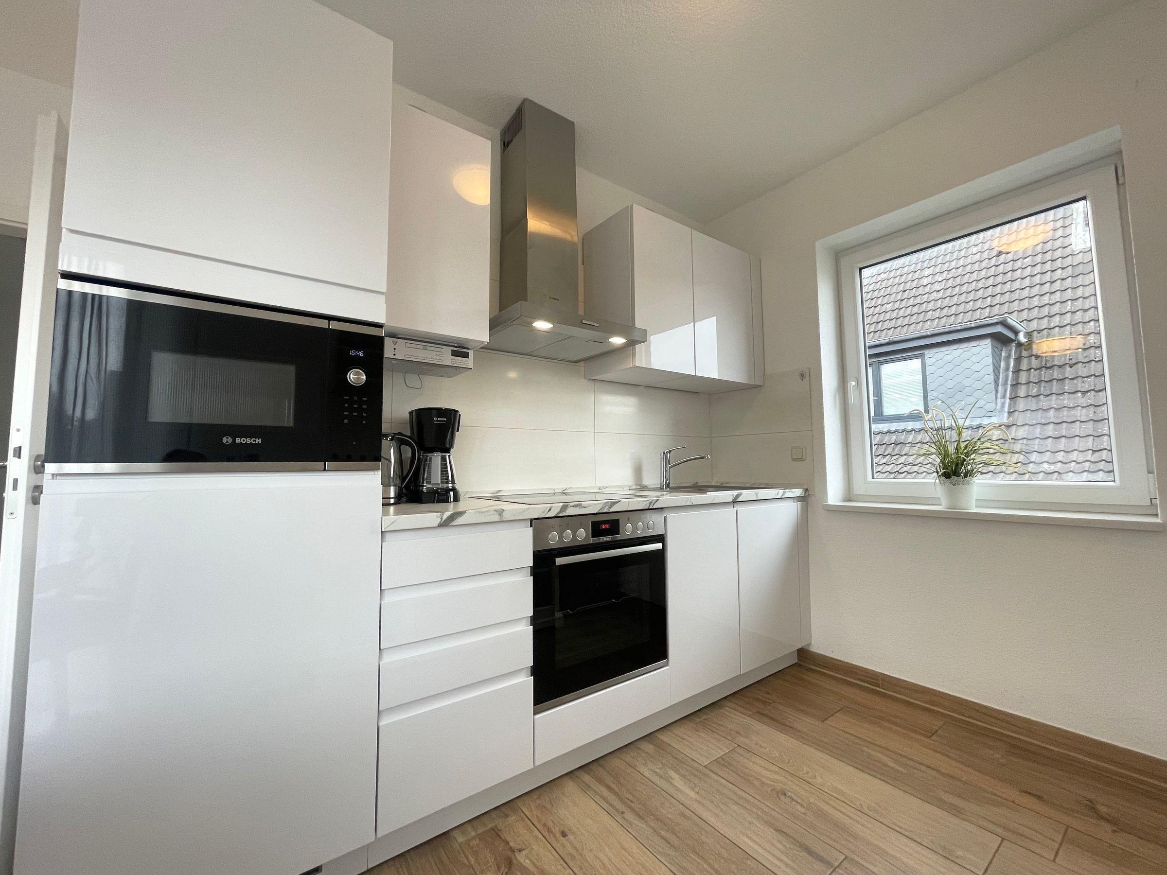 Exklusive Ferienwohnung in Cuxhaven-Duhnen, nur wenige Schritte vom Sandstrand, mit nordischem Stil und voll ausgestatteter Küche.