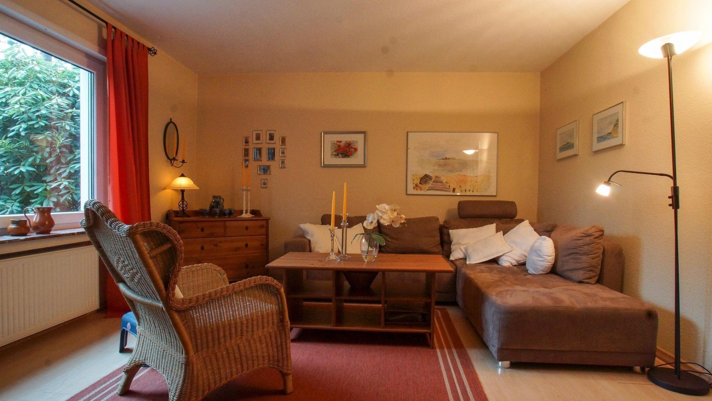 Die großzügige Ferienwohnung mit einer Fläche von 80 qm und Platz für bis zu 6 Personen befindet sich im Erdgeschoss eines Grundstücks mit altem Baumbestand. Sie verfügt über zwei separate Schlafzimmer, eines mit einem Doppelbett und das andere mit zwei Einzelbetten. Im Wohnzimmer stehen eine Schlafcouch für zwei weitere Personen sowie eine offene, voll ausgestattete Küche zur Verfügung. Die Wohnung bietet eine umfangreiche Ausstattung, um den Aufenthalt angenehm zu gestalten. Zur gemeinsamen Nutzung stehen im Nachbarhaus Waschmaschine und Trockner bereit. Auf den drei Terrassen kann das Nordseeklima genossen werden, zudem steht ein Grill zur Verfügung. Die Ferienwohnung liegt in der Nähe der Sahlenburger Strandpromenade, die in nur wenigen Gehminuten zu erreichen ist.
